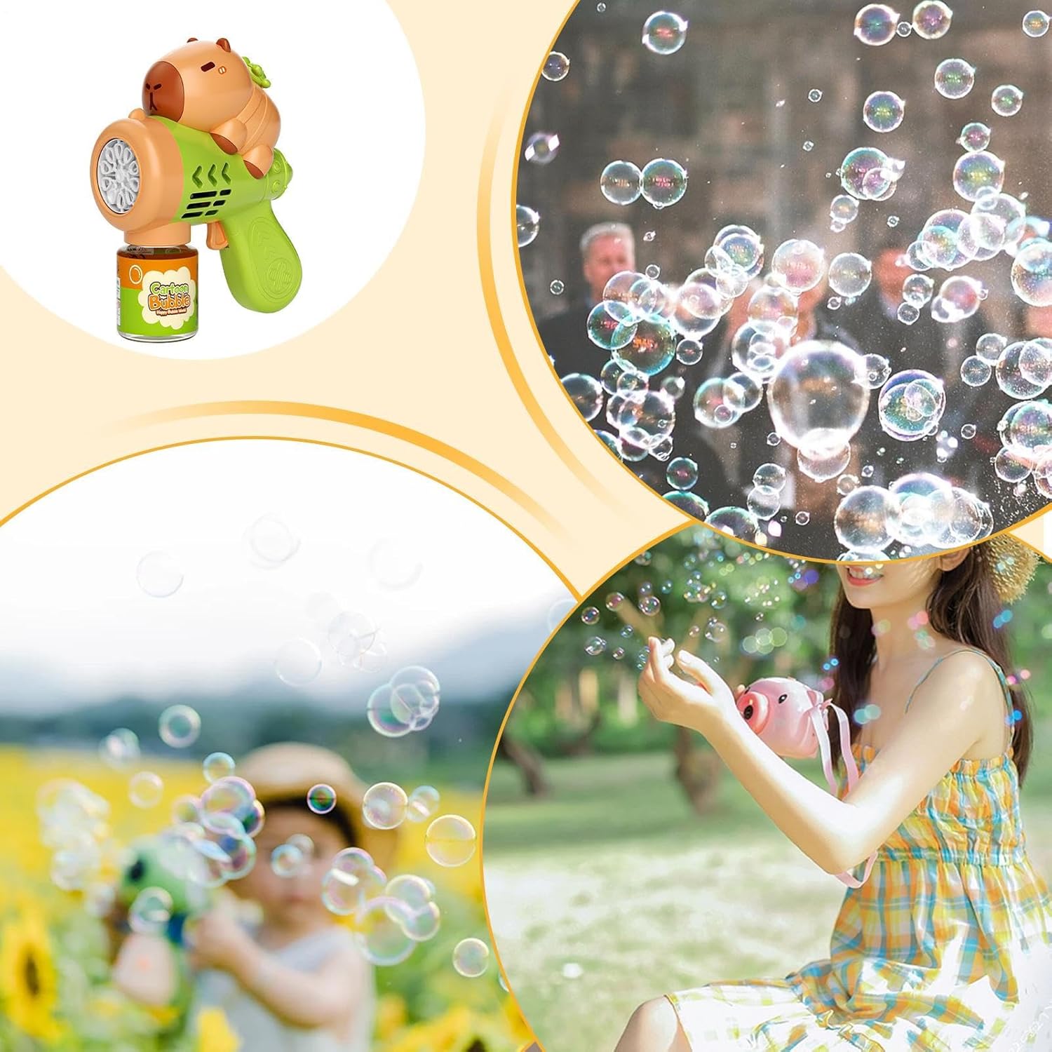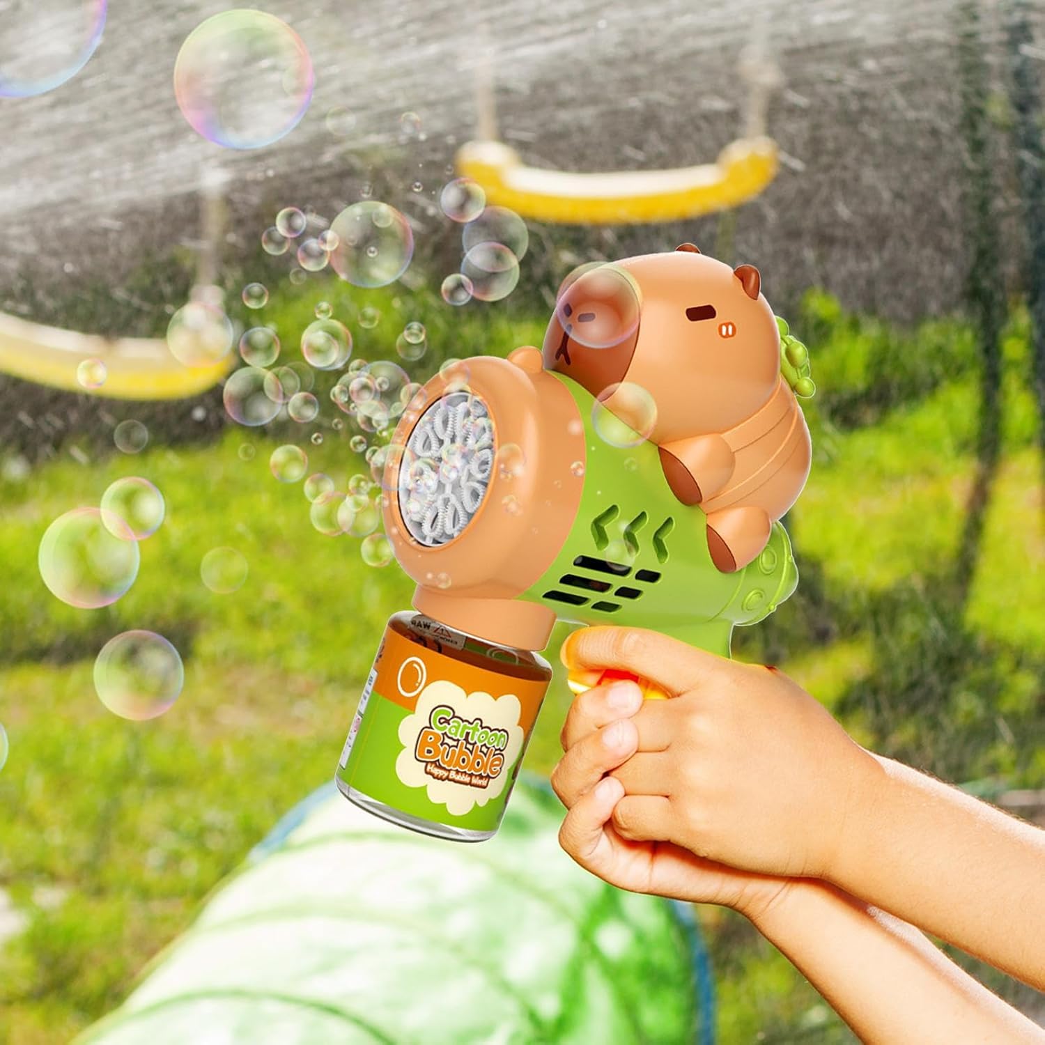 Tema Giocoso: Sagome animali dai colori brillanti stimolano l'immaginazione infantile, offrendo un'esperienza visivamente accattivante durante l'utilizzo del giocattolo con bolle di sapone Design ergonomico: Incorpora bordi arrotondati morbidi per una presa sicura e comoda, con serbatoio antigoccia che previene fuoriuscite durante il gioco garantendo divertimento continuo. Utilizzo Diffuso:Favorisci un clima giocoso con ipnotici effetti , creato per avventure all'aperto e dotato di struttura portatile che amplifica facilmente l'interazione Scelta Bambini: Lavorato con motivi accattivanti e presenza memorabile, questo creatore di bolle esalta le occasioni festive ed è un regalo significativo per le tappe della crescita infantile. Utilizzo semplice:Goditi il gioco all'aperto con un flusso continuo di bolle stabile, permettendoti di correre e scoppiare le bolle liberamente senza interruzioni da ricariche durante l'uso monoposto