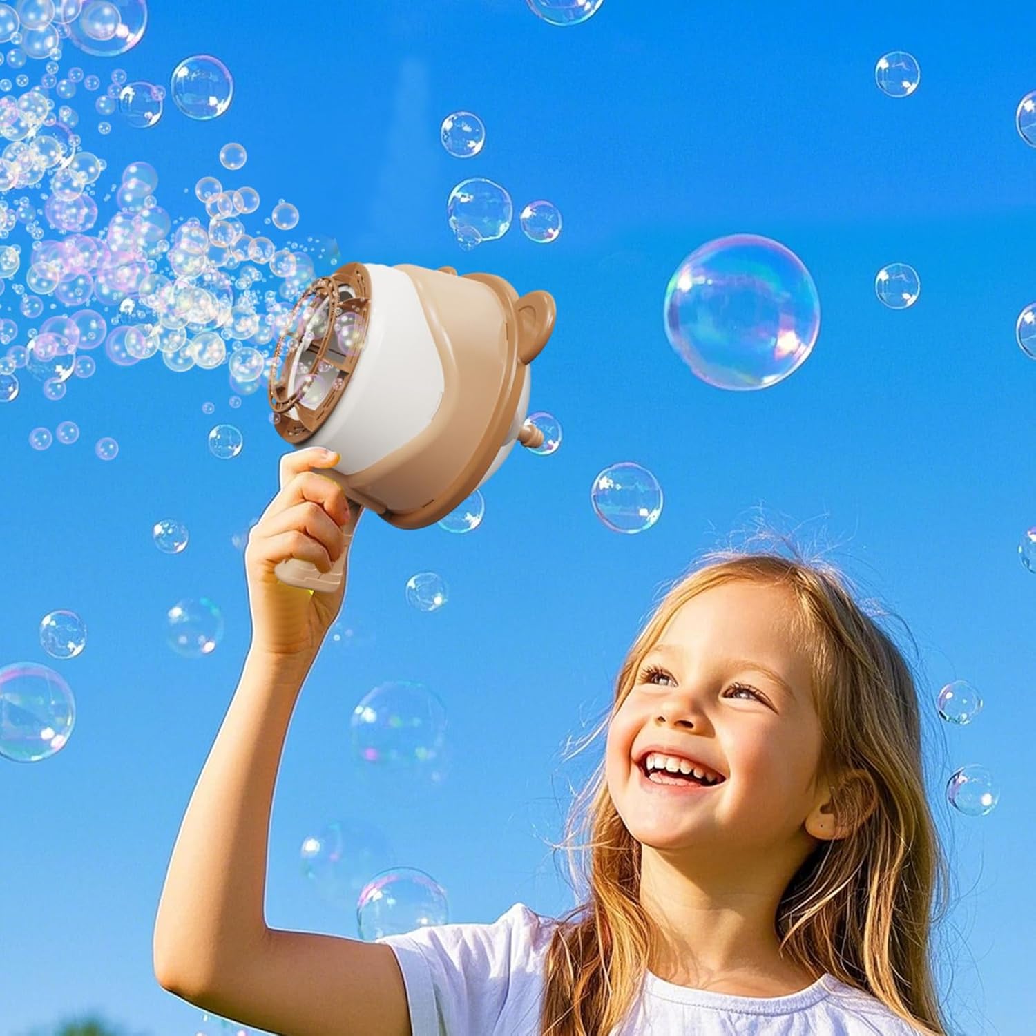 Gioco sicuro e divertente: promuove la creatività con un gorgogliatore aerodinamico manuale, offrendo effetti visivi accattivanti, materiali sicuri e un flusso costante di bolle per una sicurezza ottimale. Produzione massimizzata: meccanismo ad alto flusso d'aria che genera una quantità eccezionale di bolle regolari. Offre uno spettacolo visivo accattivante e onirico per momenti di gioco straordinari. Gioco attivo: promuove la consapevolezza spaziale e lo sviluppo delle abilità motorie con divertenti sfide che seguono le bolle, perfezionando al tempo stesso la coordinazione occhio-mano. Facile da tenere in mano: questo gorgogliatore a forma di orso è un giocattolo leggero e divertente progettato per i giochi di gruppo. La sua impugnatura ergonomica garantisce una presa facile durante i giochi lunghi, ideale per le attività all'aperto con gli amici. Social Animation: Trasforma le tue feste e le tue uscite all'aria aperta con un'esperienza dinamica di bolle pensata per ispirare giochi di gruppo, diventando un elemento per creare momenti indimenticabili durante gli incontri sociali.