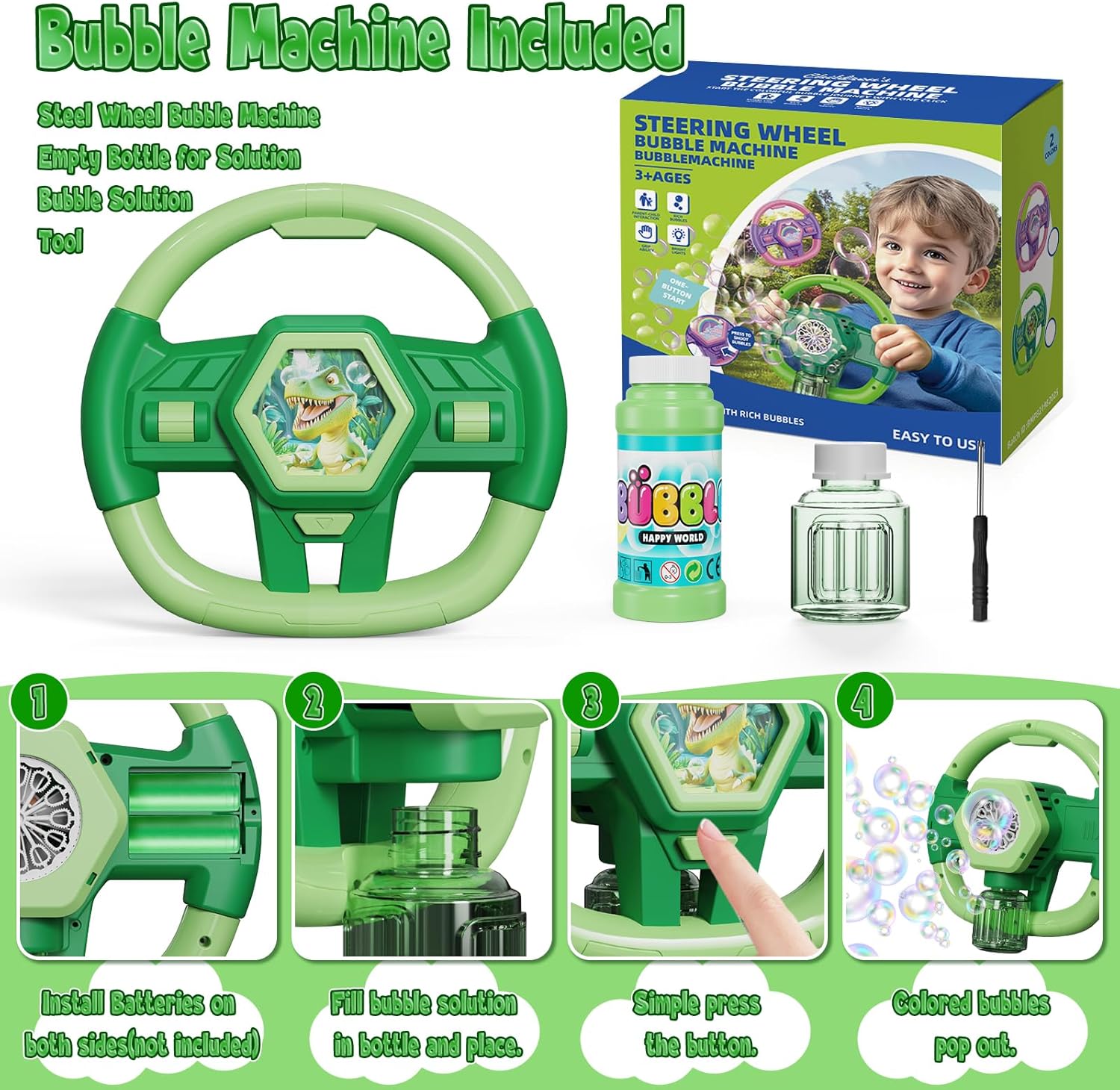 Macchina per bolle Panamalar per bambini, macchina per bolle automatica per dinosauri, verde