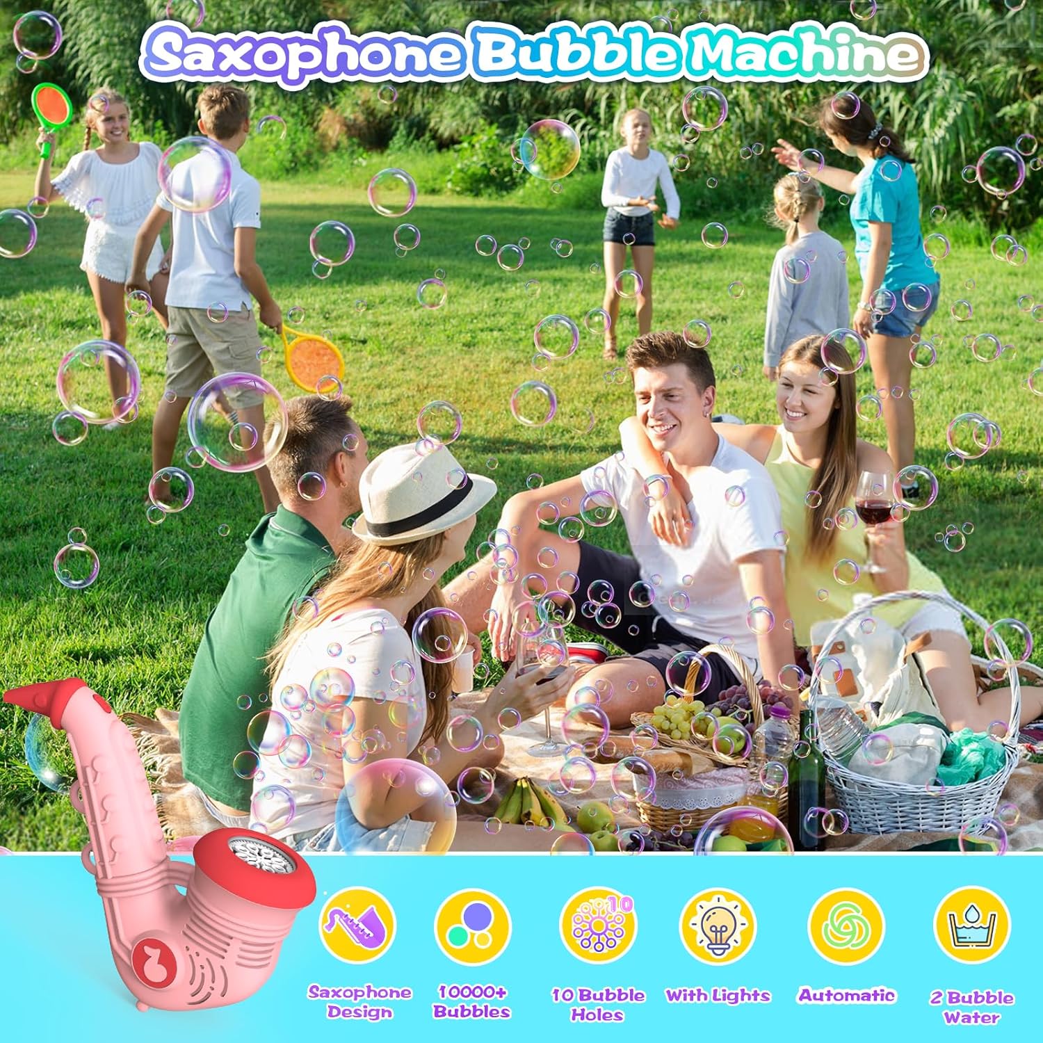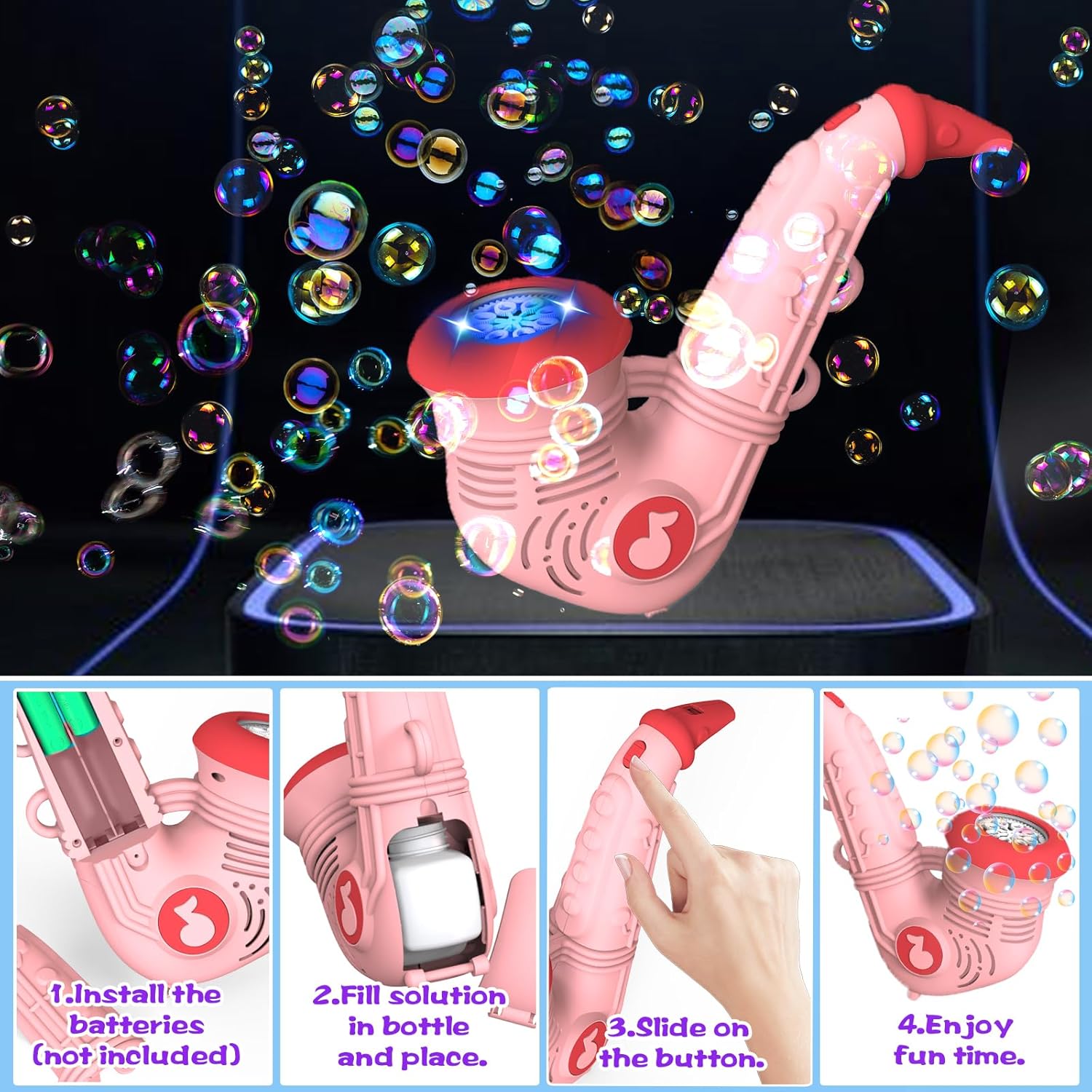 Macchina per bolle portatile Panamalar, macchina per bolle con luci, rosa