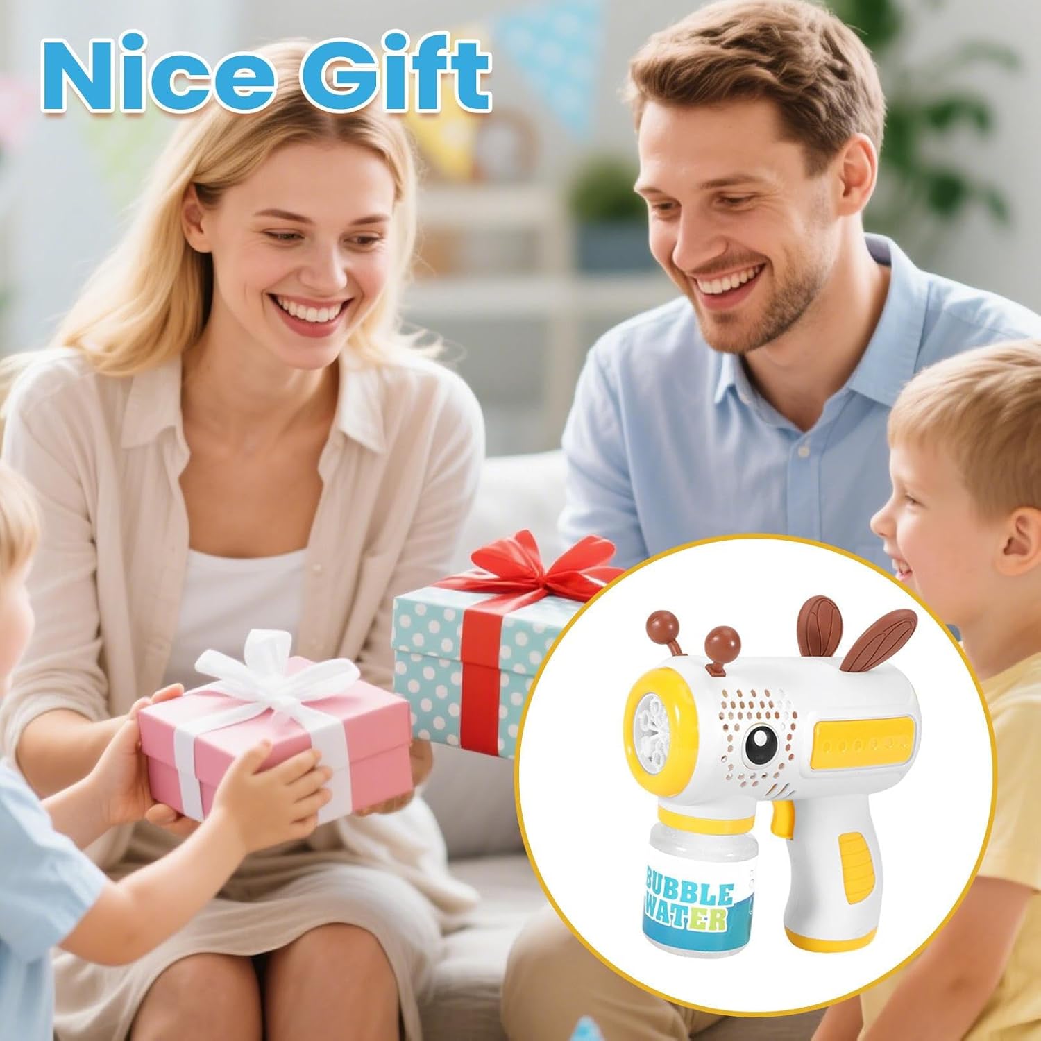 Divertimento Dinamico con Bolle: Grazie alle luci colorate integrate, la macchina delle bolle potenzia il gioco notturno offrendo spettacolo accattivante di bolle fluttuanti, stimolando l'interesse dei bambini per la scoperta attraverso momenti interattivi che trasformano qualsiasi ambiente in un'area di gioco incantevole dopo il tramonto. Macchina per Bolle Anti-Macchia: Questa macchina per bolle per bambini è progettata per prevenire macchie grazie al suo sigillato innovativo, che assicura una esperienza di gioco sicura e pulita. I bambini possono divertirsi con le bolle durante raduni, feste o nel giardino di casa, sperimentando l'emozione delle bolle senza il rischio di macchiare i vestiti, che rimangono sempre immacolati. Il design avanzato offre massimo divertimento per i piccoli, ideale per attività all'aperto e in Design sicuro: Questo bubble blower è realizzato in materiale con spigoli arrotondati, garantendo una presa sicura durante il gioco sia in casa che all'aperto. Il simpatico design a forma di ape aggiunge fascino, rendendolo ideale per i bambini da portare con sé alle feste o in giardino, unendo sicurezza e divertimento in un unico prodotto robusto e affidabile. Produzione di Bolle Dense: La macchina per bolle utilizza una tecnologia elettrica di spruzzo continuo per generare un volume elevato di bolle dense e fitte, creando un'atmosfera divertente perfetta per feste ed eventi all'aperto l'effetto visivo vivace migliora l'esperienza generale e coinvolge tutti. Facilità d'uso: Questo soffiatore bolle include un ugello rotante multiangolo che permette di regolare facilmente la direzione con una sola mano, soddisfacendo diverse esigenze di utilizzo in modo intuitivo e risultando per raduni familiari o momenti di gioco per bambini, grazie al suo funzionamento semplice e immediato che massimizza il divertimento