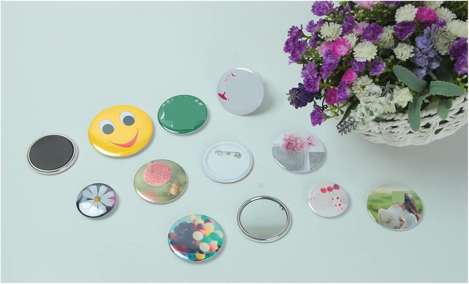 Realizzato con anima in metallo resistente, struttura leggera, resistenza e lunga durata. Mini, compatto, portatile, piccolo spazio, facile da trasportare e riporre. Multifunzione: non solo può essere utilizzato per creare badge fai-da-te per progettare i tuoi souvenir, ma è anche meglio come spille, fascette, portachiavi, apribottiglie ecc., creatore di badge professionale per te. Con diverse dimensioni di stampo, puoi creare diverse dimensioni di badge, bottoni, cappucci, bottoni, portachiavi, ecc. Facile da imparare. È ampiamente utilizzato per creare bottoni fatti in casa