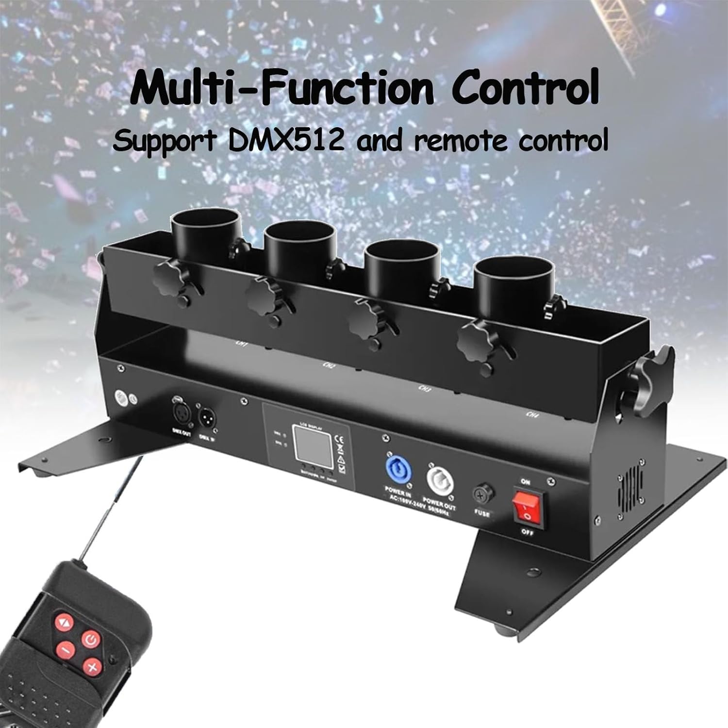 Macchina per coriandoli, lancia coriandoli a quattro batterie, cannone per coriandoli a doppio controllo, asciugacapelli per coriandoli con effetti di illuminazione scenica