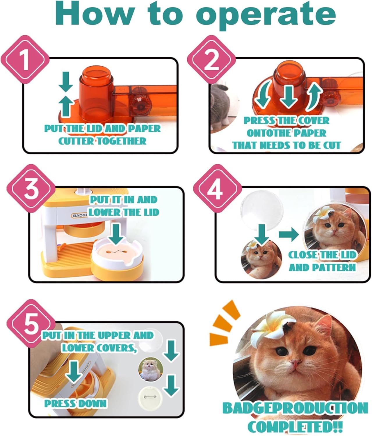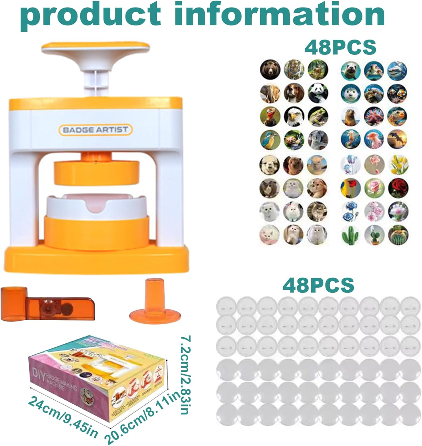 Materiale di qualità e taglio facile: il nostro creatore di badge è realizzato in materiale di alta qualità, robusto, durevole, liscio e con bordi arrotondati per i bambini. Anche il processo di taglio del modello è semplice e sicuro. Posiziona innanzitutto la pressa per modelli sul modello desiderato, quindi svita la taglierina dello strumento per tagliare la carta e posiziona lo strumento sulla pressa per modelli e infine utilizza la taglierina per tagliare attorno al modello. Confezione grande: la nostra macchina per bottoni viene fornita in una confezione grande che include una pressa, 48 modelli e 48 pezzi di badge. Ciò consente il massimo divertimento e creatività poiché i bambini possono realizzare fino a 48 badge con design diversi. Ottimo regalo per i bambini: il nostro creatore di spille è un ottimo regalo per i bambini che non solo offre intrattenimento ma aiuta anche a sviluppare la loro creatività, capacità motorie e concentrazione. È uno strumento divertente ed educativo che i bambini adoreranno. Facile e sicuro da usare: il nostro creatore di badge è facile e sicuro da usare, con semplici passaggi che i bambini possono seguire. Posiziona semplicemente il badge, il motivo del disco e il coperchio nella macchina per la creazione e premi la maniglia in alto per creare il badge. Carino e divertente: il nostro creatore di badge è uno strumento in miniatura e colorato che consente ai bambini di creare rapidamente e facilmente i propri badge carini e divertenti. È un ottimo modo per incoraggiare la creatività e l'immaginazione dei bambini.