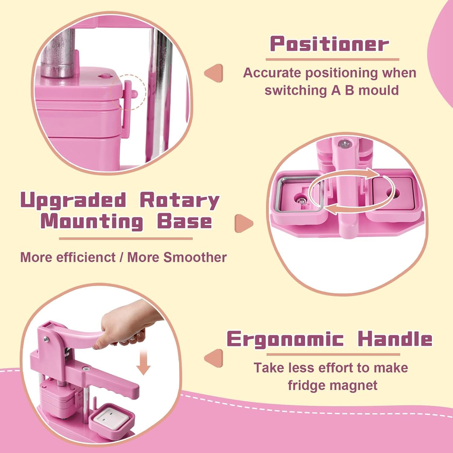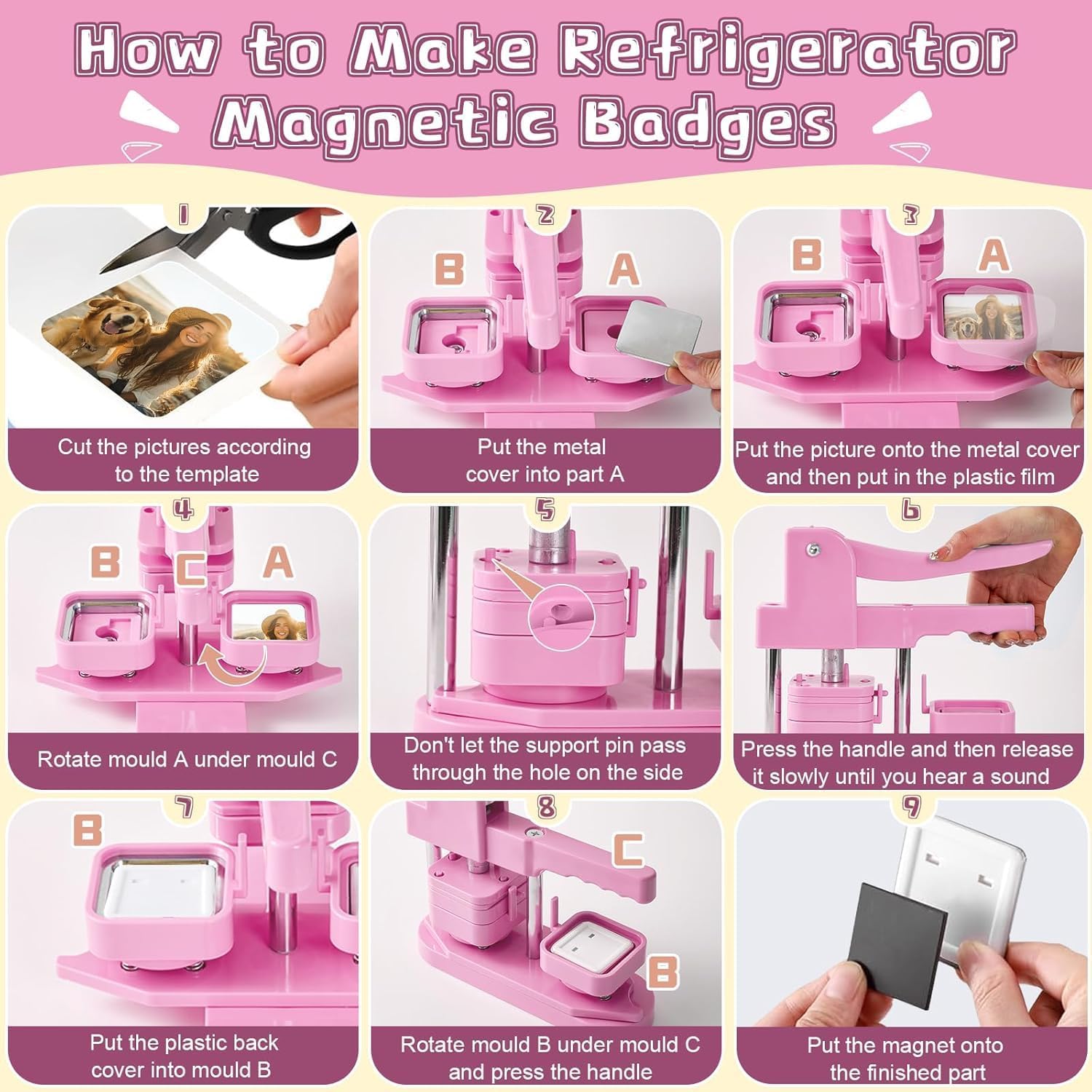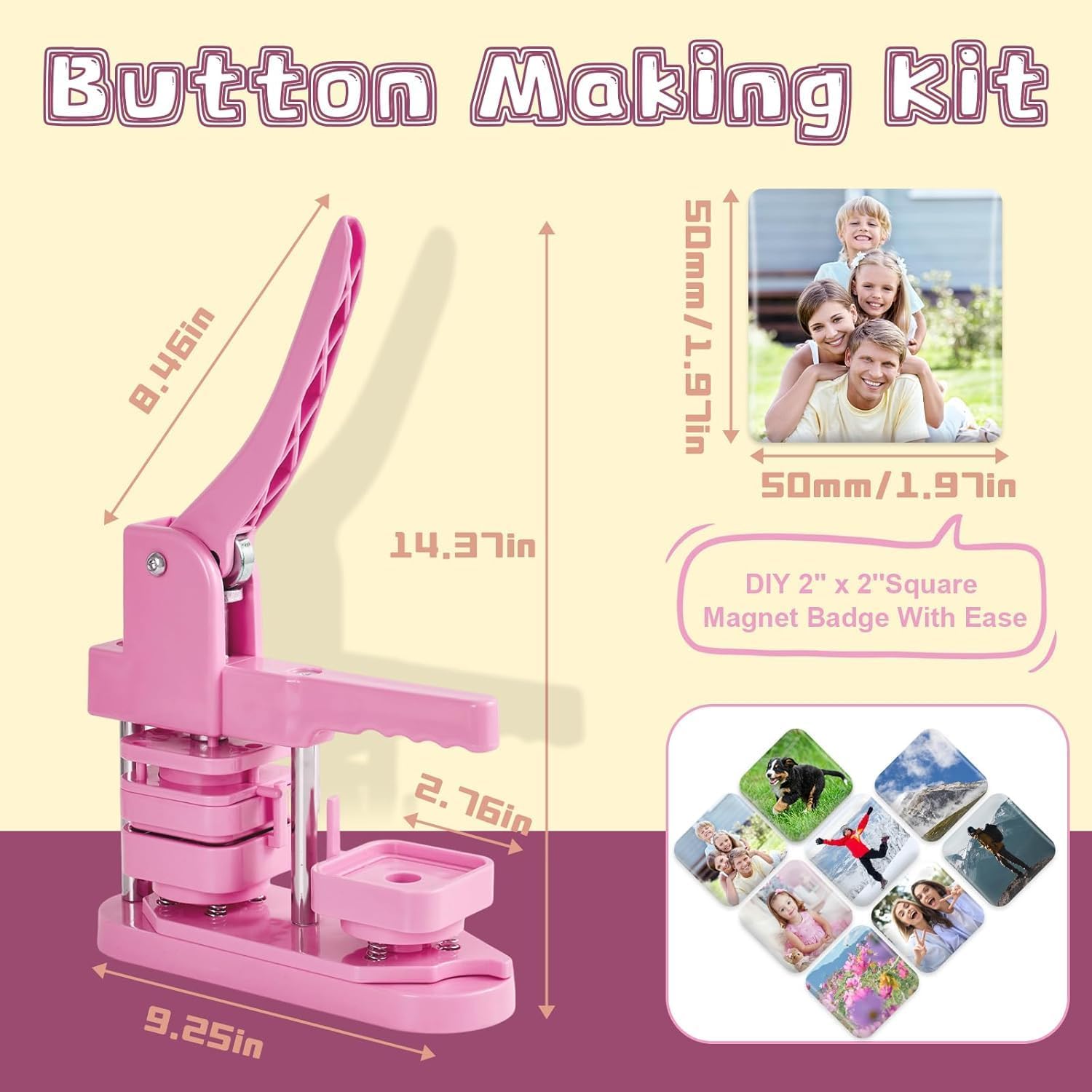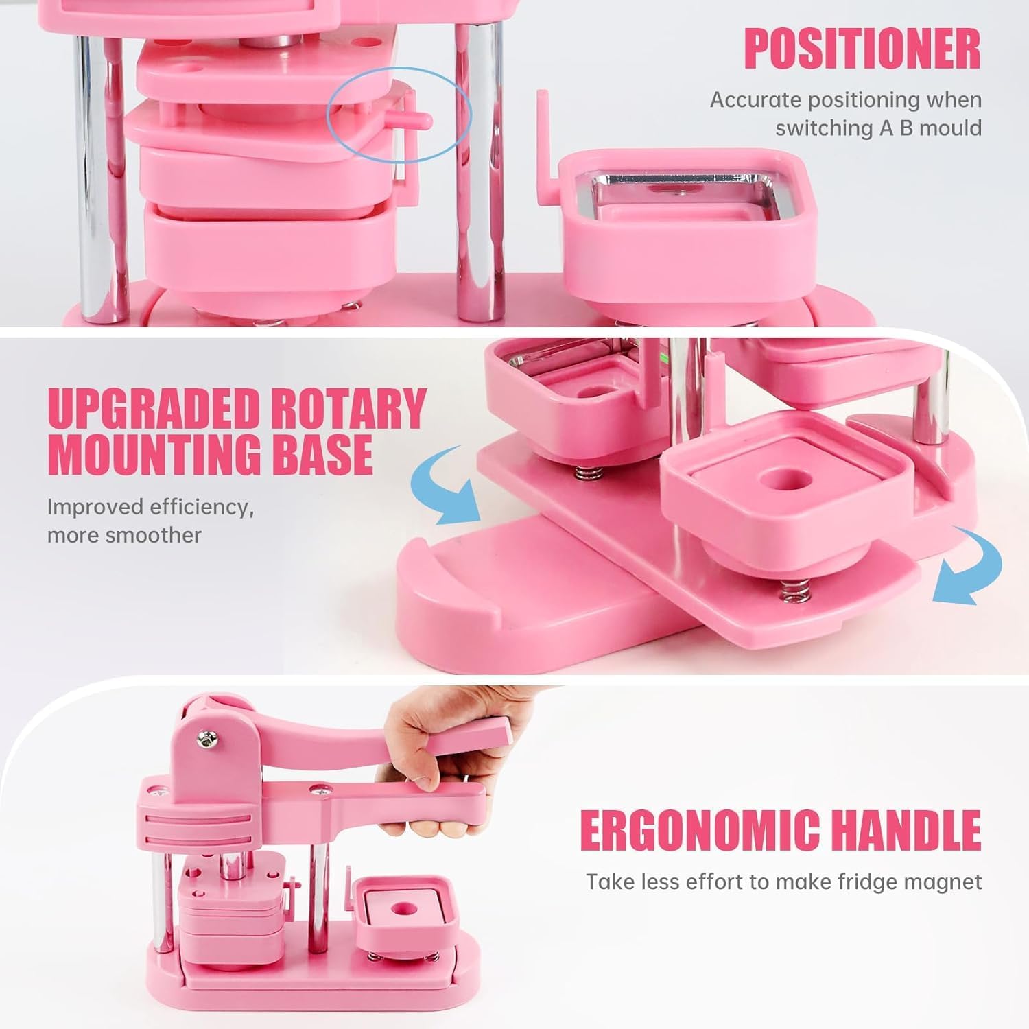 【Kit completo】Questo kit per produttori di bottoni contiene tutto ciò di cui hai bisogno per iniziare a creare pulsanti personalizzati con la macchina per maker magneti frigorifero, tra cui la macchina stessa, dorsi di 100 perni, carte vuote, coperture in metallo, fogli di plastica e chiavi. Con queste forniture, puoi facilmente progettare e creare i tuoi pulsanti utilizzando la macchina per produrre magneti frigorifero per soddisfare le tue esigenze di badge. Salta la seccatura di installazioni complicate con la nostra macchina per la creazione di pulsanti completamente assemblata. 【Manico di risparmio di manodopera】La macchina per il maker di magneti frigorizzini presenta una maniglia progettata ergonomicamente, confortevole da tenere, rendendo il processo di produzione dei badge più efficiente e meno faticoso. 【Design durevole ed efficiente】La macchina per maker magneti frigorifero (Pin Maker Machine) è costruita in plastica rinforzata, garantendo prestazioni robuste e durata. Questo materiale durevole garantisce una lunga durata per la macchina, permettendoti di godere di innumerevoli ore di divertimento creativo. 【Machine magnetica fotografica】Dopo aver tagliato il tuo design con il taglierina di precisione, posizionare il foglio di ferro, la foto e il film trasparente sul lato A. sul lato B: sbucciare il film protettivo dell'adesivo magnetico, collegare il cartone, quindi entrambi i lati in sequenza con la macchina per produrre magneti frigorifero per completare la creazione. 【BASSO MAGNET BASSO PRESEGGIO】Ideale per creare regali di Natale o di compleanno unici. Ogni badge cattura i momenti speciali della vita: usa la macchina per il magnete del frigorifero (macchina magnetica fotografica) per immortalare paesaggi o immagini amate, quindi visualizzarli su frigoriferi o qualsiasi superficie magnetica.