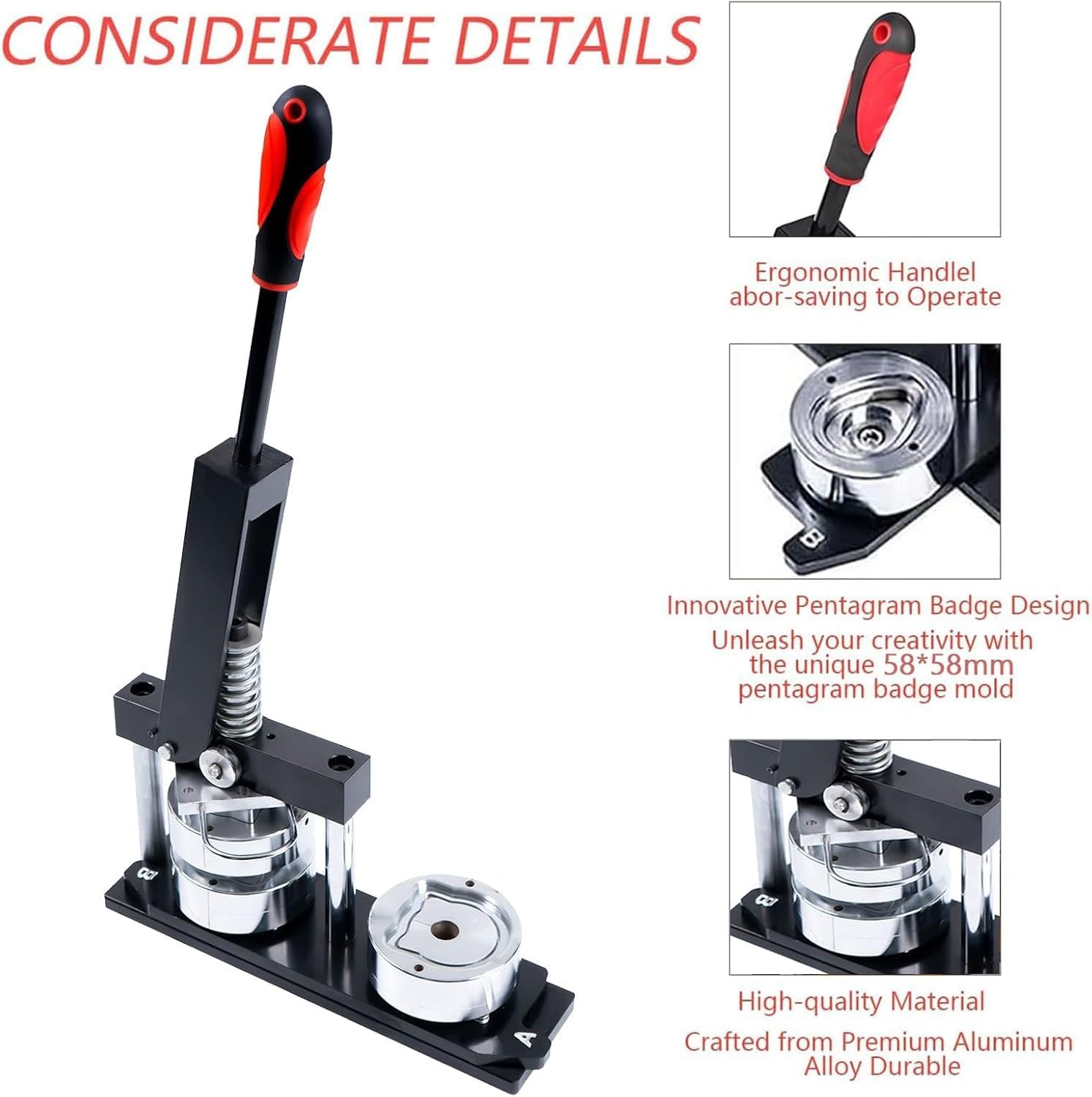 【Pacchetto】 Uno strumento di taglio del desktop in metallo (produttore di badge metallici), 100 set di piccoli materiali di badge a forma di gatto rotondo, 100 fogli di carta fotografica a forma di gatto rotondo. I materiali includono spazi vuoti di carta superiore e inferiore; Non è richiesto alcun film trasparente separato. La forma del gatto è un badge a forma speciale. Durante la produzione, è sufficiente preparare la carta modellata con pellicola applicata e combinarlo con i nostri gusci in stagno superiore e inferiore, che sono anti-russi, durevoli e non facili da deformarsi. 【Opere d'arte nei bottoni di badge】 Il film in PVC viene utilizzato per produrre badge lucenti, la copertura in metallo assicura che i badge siano durevoli e che la base di plastica possa evitare efficacemente il problema della ruggine. Progetta con un perno di metallo sul retro per il perno su indumenti o una borsa. 【Conveniente manico】 La maniglia del pulsante Pin Maker (Pin Maker Pin Maker) è progettata con enfasi sull'ergonomia. L'uso della maniglia può aiutare ad aumentare il tuo comfort e aiutare a fare un bellissimo badge. 【Facile da usare】 basta stampare qualsiasi foto, foto su carta, tagliarle in pezzi adeguati (delle stesse dimensioni del film) e creare spille con una macchina e un anello di gomma. 【Scenari di uso ampio】 Questo produttore di pin è ampiamente utilizzato per creare pulsanti fatti in casa per campagne politiche o eventi sportivi. È anche popolare nelle feste di Halloween. È anche un regalo meraviglioso per i bambini. Può creare pulsanti a perno perfetti, cravatte di corda, portachiavi, apri bottiglia, ecc.