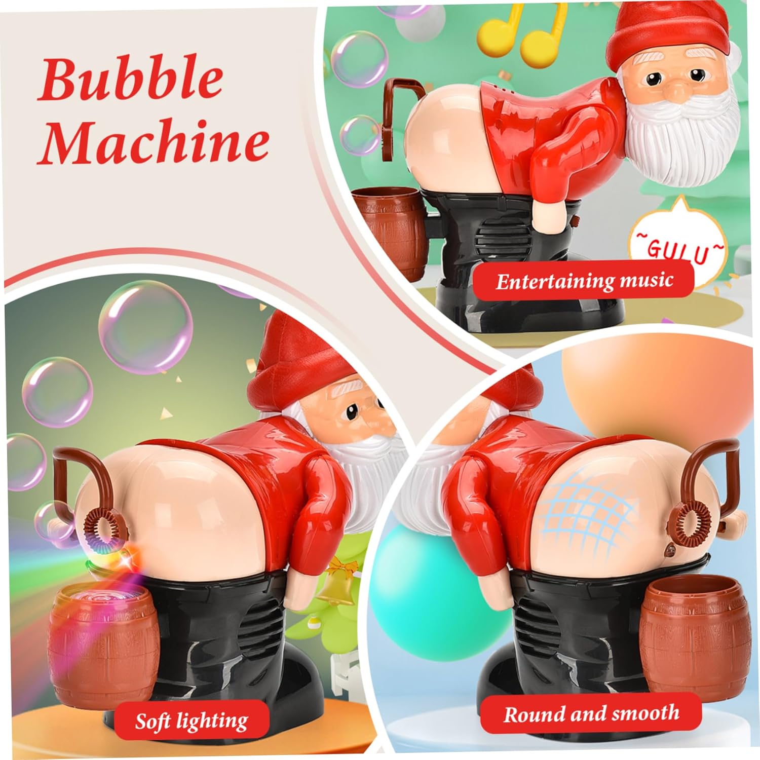 Effetti luminosi e musicali: dotata di luci lampeggianti e musica allegra, questa macchina per bolle crea un'atmosfera festosa e gioiosa..La luce soffusa assicura che le bolle colorate siano visibili anche di notte, migliorando l'esperienza magica. Soluzione per bolle colorate: viene fornita con una bottiglia da 60 ml di soluzione per bolle che produce bolle abbondanti e dense..La soluzione ha una fragranza delicata e le bolle alte senza scoppiare facilmente, garantendo un divertimento di lunga durata. Design interattivo: premendo il pulsante anteriore regola l'ugello posteriore delle bolle verso l'alto o verso il basso, consentendo ai bambini di controllare la direzione e l'altezza delle bolle..Il giocoso design di Babbo Natale attira l'attenzione dei bambini, rendendo il gioco delle bolle ancora più emozionante. Divertimento con un solo tocco: questa macchina per bolle è dotata di una semplice attivazione con un solo tocco per un divertimento istantaneo con le bolle..I bambini possono facilmente avviare la macchina per guardare bolle da sogno riempire l'aria mentre suona la musica. Materiale sicuro e stabile: realizzata in plastica ABS, la macchina è liscia, leggera e sicura per i bambini..Il suo design compatto include tre batterie, consentendo il divertimento portatile sia all'interno che all'esterno.