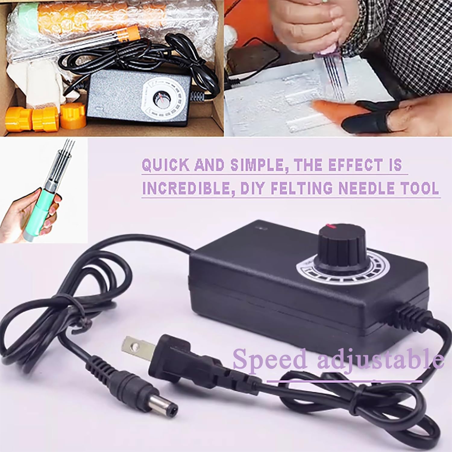 MACCHINA ELETTRICA PER INFELTARE AD AGO: La macchina elettrica per infeltrire ad ago ha velocità regolabile, utilizza un motore a spazzole di carbone con ingranaggi in metallo, lunga durata, corsa del motore di 2 cm, guscio trasparente, più comoda da usare, infeltrimento automatico VELOCITÀ REGOLABILE: Design della sede dell'ago intercambiabile. Utilizza diverse sedi dell'ago (sede a foro fitto, sede a foro rado) da 1 a 7 aghi per diverse scene, aghi per infeltrimento universali sul mercato EFFICIENTE: La velocità della macchina può essere regolata in base alle proprie esigenze. L'efficienza è superiore a quella degli aghi per infeltrimento fatti a mano, il che può migliorare l'efficienza del lavoro, veloce e semplice, e l'effetto è sorprendente, strumenti per infeltrimento fai da te MODO D'USO: Gli aghi per infeltrimento degli aghi per infeltrimento di lana elettrici sono molto fragili e possono rompersi facilmente se usati in modo improprio. Assicurarsi di inserire ed estrarre con la stessa angolazione e di non torcere o piegare l'ago AMPIA APPLICAZIONE: Gli aghi per infeltrimento sono molto adatti per progetti fai da te e sono adatti per realizzare piccoli accessori di gioielleria come animali in feltro. Può esercitare abilità pratiche e immaginazione e può anche essere regalato come regalo speciale alla tua famiglia
