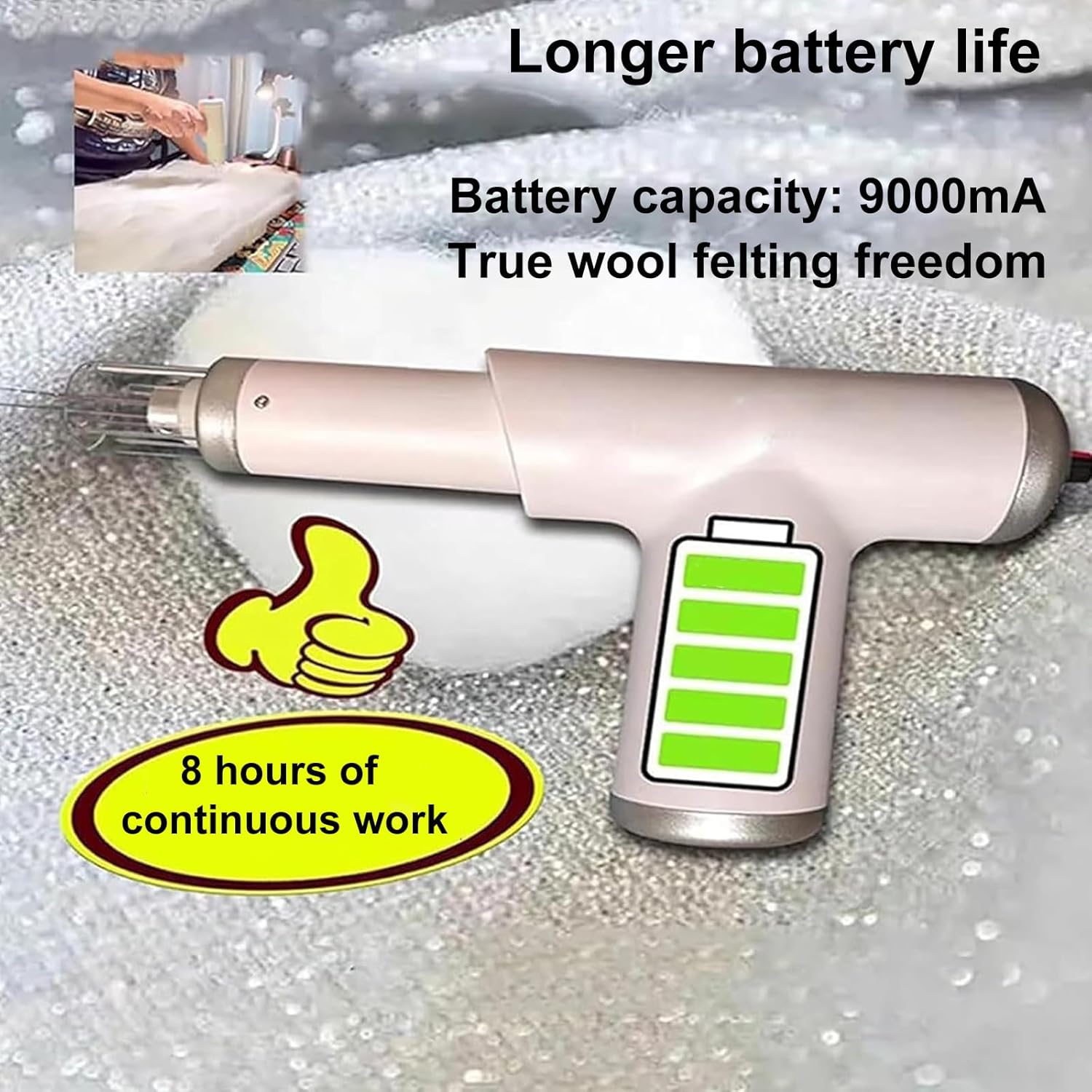 Infeltrimento professionale e veloce: lo strumento elettrico per infeltrimento di lana accelera notevolmente l'infeltrimento rispetto agli aghi manuali; la sua serie di aghi penetra rapidamente nelle fibre per creare superfici di feltro dense e uniformi, per un completamento più rapido del progetto. Comfort ergonomico e portatile: questa macchina per infeltrimento ad ago portatile bilancia il posizionamento del motore e la dispersione delle vibrazioni per ridurre l'affaticamento della mano; impugnatura antiscivolo, alimentazione automatica del roving e controllo con un solo pulsante per lunghe sessioni di lavoro comode e precise. Alimentazione a lunga durata in movimento: la macchina per infeltrimento ad ago ricaricabile offre fino a 8 ore di utilizzo continuo; La ricarica rapida USB-C ripristina l'energia necessaria per portare lo strumento a workshop o fiere dell'artigianato senza tempi di inattività. Controllo preciso con velocità regolabile: il regolatore di velocità integrato offre diverse impostazioni per adattare l'azione dell'ago al tipo di lana: delicato per fibre delicate, più alto per sculture dense, riducendo gli errori e migliorando la qualità della finitura. Versatile per artigiani e corsi: ideale per l'infeltrimento ad ago, l'infeltrimento a umido, la scultura 3D e la pittura su lana, questa unità compatta è facile da trasportare, ideale per i workshop e rappresenta un regalo prezioso per chiunque ami i progetti fai da te.