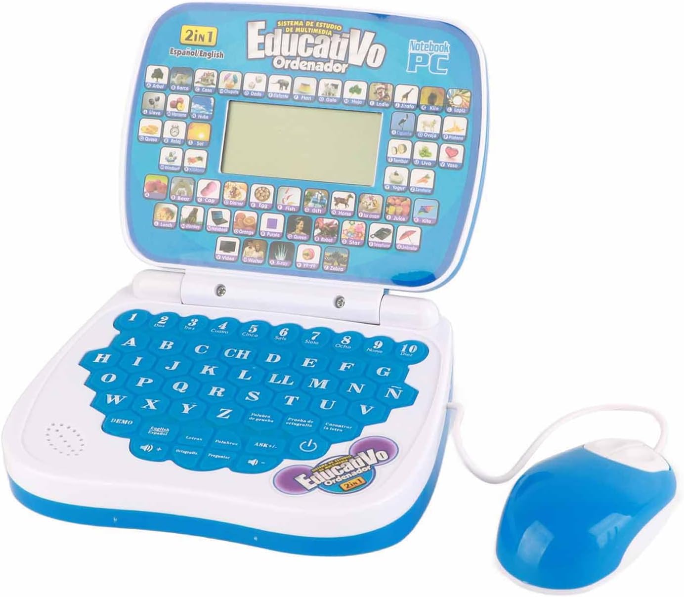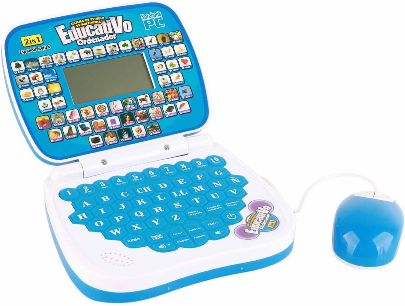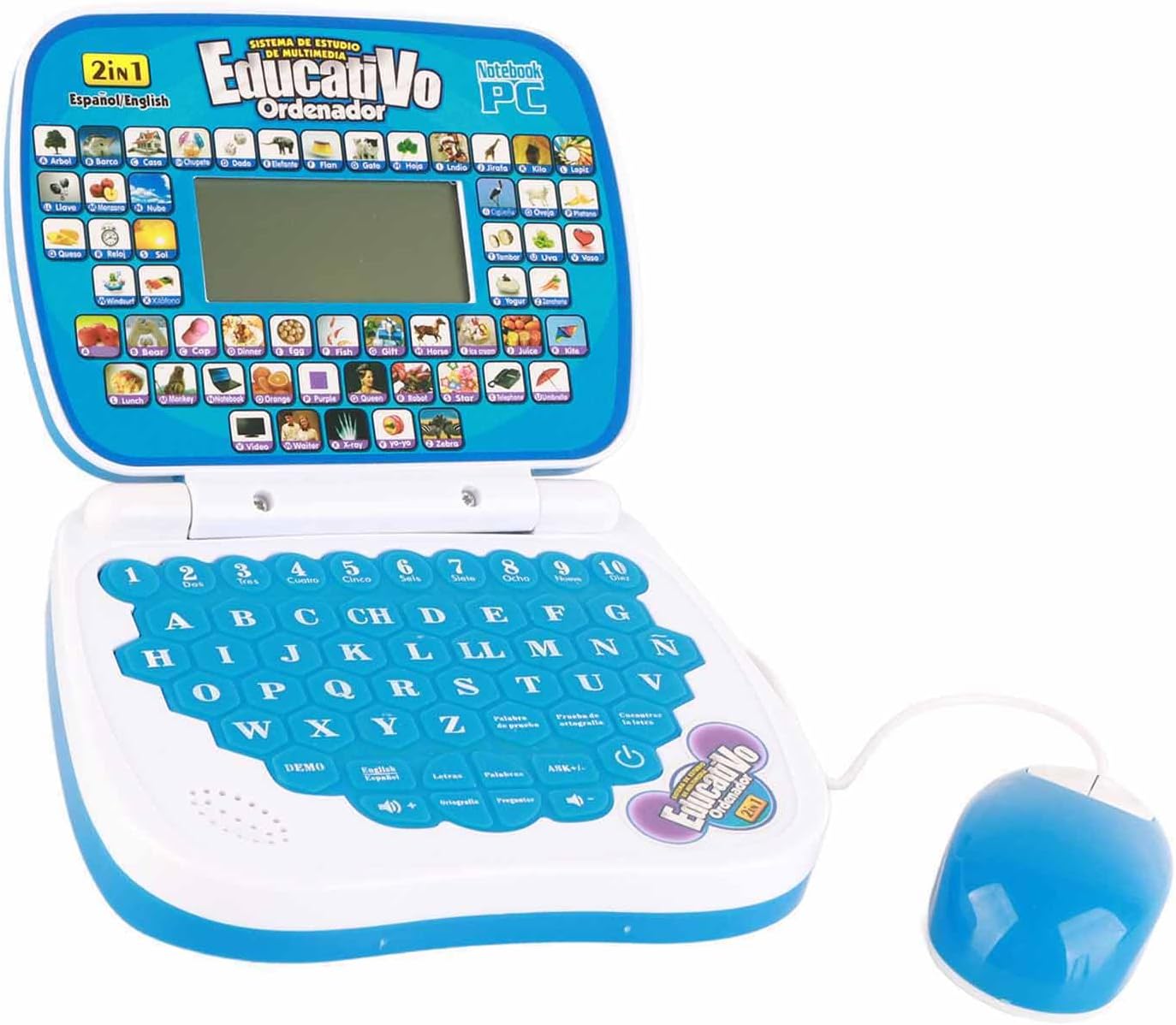 Inglese Spagnolo Learning: I bambini imparano laptop adottato design bilingue, con inglese e spagnolo, che consentono ai bambini di studiare 2 lingue. Bella musica: il laptop bilingue per bambini ha adottato la funzione musicale, con una voce piacevole, che può facilmente attirare l'attenzione dei bambini. Rileggere: i bambini imparano il laptop con funzione di rilettura, emetterà un suono, che è un modo divertente e interessante per imparare l'inglese e lo spagnolo. Apprendimento di digitazione: i bambini imparano il laptop con tastiera, aiutano i bambini a familiarizzare dove posizionare i pulsanti e digitare, migliorano anche le capacità motorie. ABS eccellente: computer portatile per imparare l'inglese per bambini realizzato in materiale ABS, solido e robusto, che può essere giocato a lungo senza rompersi.