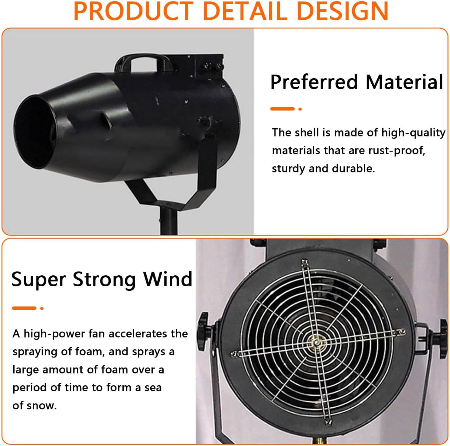 ◑【Macchina per schiuma per feste】: Macchina per schiuma ad alta potenza da 1000 W, in grado di produrre rapidamente una grande quantità di schiuma bianca come la neve in pochi minuti. Offre un'esperienza di schiuma ricca e densa per bambini e adulti alle feste. Che si tratti di attività all'aperto, feste di compleanno o celebrazioni, aggiunge un'atmosfera gioiosa alla scena. ◑【Uscita grandangolare】: Lo spruzzatore di schiuma utilizza ventole importate per accelerare l'area di spruzzatura della schiuma. La portata della schiuma è di circa 20 metri quadrati/minuto, l'altezza di spruzzo può raggiungere i 6-10 m, la macchina per schiuma è facile da usare e consente angoli di spruzzatura e volume di produzione di schiuma regolabili in base alle esigenze per un controllo flessibile. ◑【Sicurezza】: La schiuma è stata rigorosamente testata ed è incolore, inodore, atossica e molto sicura. Non c'è bisogno di preoccuparsi di irritazioni cutanee e oculari, la schiuma verrà spruzzata e non inonderà la macchina. La macchina per la schiuma è realizzata con materiali affidabili e dotata di funzioni di protezione contro le perdite e il surriscaldamento, garantendo la sicurezza durante l'uso. È adatta a bambini e adulti, offrendo tranquillità per le feste in famiglia. ◑【Due modalità di utilizzo】: Questa macchina per la schiuma è compatta e versatile. Può essere utilizzata con un treppiede portatile per un supporto stabile, oppure è possibile posizionarla in modo indipendente per un utilizzo più flessibile. Collegala e sei pronto per goderti il divertimento con la schiuma, ideale per i giochi all'aperto. ◑【Ampia applicazione】: La macchina per la schiuma è adatta per feste di Natale in piscina, feste di compleanno, attività genitori-figli, parchi giochi, parchi acquatici all'aperto, palchi, centri commerciali, bar, spettacoli teatrali, fotografia, feste estive e altre attività. Dopo l'evento, la pulizia è semplice: basta risciacquare la schiuma con acqua.