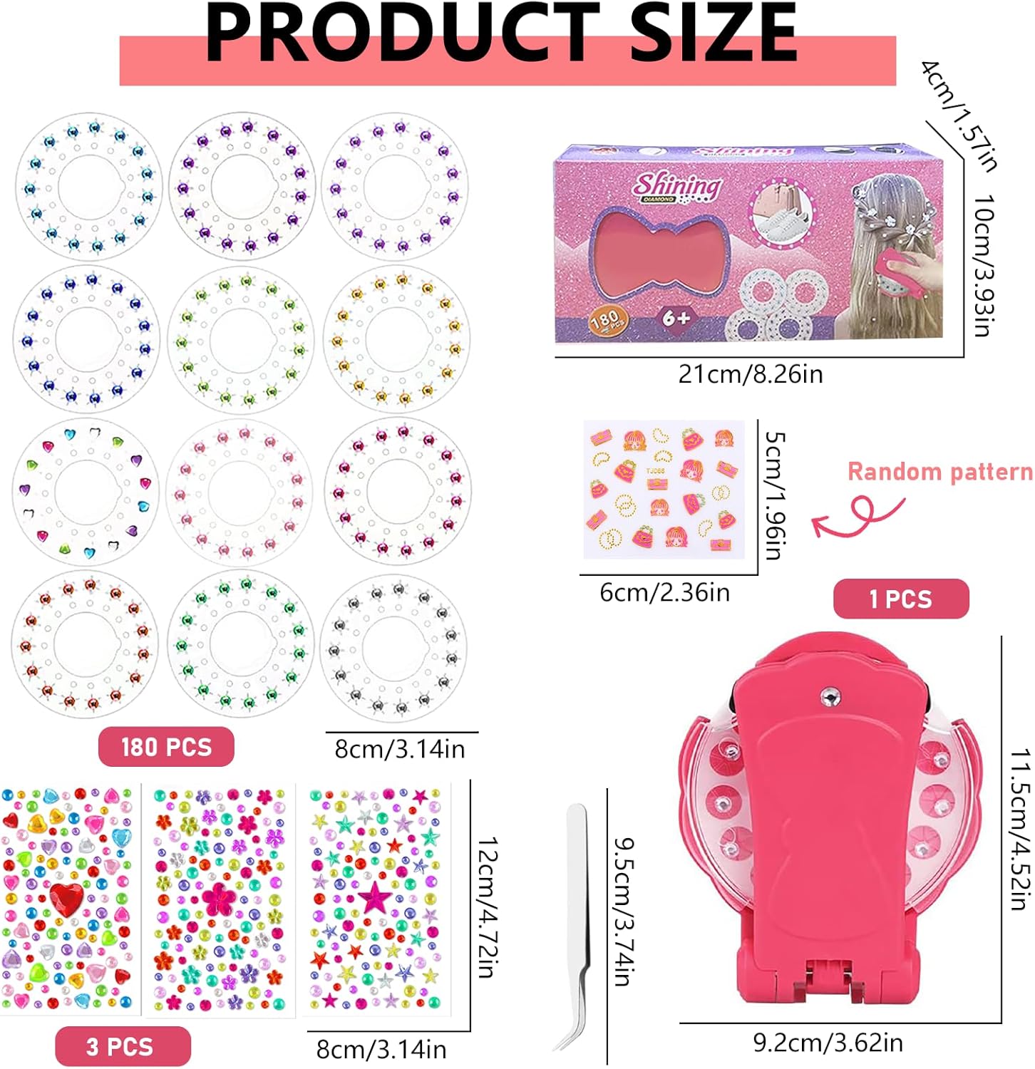 【Macchina per strass per capelli】 Contiene 1 timbro per gemme per capelli, 180 strass per capelli, 3 adesivi per bambini, 1 adesivo per unghie, 1 pinzetta. Non c'è bisogno di uno stilista per far brillare le tue piccole principesse in pochissimo tempo! 【Alta qualità】 Macchina per strass per capelli realizzata in plastica ABS migliorata, non tossica e resistente, non danneggerà la pelle e i capelli dei bambini, quindi i bambini possono usarli con sicurezza. 【Facile da usare】 Infila la gomma nella fessura, premi la parte anteriore mentre sollevi le coperture, allinea il foro e inserisci uno degli strass autoadesivi che ti piacciono nel telaio, premi la copertura trasparente prima di inchiodare gli strass! 【Accessori per capelli per ragazze】 Il set di accessori per capelli è un must per aggiungere lucentezza ai tuoi capelli, dandoti l'opportunità di creare accessori per capelli fai-da-te in diversi colori e stili per tutte le occasioni. 【Garanzia】 Un regalo speciale per la tua piccola principessa. Un accessorio per capelli, anche un timbro per borse, scarpe, unghie e qualsiasi luogo che abbia bisogno di gemme. Se avete domande sul prodotto, non esitate a contattarci.