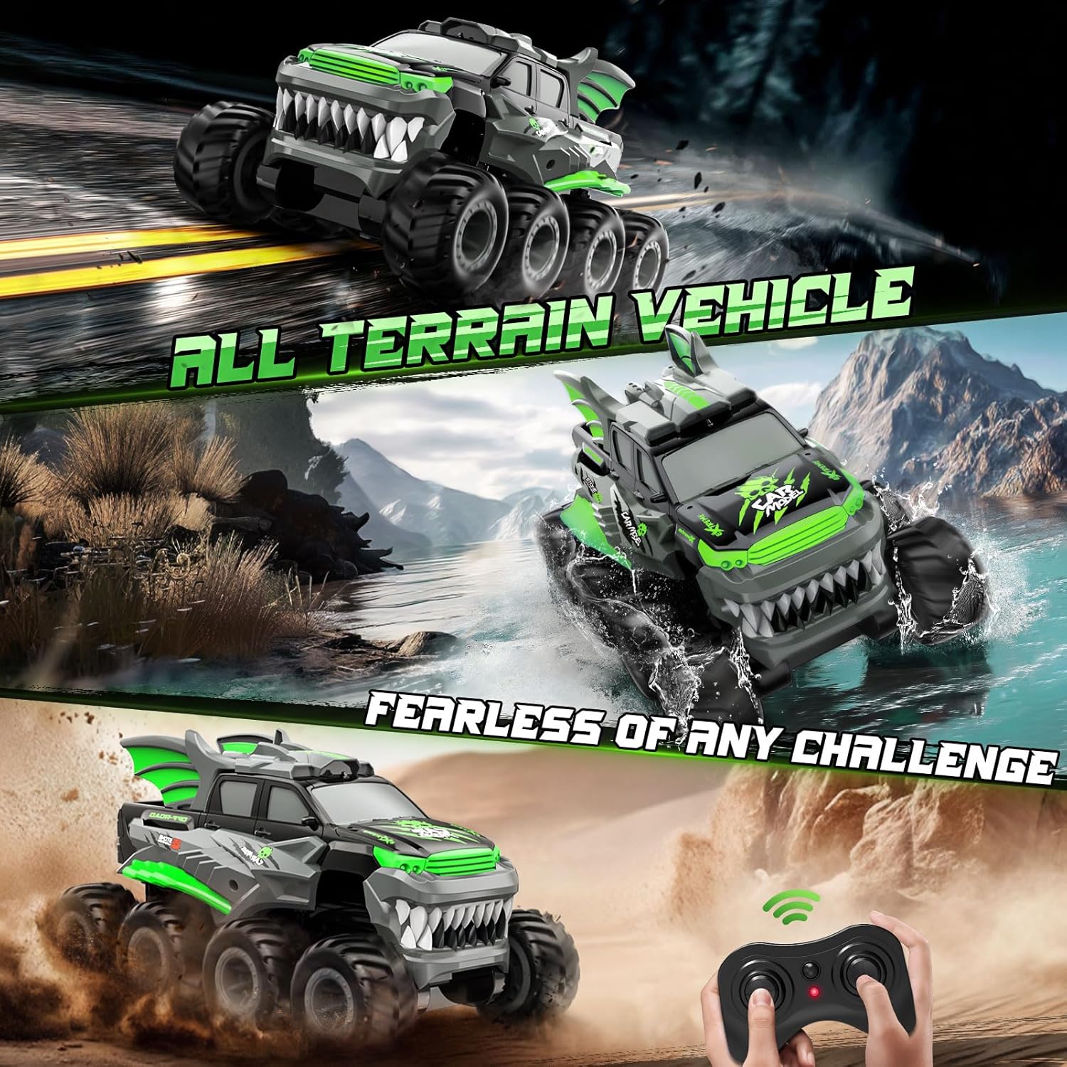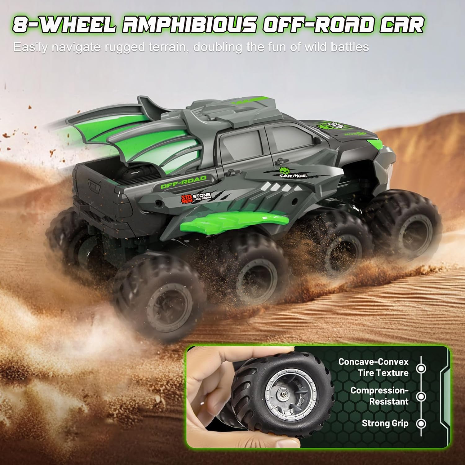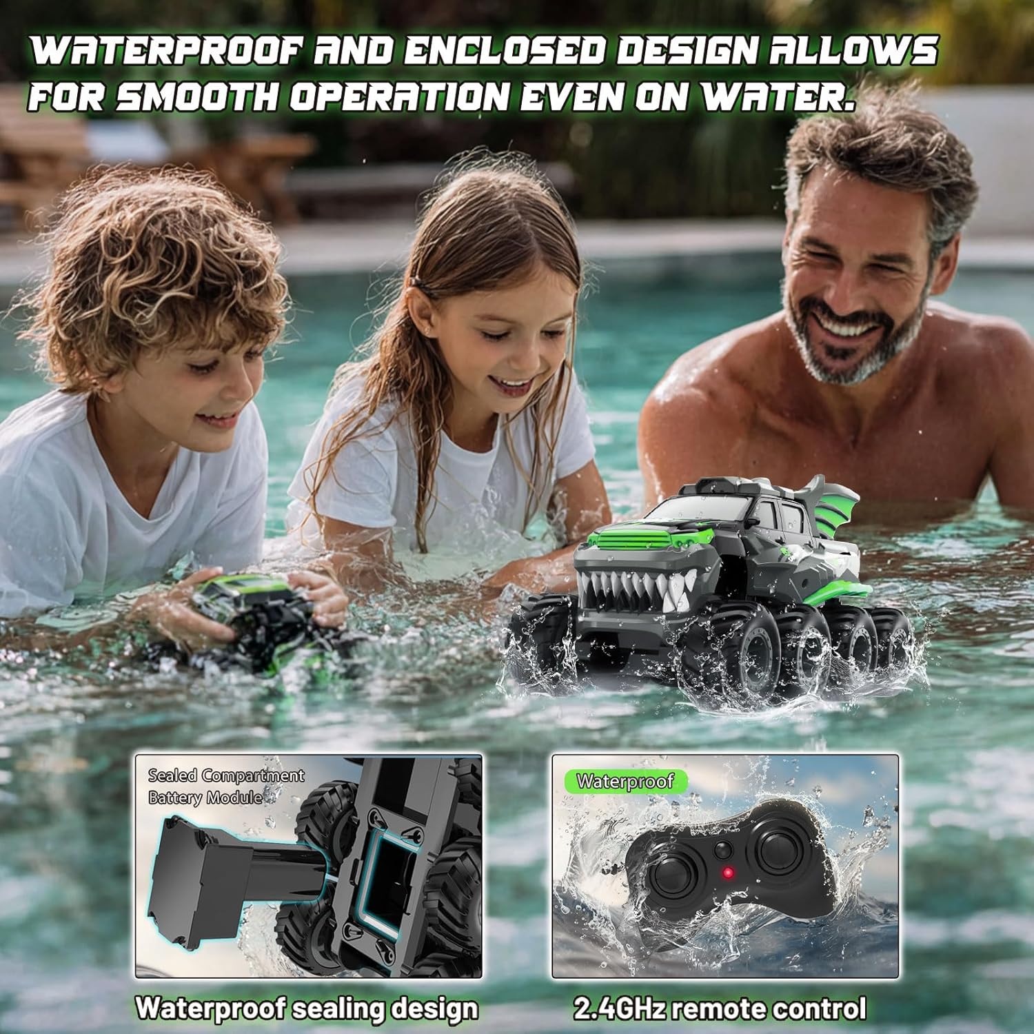 Macchina Telecomandata Anfibia 8WD RC Monster Truck Fuoristrada per Terra e Acqua, Auto RC Impermeabile 2.4GHz con 2 Batterie, Rotazione 360°, Giocattolo per Bambini da 8 Anni, Regalo Divertente