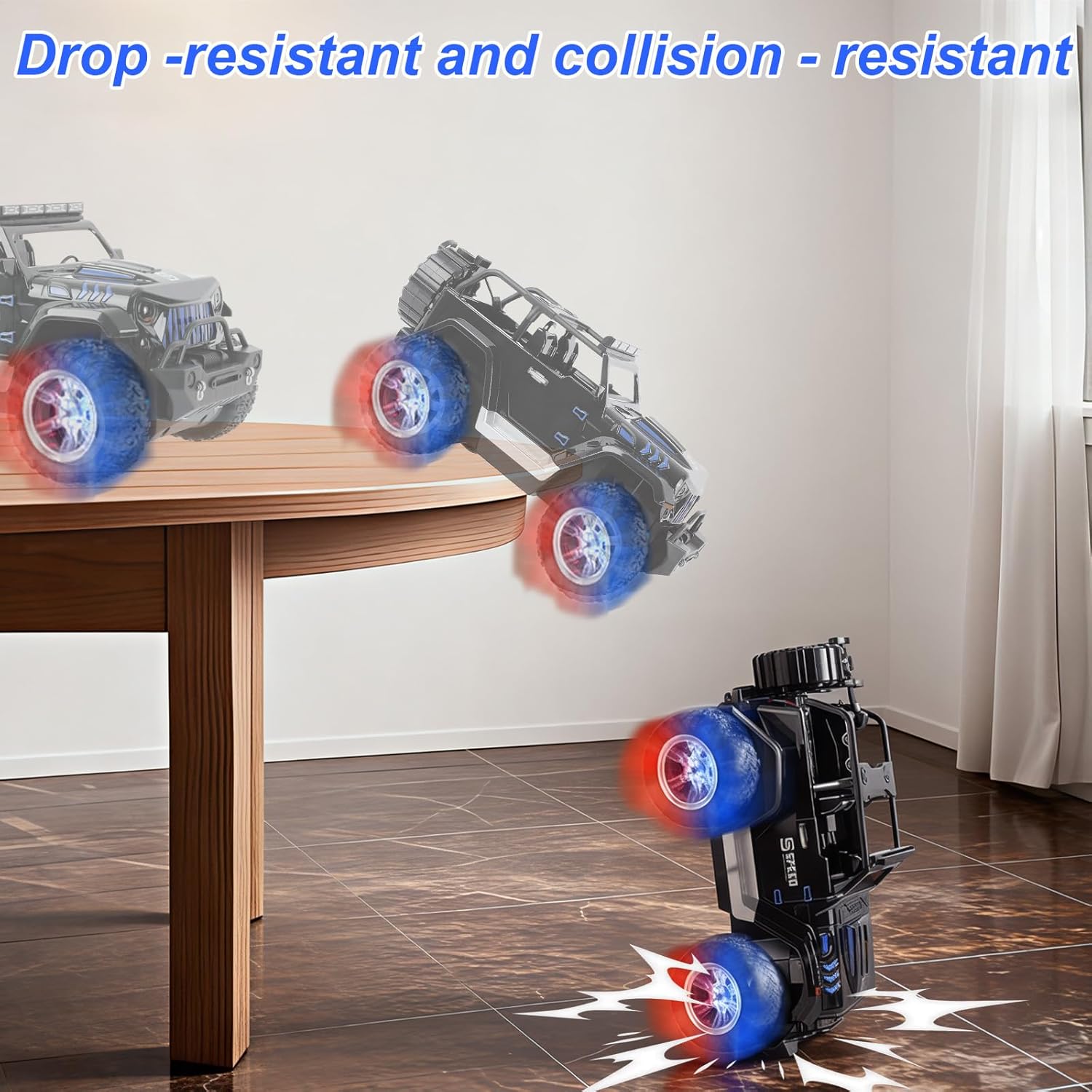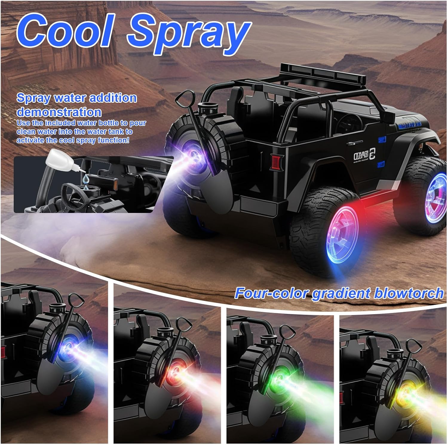 Macchina telecomandata versatile per bambini – Questa macchina telecomandata è ideale per bambini a partire dai 6 anni, offrendo ore di divertimento. Con un design robusto e ruote luminose, è perfetta per diversi terreni come erba, strada e sabbia. Design resistente per avventure emozionanti – Questa auto radiocomandata è progettata per resistere agli urti, con una struttura robusta che sopporta collisioni e cadute. Perfetta per emozionanti avventure all'aperto. Luci colorate e suoni realistici – Goditi effetti di luce straordinari e suoni realistici del motore che rendono l’esperienza di guida ancora più entusiasmante. Questa macchina telecomandata cattura l'attenzione con le sue luci colorate. Funzione di spruzzo d'acqua per maggiore divertimento – Con la funzione integrata di spruzzo d'acqua, l'auto genera una nebbia d'acqua divertente che rende l'avventura ancora più realistica. Idea regalo perfetta per bambini – Questa macchinina telecomandata è il regalo ideale per i bambini, che stimola la coordinazione mano-occhio e l’interesse per la tecnologia. Perfetta per compleanni e altre occasioni speciali.