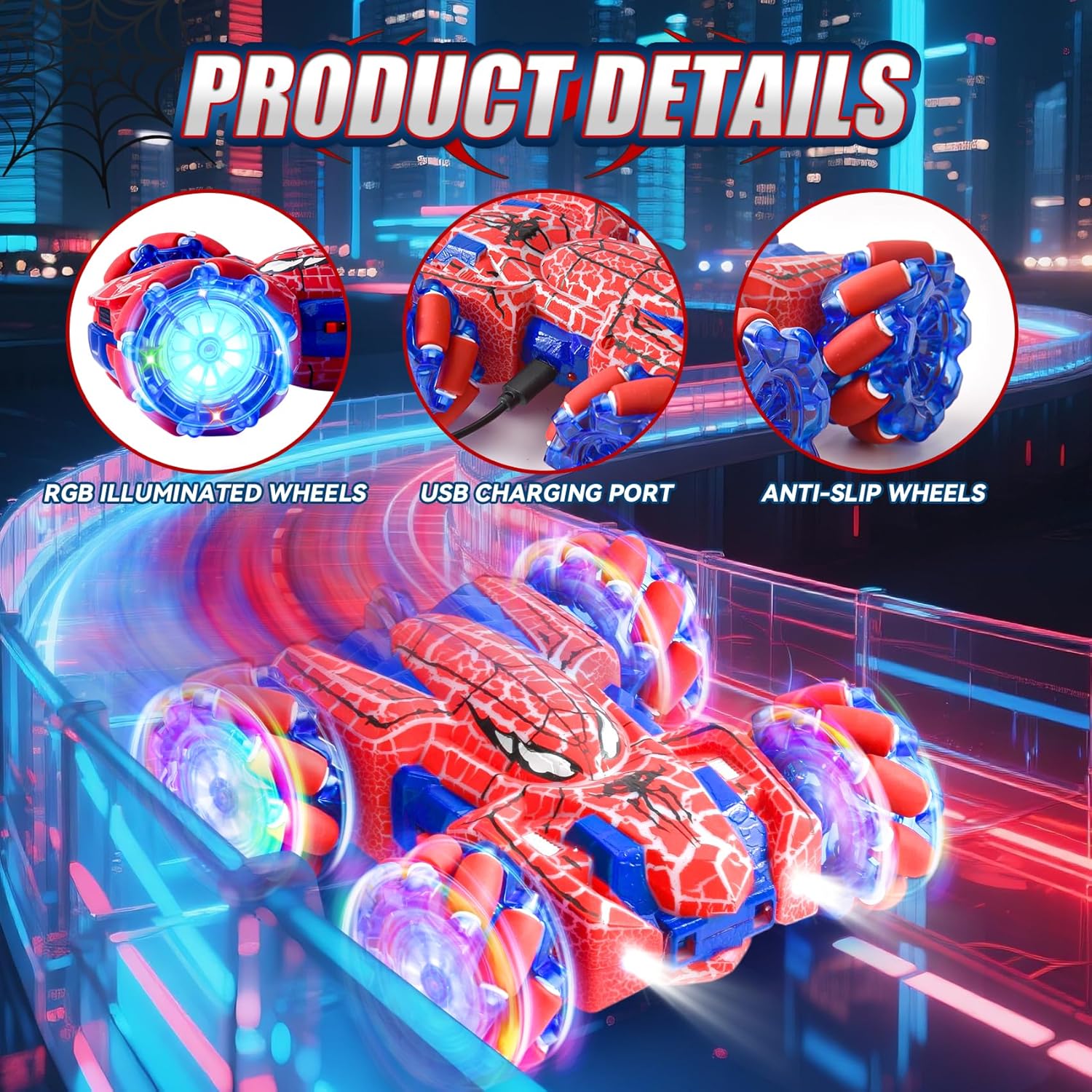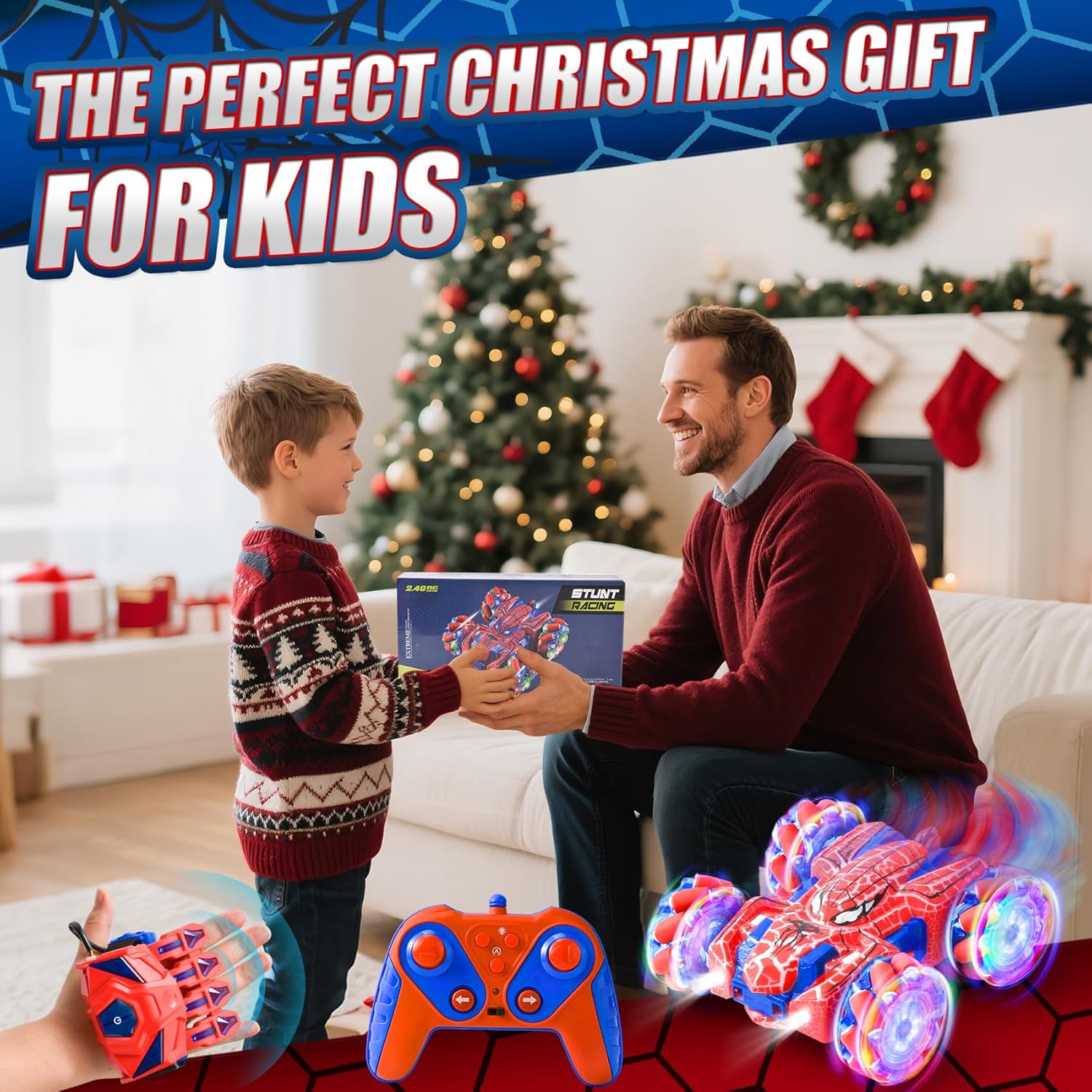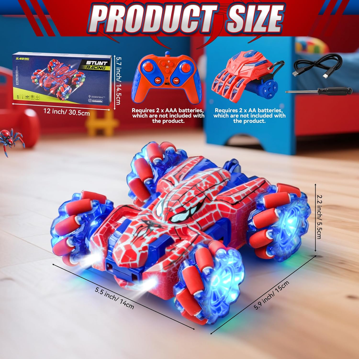 Doppio controllo, doppio divertimento: Macchina Giocattolo Telecomandata è dotato di due innovativi telecomandi per un divertimento doppio! Controllalo con il classico controller a maniglia o diventa un maestro dell'illusione con l'esclusivo dispositivo portatile, come se esercitassi poteri magici su giochi per bambini. Questo macchina spider aiuta a sviluppare la coordinazione occhio-mano ed è il regalo perfetto per bambini e bambine dai 3 anni in su. Nota: entrambi i controller richiedono batterie (il controller wireless richiede 2 batterie AA, il controller portatile richiede 2 batterie AAA). Le batterie non sono incluse nella confezione. Macchina Telecomandata: pronti a esibirvi? Il nostro veicolo Auto Radiocomandata può eseguire incredibili giri a 360°, manovre di drifting spericolate e persino guidare in avanti e indietro! Alimentato da un robusto sistema di trazione integrale e dotato di abbaglianti luci LED su tutto il corpo, è un vero e proprio spettacolo. Cattura l'attenzione di tutti e garantisce un divertimento duraturo di giorno e di notte, sia nella stanza dei giochi che in giardino. Conquista qualsiasi terreno: macchinina telecomandata bambino è fatto per l'avventura! La sua struttura resistente agli urti e i grandi pneumatici fuoristrada antiscivolo sono progettati per ambienti difficili. Che si tratti di moquette, erba, pavimentazione in pietra o sabbia, la trazione integrale affronta senza sforzo tutti i terreni. Goditi intense gare di corsa all'interno o all'esterno. Divertimento senza preoccupazioni: controllo totale senza grovigli di cavi! La tecnologia wireless a 2,4 GHz garantisce un funzionamento stabile con una portata effettiva di 30-40 metri, supportando più auto contemporaneamente senza interferenze, perfetta per gare emozionanti con fratelli o amici. La batteria ricaricabile si ricarica rapidamente e facilmente tramite il cavo USB incluso, senza bisogno di smontaggi complicati, basta collegarla e giocare! Il regalo perfetto: giochi spider 3 4 5 6 7 8 9 anni porta immensa gioia ai bambini! Presentato in una raffinata confezione regalo, LTFIOON Spider Giocattolo è la scelta ideale per compleanni, Pasqua, Natale o semplicemente come regalo a sorpresa. Giochi per bambini aiuta a sviluppare le capacità motorie e l'immaginazione dei bambini. Questo giocattolo unico e ricco di azione diventerà sicuramente uno dei preferiti dai bambini e dalle bambine dai 3 ai 12 anni.