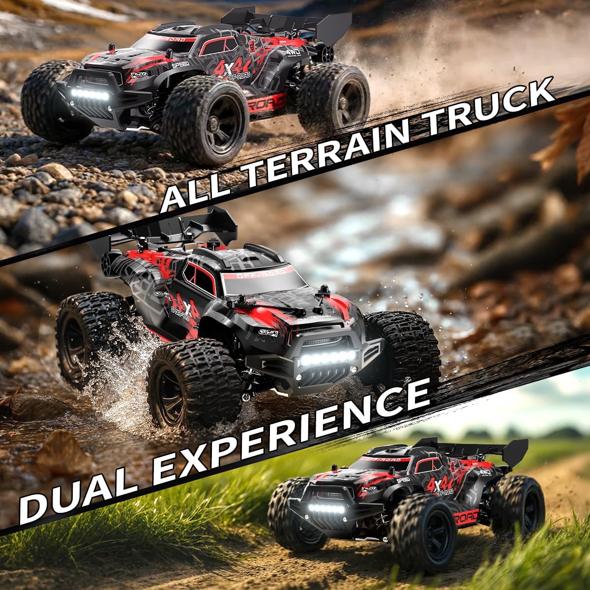 Motore RC380 ad alte prestazioni e controllo stabile 2,4 GHz Questa macchina telecomandata 4x4 è alimentata da un motore RC380 ad alta potenza, capace di raggiungere fino a 36 km/h con un’accelerazione fluida e una risposta precisa. Il sistema di controllo 2,4 GHz assicura una connessione stabile e priva di interferenze, ideale per gare con più veicoli. Perfetta per chi desidera un’esperienza di guida realistica e dinamica in ogni terreno Due batterie al litio da 1500 mAh e lunga autonomia di gioco Fornita con due batterie ricaricabili da 1500 mAh, ciascuna offre circa 20 minuti di autonomia, per un totale di oltre 40 minuti di divertimento ininterrotto. Il cavo USB incluso consente una ricarica comoda e sicura tramite adattatori di alimentazione standard o power bank. Grazie al design modulare della batteria, è facile sostituirla e prolungare il tempo di gioco in pochi secondi Design compatto 1:18, perfetto per le avventure all’aperto Con il suo design in scala 1:18, questa macchina RC combina potenza e maneggevolezza in un formato compatto. Le dimensioni ridotte la rendono facile da trasportare nello zaino, ideale per gare all’aperto in giardino, parco o in viaggio. Un modello creato per chi ama esplorare e vivere la libertà di guida ovunque Sistema 4x4 e telaio rinforzato per maggiore stabilità La trazione integrale 4WD e il telaio rinforzato in metallo centrale garantiscono una struttura solida e durevole. Le sospensioni indipendenti e gli ammortizzatori in metallo assorbono efficacemente gli urti, mantenendo stabilità e controllo anche su terreni irregolari. Ideale per affrontare percorsi difficili con potenza costante Doppia carrozzeria e ottima idea regalo per adulti e ragazzi Dotata di due carrozzerie intercambiabili, questa macchina telecomandata offre la possibilità di cambiare stile ogni volta che vuoi. Un’idea regalo originale per adulti e ragazzi, perfetta per compleanni, festività o momenti di svago in famiglia. Un’esperienza di gioco divertente e condivisibile per tutti gli appassionati di RC