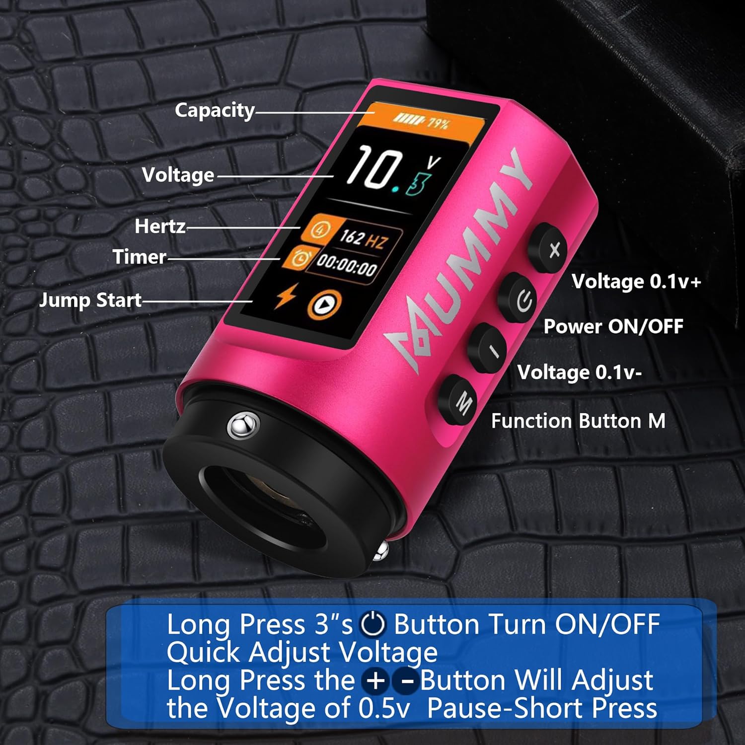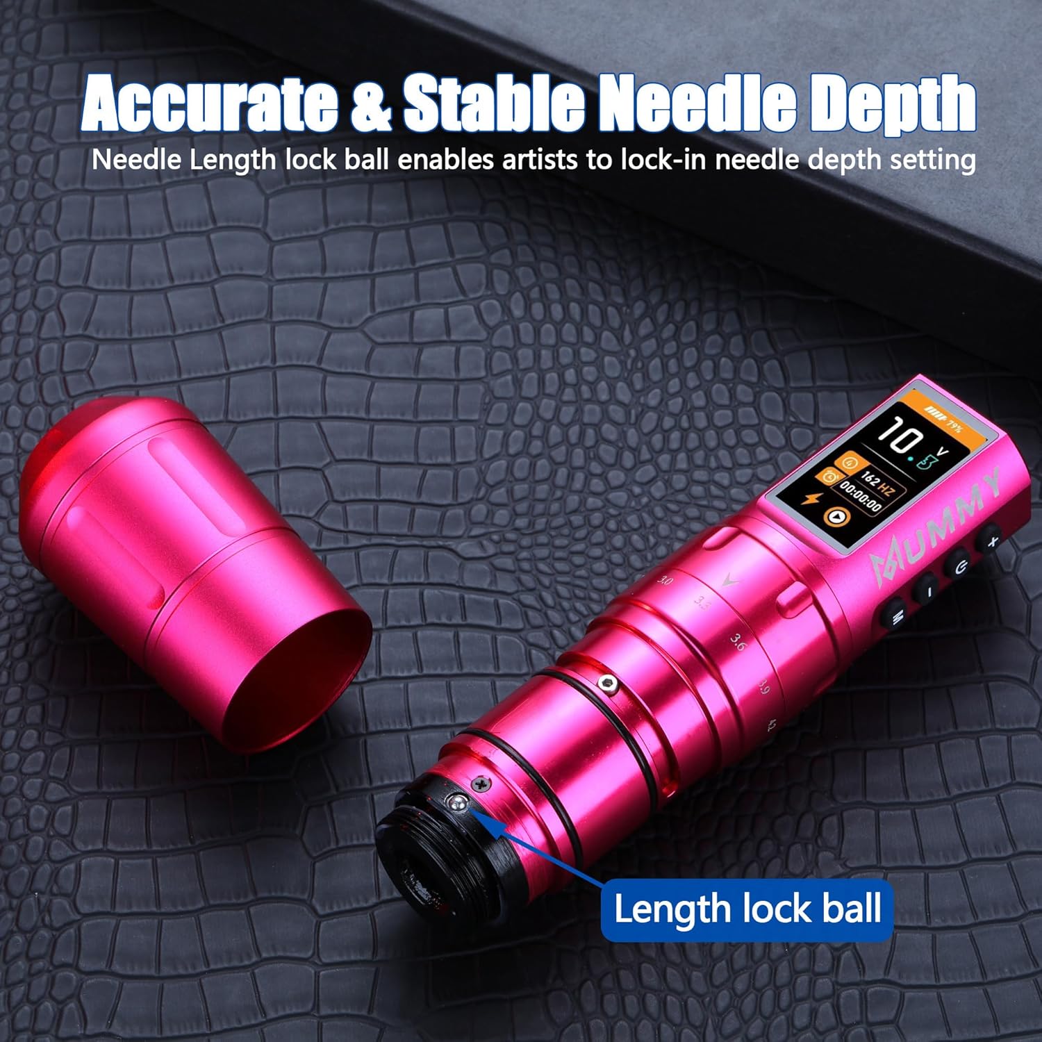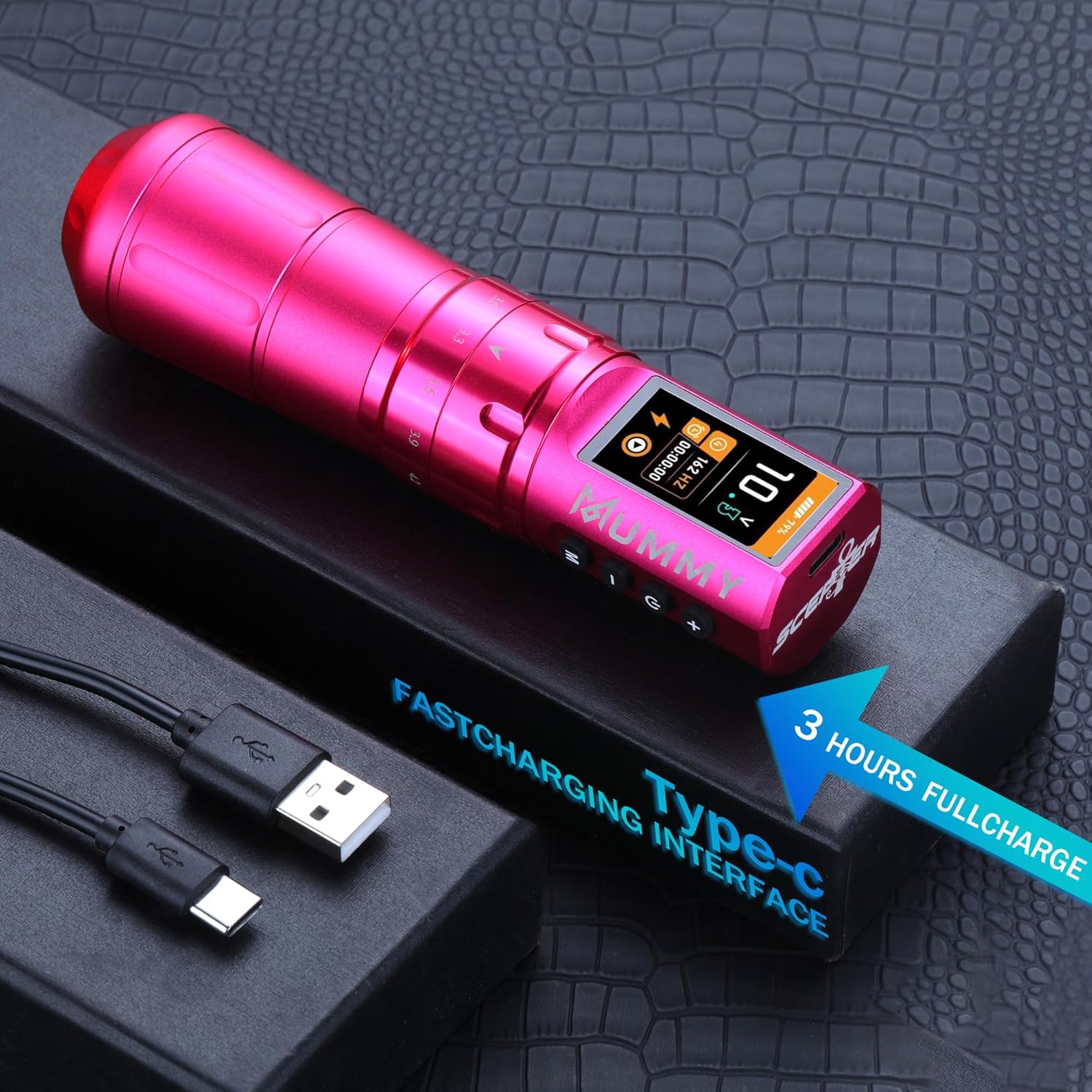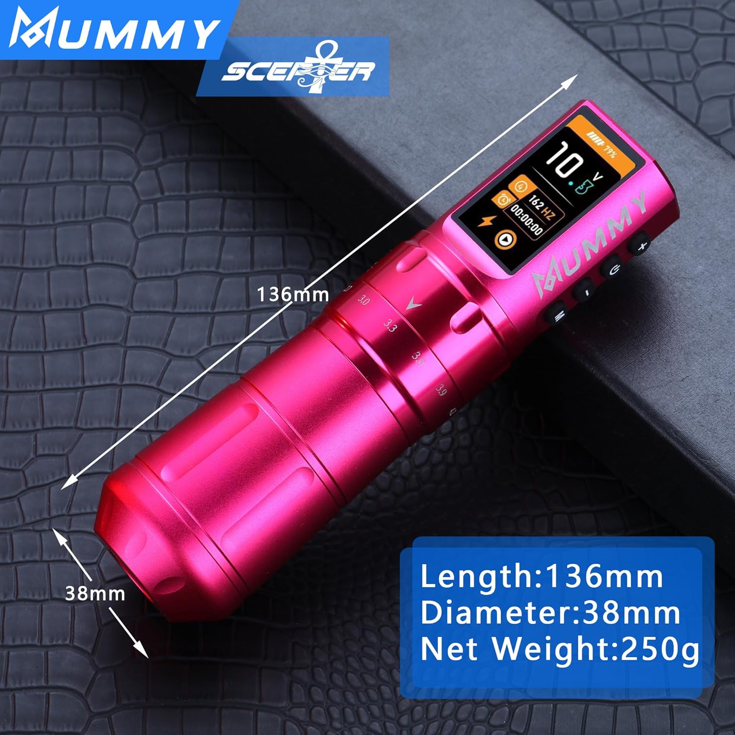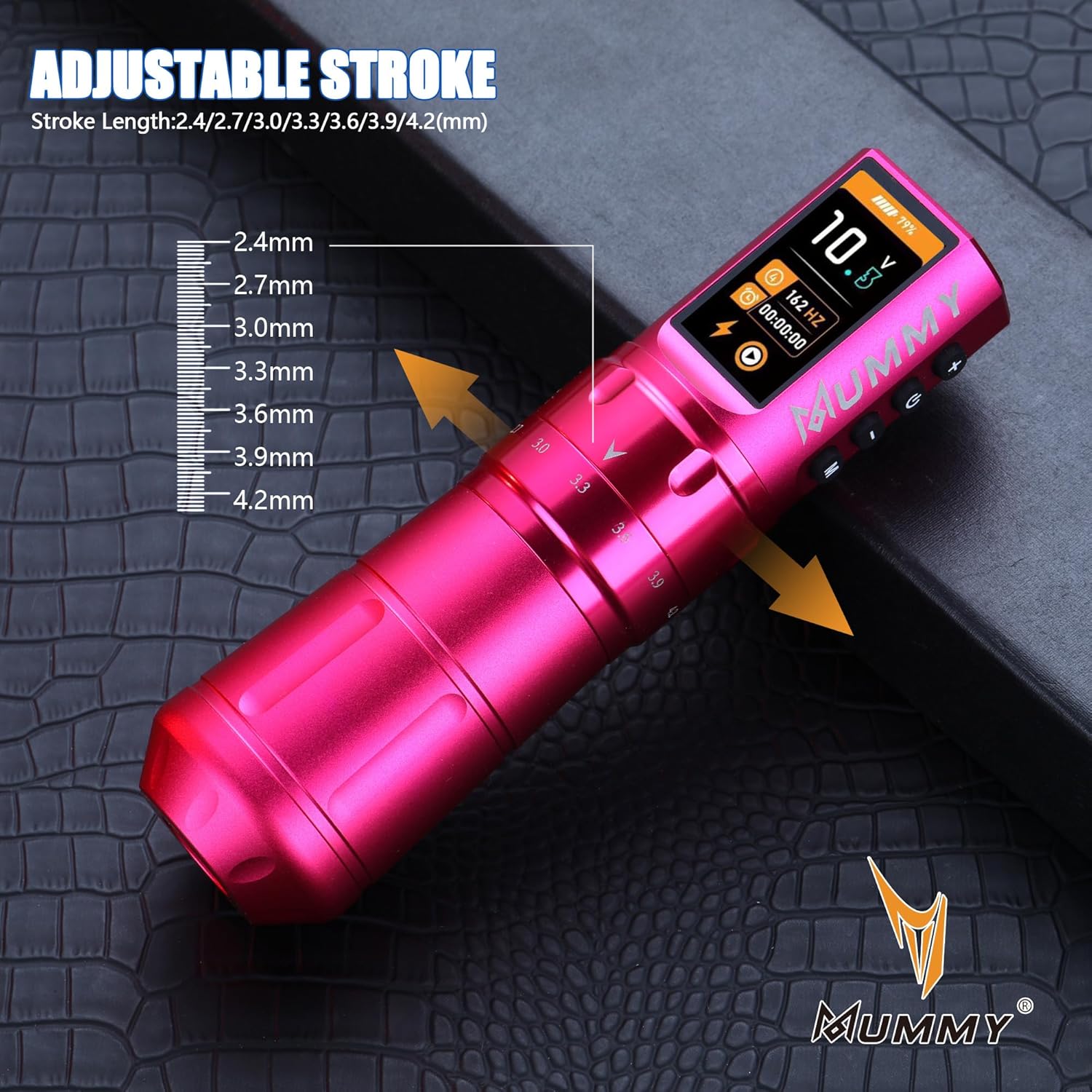 Perché sceglierla: se desideri lavorare con una penna con punta più comoda e super facile da usare, allora questa fantastica penna con corsa regolabile è la scelta migliore per te. Batteria ad alta capacità: batteria ai polimeri (1800 mAh), richiede 2-3 ore per la ricarica completa (non sovraccaricare), funziona per più di 5-7 ore. Ma il caricabatterie USB C è disponibile per ingresso: 100-240 V 50/60 Hz, tensione in uscita: 5 V/1 A, 5 V/1,5 A, 5 V/3 A; (non compatibile con caricabatterie rapidi): 9 V/1,5 A, 9 V/2 A, 12 V/1,5 A, 12 V/2 A, ecc. Tatuaggi, PMU e SMP con macchinetta per tatuaggi - Mummy Scepter offre 7 tratti: 2,4/2,7/3,0/3,3/3,6/3,9/4,2 mm, cambia la corsa ruotando la manopola di regolazione, ti consente di tatuare in qualsiasi stile con facilità Custom Swiss Motore Mummy 12V 8500 RPM con un motore ultra potente e anti-intoppo che consente potenza e durata eccezionali e scivola attraverso la pelle senza impigliarsi o tirare, conferisce alla macchina un eccellente equilibrio tra rivestimento e ombreggiatura ed è perfetto per rivestimenti esigenti e confezionamento di colori. Tensione di avvio: 5 V. Tensione di funzionamento: 4-12 V. Contenuto della confezione: 1 x penna tatuaggio mummia scettro + 1 x batteria extra + 1 x cavo di ricarica rapida USB-C.