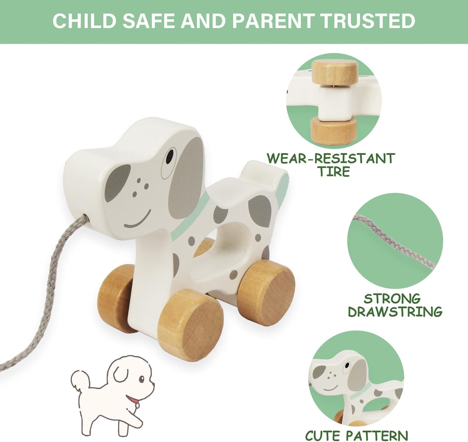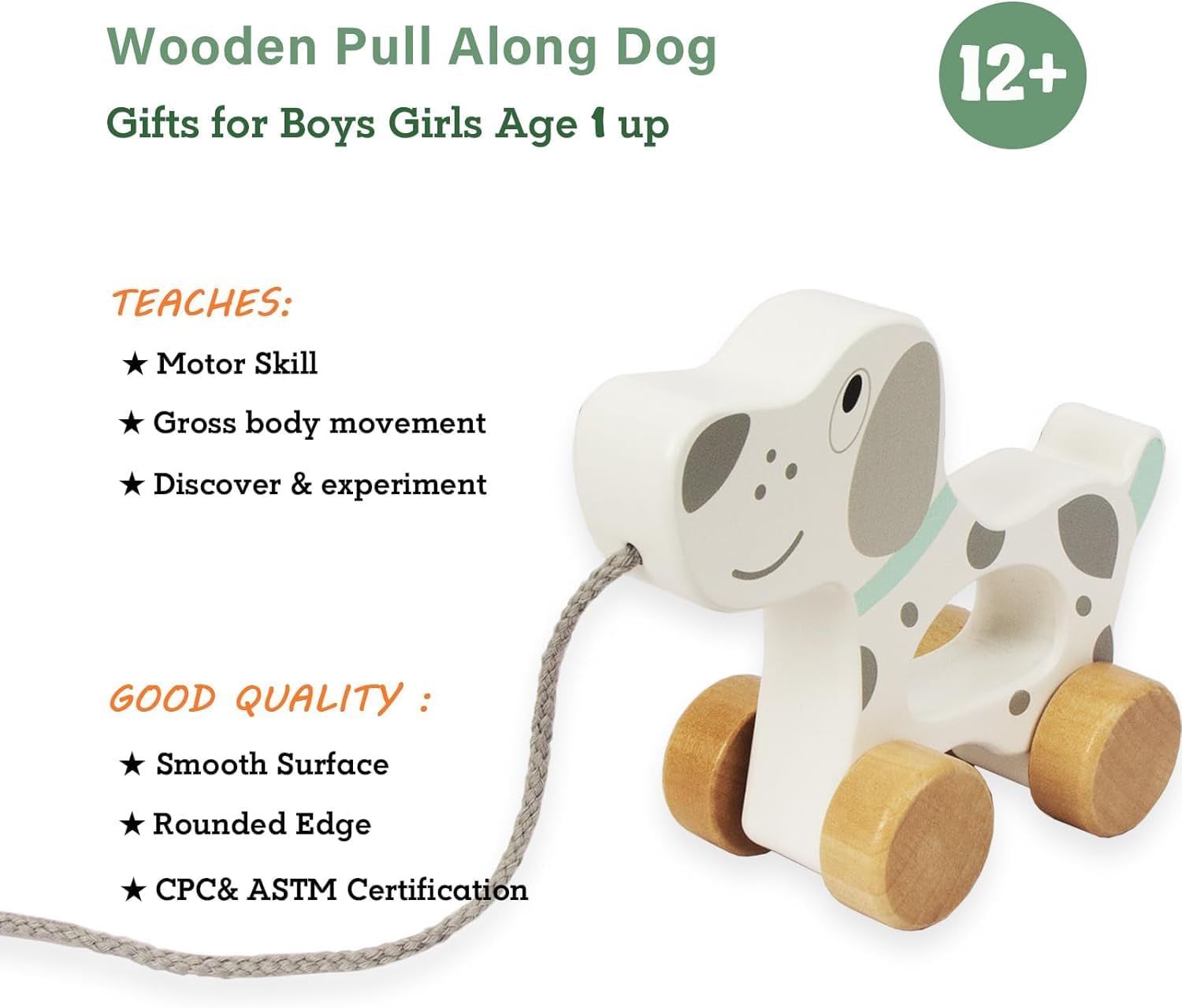Dimensioni: 15,5 cm x 13 cm x 6,5 cm Alta qualità: i prodotti in legno certificati FSC garantiscono atossicità, protezione ambientale e sicurezza al 100%. Set di giocattoli in legno naturale, adatto a bambini da 1 anno in su. Impara a camminare: i giocattoli da tirare sono molto adatti per incoraggiare i bambini a gattonare e sono un buon compagno per loro quando camminano o corrono per casa. Buon regalo: questo giocattolo push-pull in legno attirerà sicuramente i bambini. Questo sarà un meraviglioso regalo di compleanno, festa dei bambini e Capodanno per ragazzi e ragazze di età superiore a un anno che stanno imparando a camminare. Garanzia di soddisfazione al 100%: progettiamo ogni giocattolo con i più alti standard di qualità e coltiviamo i nostri pensieri e pensieri. Garanzia di qualità a vita e garanzia di rimborso di 30 giorni.