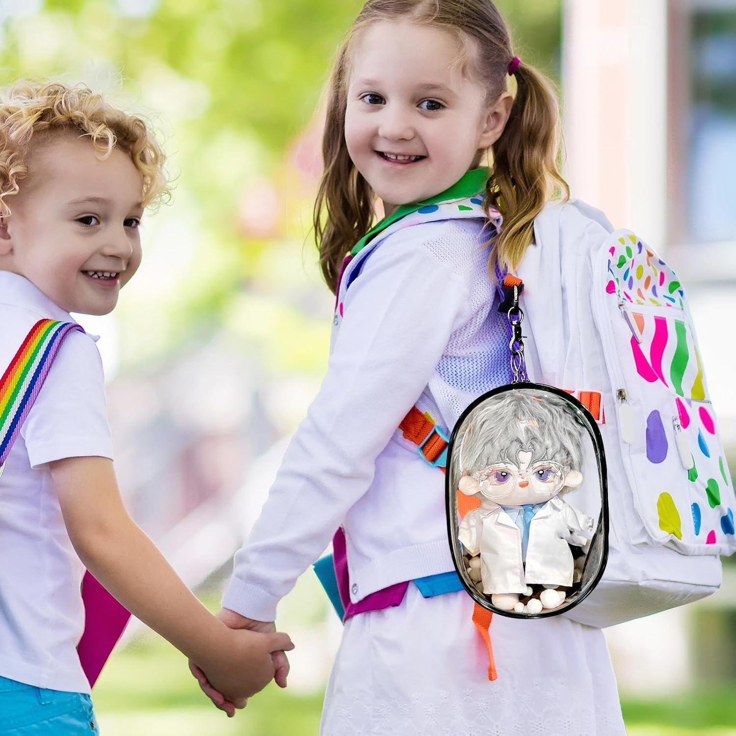 Sicurezza delle bambole assicurata]: con la nostra chiara borsa da trasporto per bambole e piccoli articoli, puoi conservare in sicurezza le tue bambole mentre sei in viaggio. Progettato specificamente per le bambole, è per uso interno ed esterno. Accessibilità rapida]: con una chiusura a doppia cerniera, la nostra borsa per trasporto di bambole trasparente offre un rapido e semplice recupero delle tue bambole. Puoi eliminare rapidamente gli oggetti di cui hai bisogno, garantendo al contempo la sicurezza della borsa per impedire la caduta delle bambole. Forte durata]: realizzato in materiale in PVC trasparente di qualità, ispessito, la nostra borsa da trasporto di bambole trasparente garantisce un deposito secco e pulito che protegge le bambole dall'umidità. Puoi facilmente vedere la loro bellezza dall'esterno, aumentando la gioia della conservazione fornendo al contempo una buona protezione per la tua amata collezione. Design per tutti gli scopi]: la borsa da trasporto di bambole trasparenti non è limitata alle bambole, raddoppia anche come una porta di cartoleria o cosmetica, rendendo l'organizzazione un gioco da ragazzi per diverse occasioni, in qualsiasi momento e ovunque. Mobilità migliorata]: combinando una cintura a mano con una struttura leggera e trasparente, la nostra borsa da trasporto della bambola trasparente è un must per genitori e bambini sulla strada. Ideale per passeggiate quotidiane, viaggi o visite del , aggiunge comodità a qualsiasi gita.