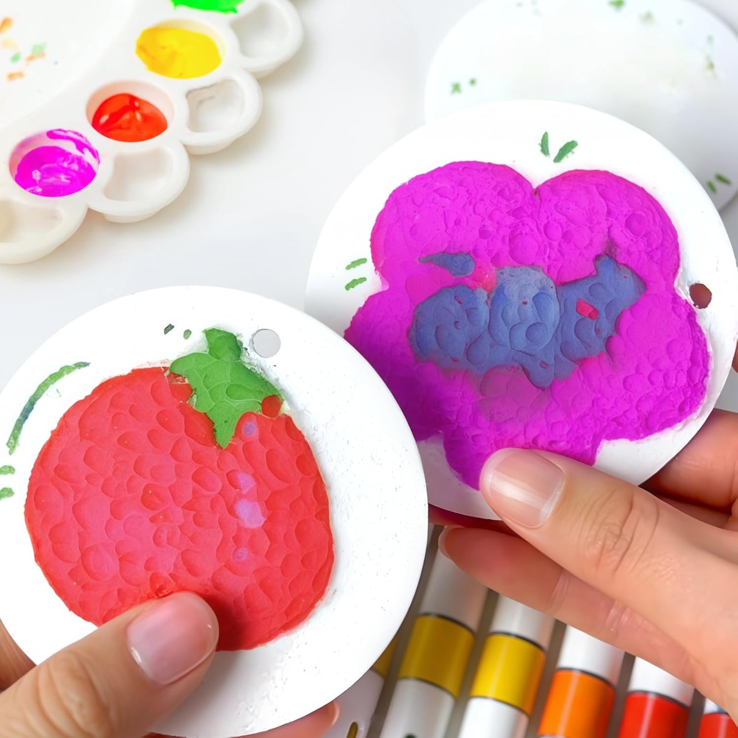 Avvincente esperienza di pittura incantevole: esplora il divertimento della pittura attivata dall'acqua; ogni spugna presenta deliziosi disegni a pois prestampati come fiori e fragole; bagnare il pennello per svelare tratti colorati Design semplice a pois per bambini: i contorni predefiniti a punti aiutano a lenire la pittura per le mani piccole; guida i giovani artisti lungo i bordi della forma; coltiva la loro fiducia e migliora la coordinazione occhio-mano Forme assortite per divertimento: presenta sessanta spugne in tre forme stravaganti: rotonde, cuore, quadrato; si espande istantaneamente con l'acqua; introduce varietà e consistenza giocose al tuo artigianato Incoraggia l'innovazione creativa: ispira l'espressione artistica e il pensiero creativo; ideale per feste di compleanno, progetti in classe e divertimento festivo; consente ai bambini di creare facilmente un'arte unica in spugna Forniture complete per la pittura: la confezione include sei penne ad acqua versatili con varie punte; le maniglie trasparenti mostrano il flusso d'acqua; adatte per numerose tecniche di pittura e attività
