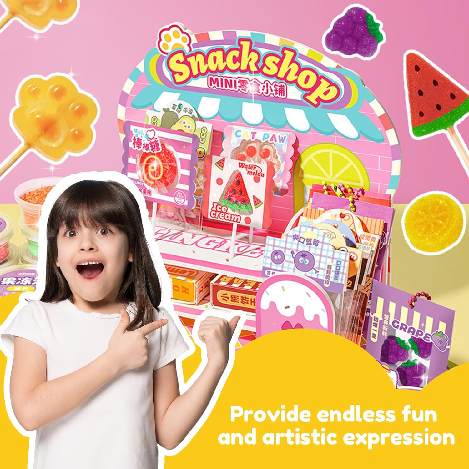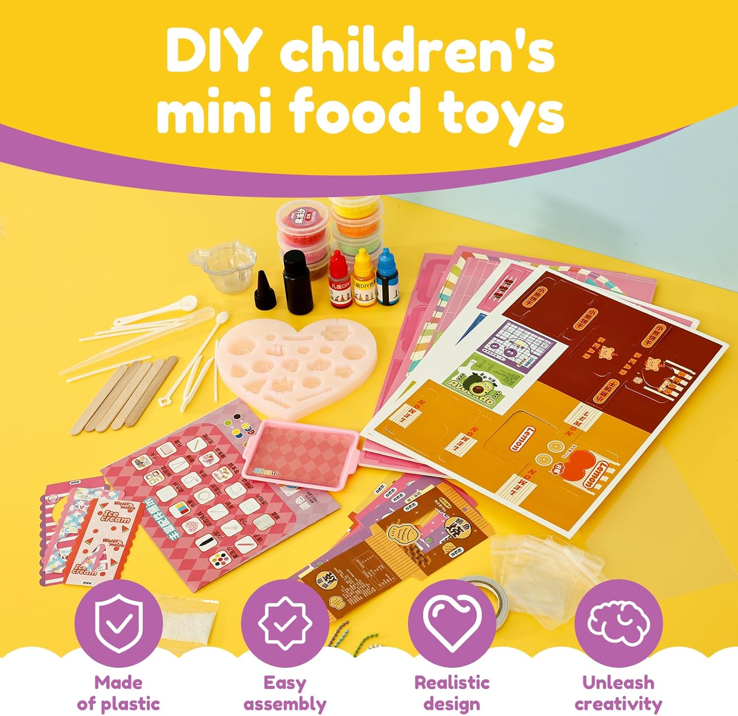 [Set di giocattoli alimentari in miniatura creativi e divertenti] Questo set contiene diversi materiali per la produzione di snack che consentono ai bambini di creare facilmente incantevoli modelli in miniatura come lecca-lecca, orsetti gommosi e chip di granchio. Questa pratica creazione porta divertimento e un senso di realizzazione. [Plastica sicuro] Il set in plastica resistente resiste a lungo al gioco ed è quindi sicuro per bambini e adulti, per un divertimento spensierato. [Esperienza fai da te] Costruisci e progetta il tuo negozio di snack con diversi componenti e offri divertimento infinito ed espressione artistica agli appassionati di tutte le età. Queste incantevoli creazioni possono essere utilizzate come decorazioni o come oggetti di scena per giochi di ruolo. [Design realistico e dettagliato] Gli alimenti in miniatura sono realistici, con forme e dettagli intricati. Il montaggio è semplice e divertente e offre una grande opportunità per dare libero sfogo alla creatività. [Il regalo perfetto per gli amanti delle miniature] Questo set di giocattoli fai da te in miniatura è perfetto per compleanni, vacanze o altre celebrazioni ed è un regalo unico per bambini dagli 8 anni e appassionati di modellini in miniatura. Nota: tutti i componenti non sono commestibili. I prodotti finiti devono asciugare all'aria per 24 ore.