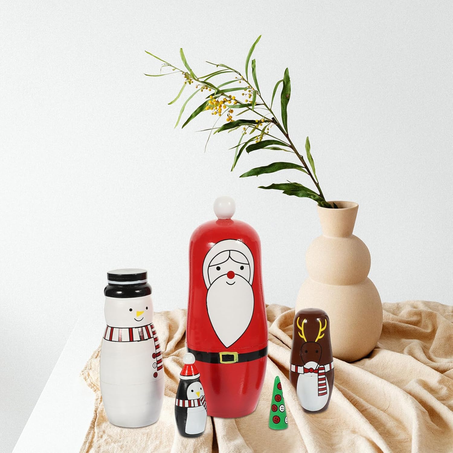 DIMENSIONE MASSIMA: 17 x 7 x 7 cm/6,68 x 2,75 x 2,75 pollici riceverai 1 set di bambole russe da nidificazione con 5 strati in totale. inclusi Babbo Natale, pupazzo di neve, alci, pinguini, albero di Natale. realizzato in legno, è lucidato per un esterno e un lisci che non ti graffieranno le . il motivo esterno è graffito fatto a mano con colori vivaci. facile da aprire e chiudere tra gli strati. può essere utilizzato per contenere piccole caramelle o altri piccoli oggetti o come decorazioni per la scrivania di casa e ufficio. adatto come regalo di compleanno, regalo di festa per la tua famiglia o i tuoi amici.