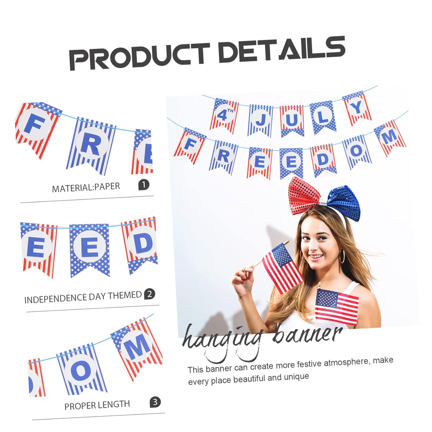 Stamina americana: realizzata in materiale cartaceo, non rompe facilmente e riutilizzabile, puoi anche usarla per feste a tema americane, celebrazioni o altre attività, ravviva la tua festa a tema,4° di. Decorazione del 4 luglio: puoi anche appendere striscione per splendido sfondo fotografico per una festa, che sarà decorativo, striscione del 4 luglio. Appeso americano: lo striscione sospeso degli stati uniti è l'aggiunta alla decorazione della festa del dell'indipendenza, le bandiere del 4 luglio. Ghirlanda del memorial day: presenta un design delicato, può davvero aiutare a creare momenti speciali e memorabili, ghirlande all'aperto. Bandiere americane: aggiungi più festività alla tua festa e saranno una meravigliosa aggiunta alla decorazione della tua festa patriottica e alle decorazioni americane.