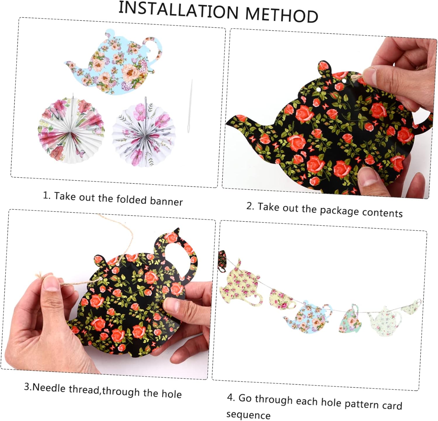 Banner per teiera: puoi mettere la decorazione della teiera sulle porte o in giardino, appendere la carta. Forniture per tea party: realizzate con , adottate, sono squisite., striscione decorativo per tea party. Ghirlanda: porta un po' di allegria natalizia con questo divertente accessorio durante festival, festival o capodanno, forniture blw per . Pendenti in carta per feste: realizzati con carta di alta qualità e sicuri, non deformano facilmente, ghirlanda per tea party. Ornamento da parete per festa di compleanno: design a forma di teiera a forma di cartone animato, un ottimo supporto fotografico per te, decorazione per il tea party.
