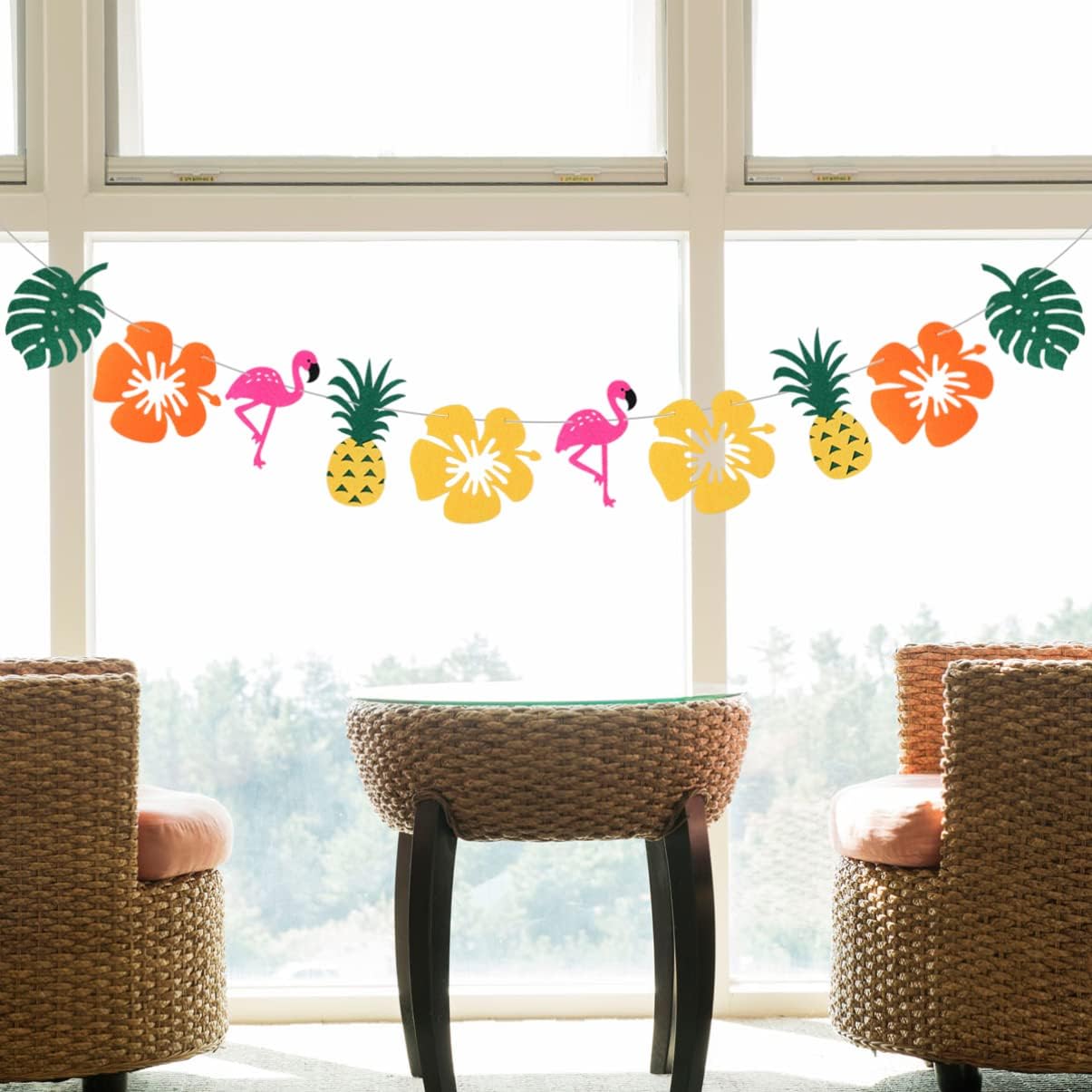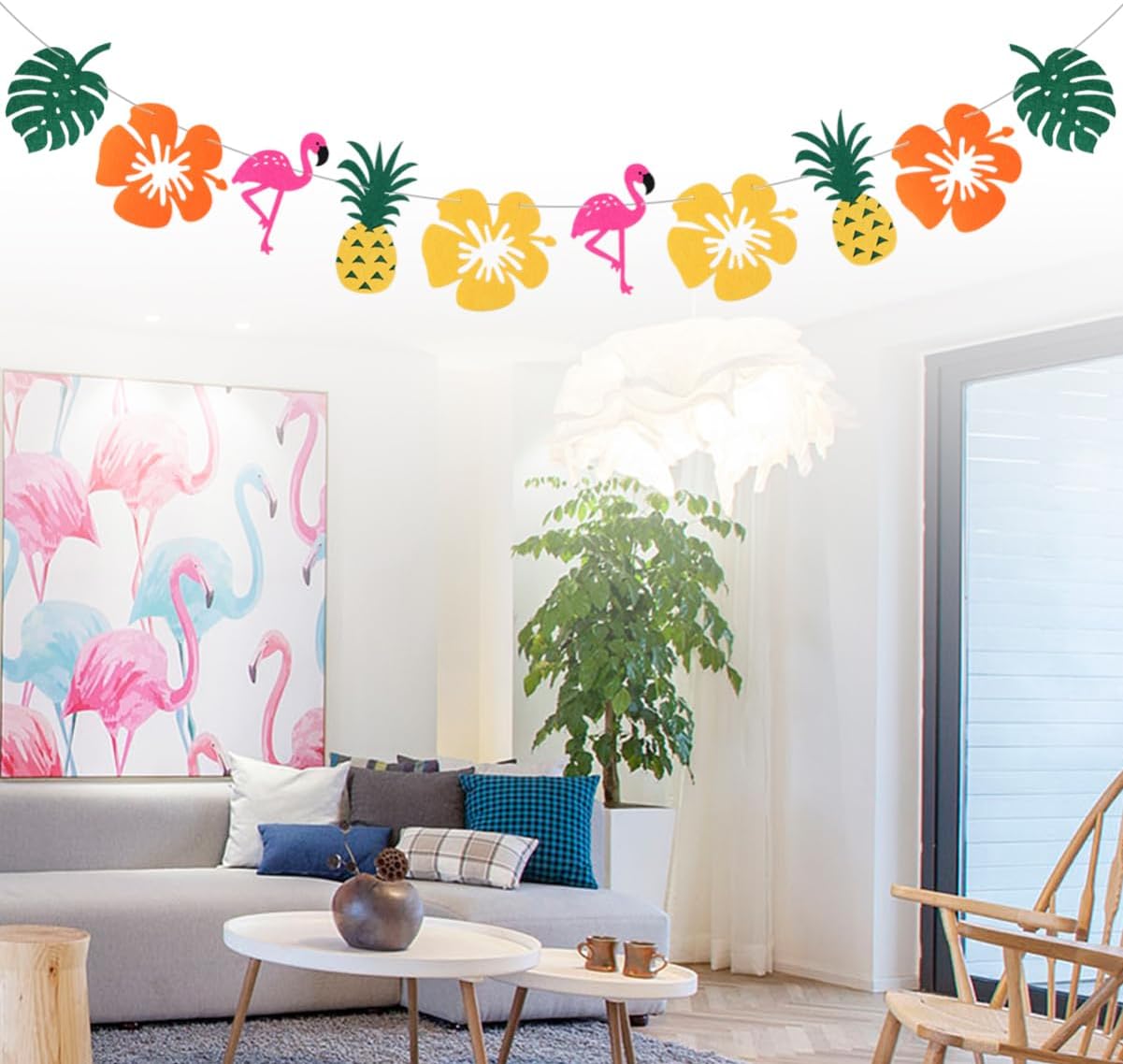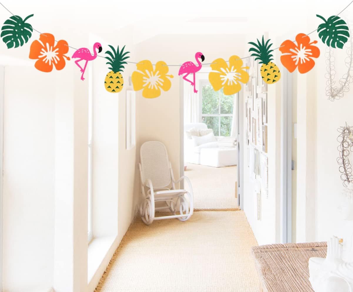 Bandiera con stamina di frutta tropicale: realizzata in materiale, il design in feltro rende lo striscione duraturo e robusto, con decorazioni in foglie di palma. Striscione in foglia di palma: per la festa di compleanno a tema fenicottero per bambini, striscione in feltro con ananas. Fenicottero: può davvero aiutare a creare momenti speciali e rilassanti per te e i tuoi amici, ghirlanda tropicale in feltro. Decorazioni con frutta: il luogo per appendere potrebbe essere la parete della stanza, la finestra, la mensola del e il tavolo da festa e tutto ciò che puoi immaginare, una ghirlanda di feltro.