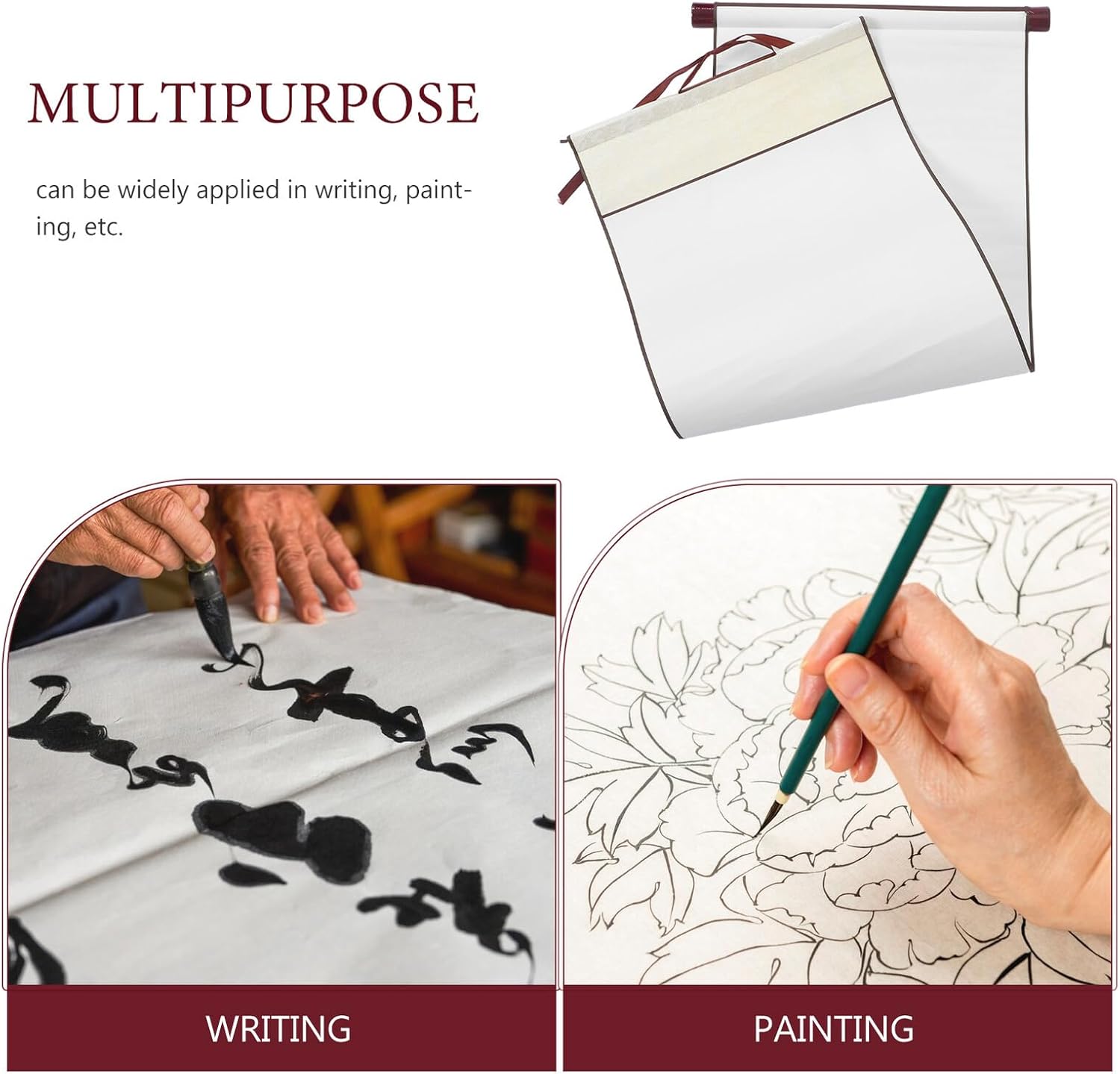 SUMIE SCROLL: realizzato con materiale cartaceo di e , questo rotolo di carta è durevole nel tempo. SET DI PERGAMENE PARETE SOSPESE CON MONTAGGIO IN BIANCO: di carta disegno e leggero, possono riposti a piacimento, non occupano spazio. CARTA PERGAMENA CALLIGRAFICA - montaggio di pergamene sospese: la pergamena ha una consistenza chiara, buona tenacità, buona scrittura e pittura, assorbenza. PARETE IN CARTA XUAN: realizzati in materiale cartaceo di , possono durevoli e duraturi. ROTOLO DI CALLIGRAFIA: rotolo di carta xuan adatto per la creazione di calligrafia, come pennello per scrivere in stampatello minuscolo e calligrafia in esecuzione.