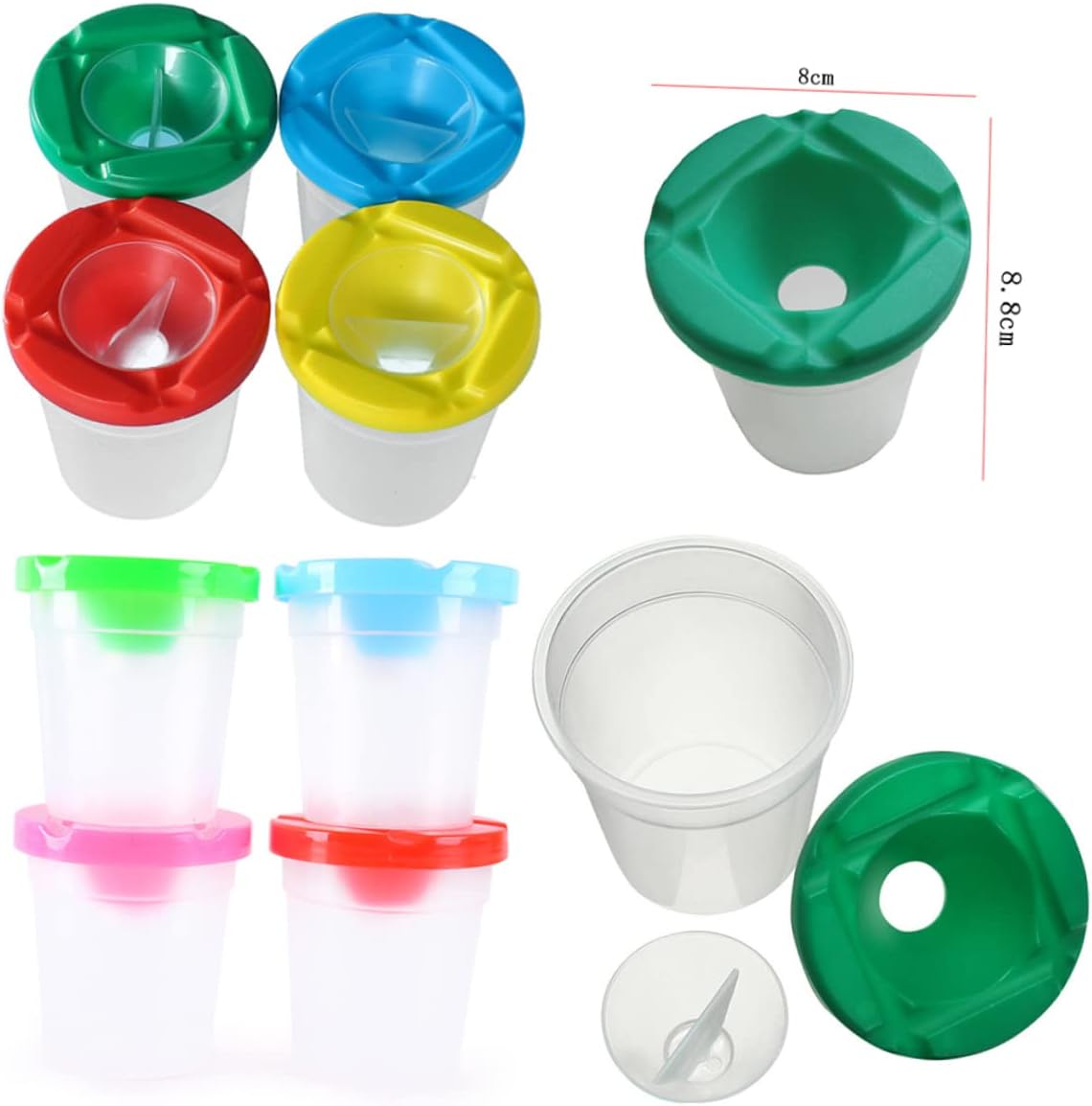 SET DI COLORI ARTISTICI PER I PIÙ PICCOLI: i bicchieri di vernice sono progettati a prova di versamento in modo non doverti preoccupare della perdita quando il bicchiere cade. perfetto per i giovani artisti per evitare enormi pasticci di fuoriuscite. le tazze trasparenti rendono facile vedere direttamente il colore e possono anche fungere poggia pennelli o riporre i pennelli. ASSORTIMENTO DI VERNICI PER BAMBINI: tutti i bicchieri e i pennelli antigoccia sono multicolori in modo poter aiutare a identificare i diversi colori nelle tazze. mescolare le tazze colorate può aiutarli a dipingere senza rovesciare la vernice e tenerli in ordine durante l'uso. KIT DI PENNELLI IN TINTA: -tazza trasparente per una facile conservazione pigmenti di colore all'interno. e il coperchio della tazza multicolore e il manico del pennello per un uso del colore seqerato riconoscibile, pratico e facile. TAZZE DI VERNICE PER BAMBINI: tazza trasparente per una facile conservazione pigmenti colorati all'interno. e il coperchio della tazza multicolore e il manico del pennello per un uso del colore seqerato riconoscibile, pratico e facile. PENNELLI PER BAMBINI: il nostro set di pittura include tazze di vernice colorate a prova di versamento, pennelli per pittura di varietà e vassoio per vernice facile usare. non è solo lo strumento meraviglioso per la lezione d'arte, ma anche strumento per salvarti molti pasticci a casa o qualsiasi attività artistica. questo set farebbe divertire molto i tuoi bambini.