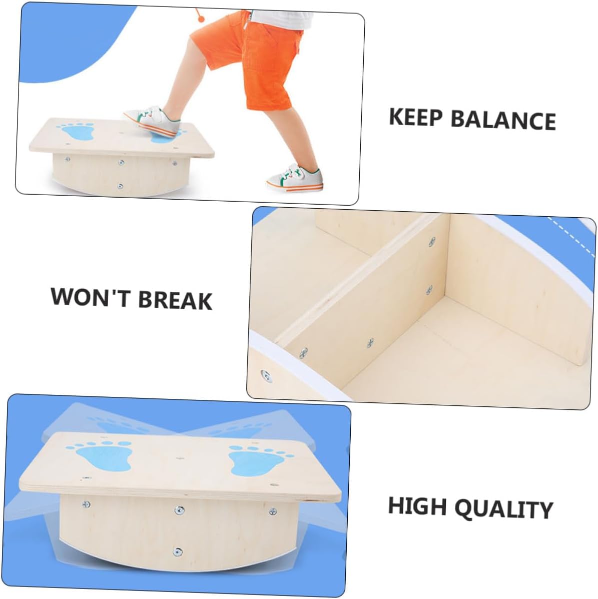 Sedia da allenamento per l'equilibrio: il movimento continuo da seduti stimola l'area correlata alla capacità di equilibrio, giocattolo per l'allenamento dell'equilibrio Piastra di equilibrio: mantiene le gambe e il busto del bambino in forma e aiuta a migliorare la concentrazione, riduce l'affaticamento e allevia la tensione del piede, sgabello per piede singolo Tavola di equilibrio: le strisce antiscivolo lo rendono più sicuro e ci sono strisce antiscivolo nella parte inferiore per evitare pavimenti instabili, sgabello di equilibrio per Sedia in legno con una gamba: presenta un design antiscivolo che favorisce la tavola di equilibrio e il giocattolo di equilibrio Piattaforma di equilibrio: questa tavola a dondolo è progettata per stimolare il nucleo dei bambini e migliorare la loro agilità, tempo di reazione e resistenza. Questa tavola per esercizi adatta alle articolazioni è l'ideale per tutti, un allenatore per le abilità sportive dei bambini