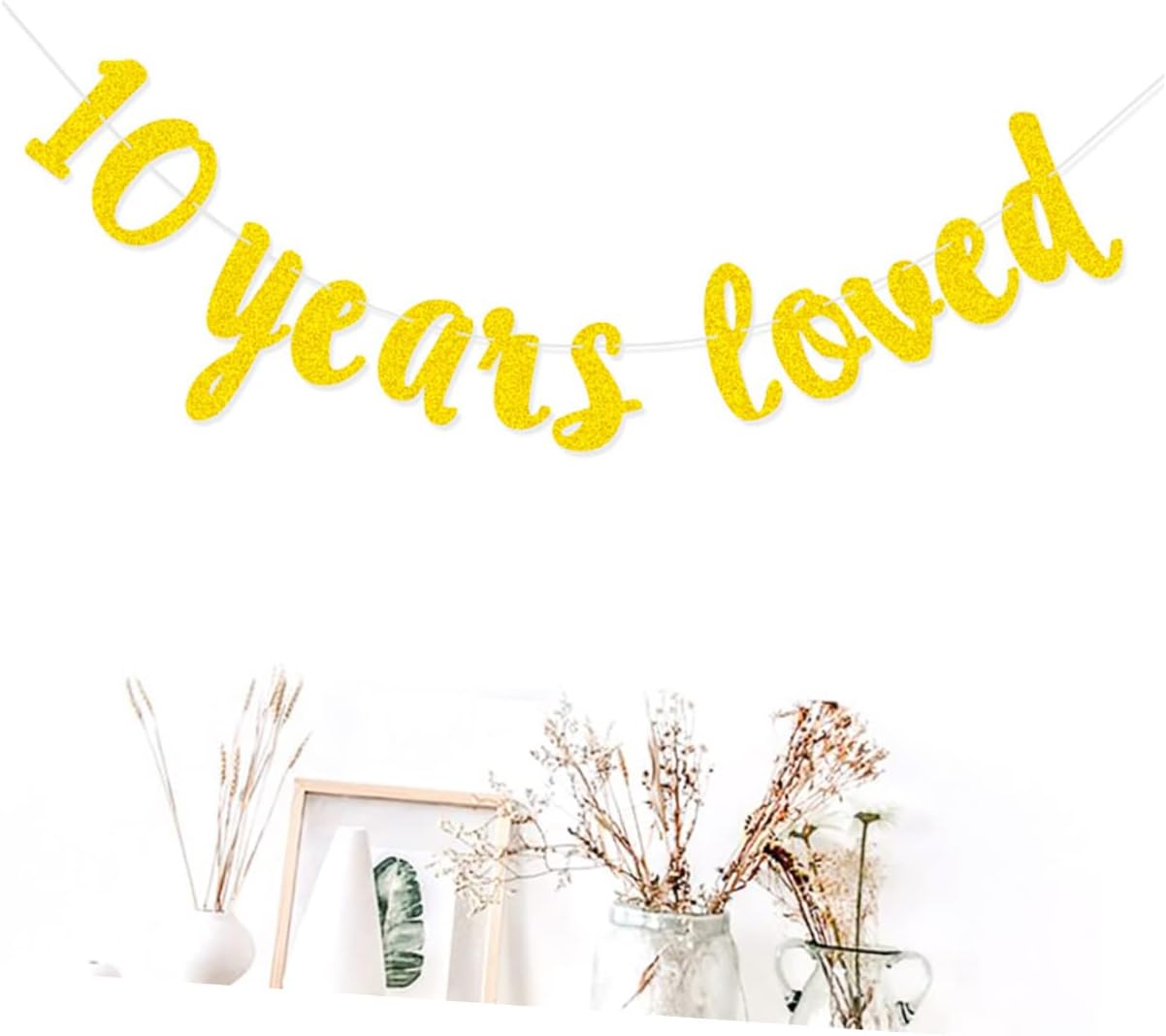 Decorazioni per la tavola di halloween: decorato con polvere glitterata, questo striscione è molto creativo e unico, striscione con lettere glitterate. Articoli per il compleanno: come supporto fotografico, puoi scattare foto utilizzando questo striscione, striscione benedetto da 10 anni. Striscioni lucidi per feste: lo striscione creativo per il compleanno può rivitalizzare la tua festa, decorare la festa di compleanno. Ghirlanda da appendere per compleanno: il design raffinato abbinerà resto delle tue decorazioni, decorazioni per addio nubilato. Striscione per il 10° anniversario: con materiali e cuciture a filo sottile, striscione resistente e vecchio di 10 anni.