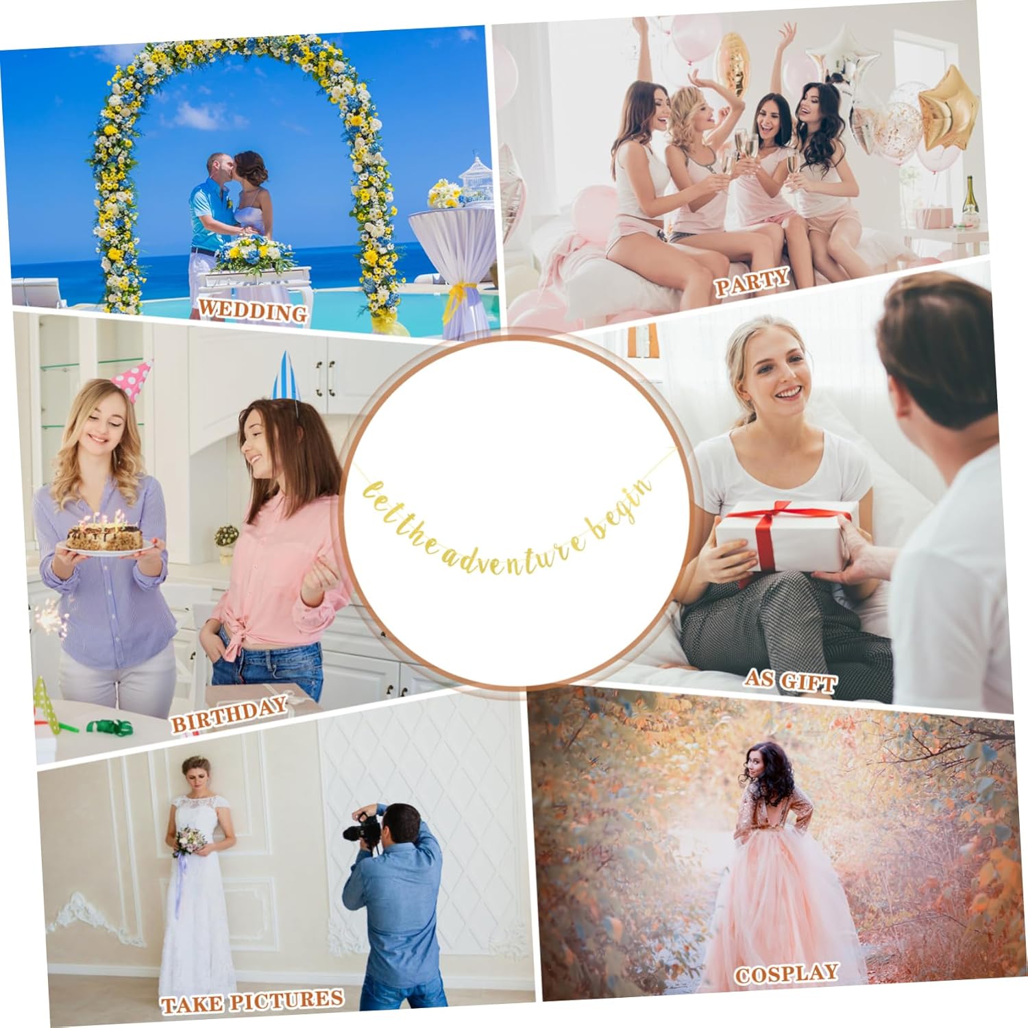 Banner di matrimonio: utilizza materiali cartacei, sicuri e leggeri, risparmia tempo per decorare, bandiera per la pensione di laurea. Lascia che l'avventura abbia banner per-- il banner è realizzato con pregevole fattura, per garantire praticità e durata, lascia che l'avventura abbia banner di carta. Decorazione gagliardetto per festa di matrimonio: leggero e di lunghezza adeguata, facile da appendere soffitto, muro, alla finestra, lungo il corridoio, ecc., cartello in carta glitterata. Decorazioni da appendere d'addio: appendere lo striscione glitterato "che l'avventura abbia " su pareti di sfondo, alberi, soffitto, finestre, lampadario, porta, molto comodo, forniture per feste. Bandiera decorativa: realizzata in materiale cartaceo e pratica da usare, puoi appenderla caminetto, alle pareti, ramo, soffitto o tavolo per adattarla alle altre decorazioni, lascia che l'avventura.