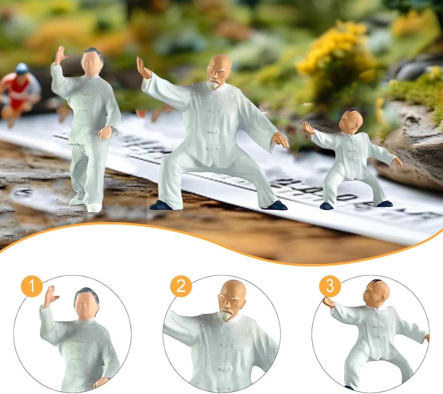 【Figure in scala 1:64】: Figurina in miniatura di Tai , i bambini seguono il loro maestro per praticare il Tai e imparare il Kung Fu cinese 【Materiale】: le miniature di Kung Fu sono realizzate in resina, dipinte a mano e prestano attenzione ai dettagli 【Uso】: Il modello in miniatura Kung Fu Master è adatto per tavoli da sabbia, set di modellismo ferroviario, modelli architettonici, giardini delle fate, paesaggi in miniatura, scenari o decorazioni da scrivania 【Regalo】: la statuetta di piccole persone è un regalo ideale per bambini e adulti per compleanni e feste. 【Dimensioni】: le statuette architettoniche sono alte circa 0,79 pollici-1,10 pollici, il che le rende adatte a diorami o display in scala 1/64
