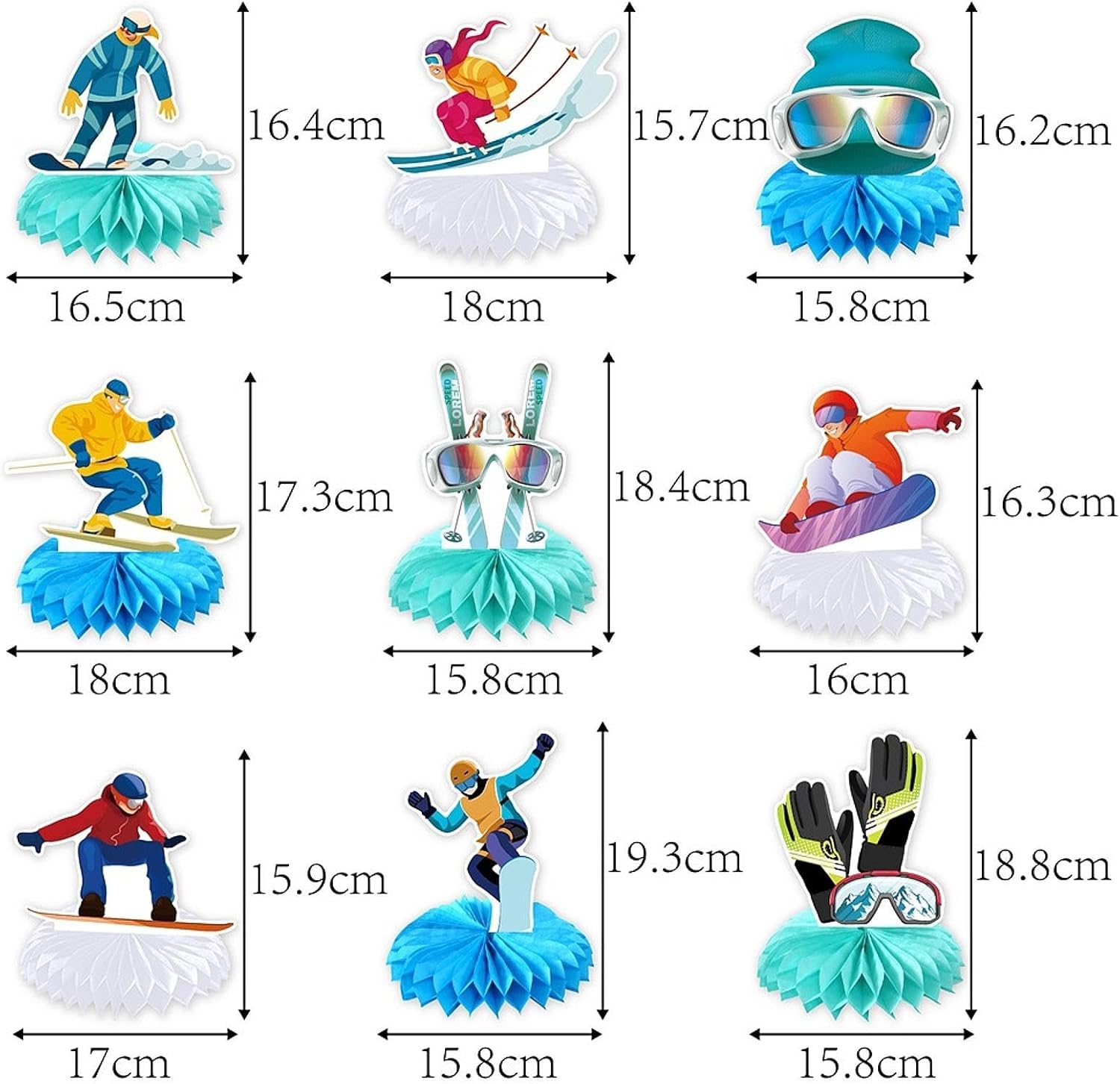 【Decorazioni per feste a tema 】: aggiungi e un'atmosfera unica di sport invernali alla tua festa di compleanno, riunione di vacanza o sportivo con queste accattivanti decorazioni da tavolo a tema 【Costruzione di qualità affidabile】: questi kit di decorazioni per compleanni sugli sono realizzati in cartoncino bifacciale di alta qualità, ogni pezzo è robusto e resistente, garantendo che l'allestimento della tua festa abbia un aspetto fantastico per tutta la celebrazione 【Base a nido d'ape stabile】: il design a nido d'ape 3D fornisce un supporto solido per la decorazione dei centrotavola, mantenendoli in posizione verticale e sicuri su qualsiasi superficie del tavolo 【Versatile per ogni occasione】: ottimo non solo per eventi a tema sciistico, ma adatto anche per compleanni, anniversari, feste di laurea e altro ancora, portando un fascino festoso a tutti i tipi di riunioni 【Set e dimensioni convenienti】: ogni confezione include 9 pezzi; le singole decorazioni misurano circa 21 cm x 20 cm x 1 cm / 8,27 pollici x 7,87 pollici x 0,39 pollici, ideali per creare una vivace atmosfera invernale sul tavolo della tua festa