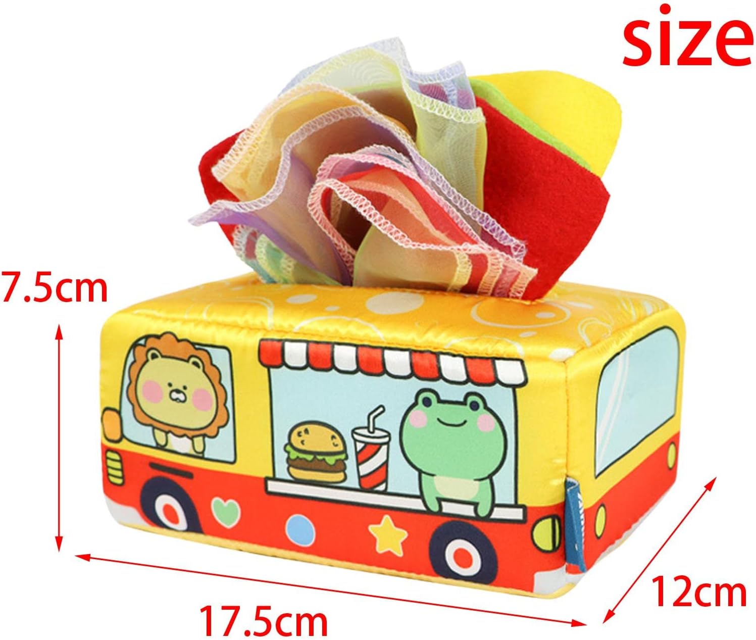 GIOCATTOLO SENSORIALE: Il nostro adorabile giocattolo con scatola di fazzoletti di "fazzoletti" di divers può promuovere lo sviluppo delle capacità motorie dei tuoi bambini. TESSUTO : 8 fazzoletti colorati divertente scatola di fazzoletti di peluche in cartone animato coinvolgono in un gioco divertente ed emozionante e intrattengono , felice e lenito. UNA SOSTITUZIONE COLORATA: abbiamo un sostituto della carta sicuro e divertente. Questa scatola di fazzoletti sensoriali intratterrà i bambini per ore con vivaci, i suoni . EDUCAZIONE PRECOCE: il panno morbido e setoso è perfetto per imparare , contare e migliorare motore ; capacità sensoriali. MATERIALE DI QUALITÀ: giocattoli sensoriali per bambini piccoli ; i bambini sono realizzati con materiali di peluche di qualità, delicati sulla pelle, morbidi e resistenti.