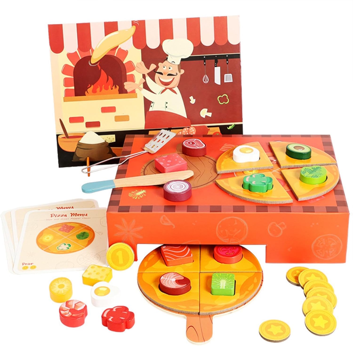 【Materiale in legno】: Realizzato in legno, questo giocattolo da taglio per la cucina dei bambini è costruito per resistere a un gioco entusiasmante, garantendo al contempo la robustezza per il tuo bambino. La struttura robusta garantisce un utilizzo e un divertimento a lungo termine. 【Gioco e apprendimento interattivi】: Questo set per pizza in legno è progettato per migliorare le capacità cognitive dei bambini attraverso giochi di ruolo interattivi in cucina. Incoraggia le attività pratiche, aiutando i bambini a sviluppare la coordinazione occhio-mano, il pensiero spaziale e il riconoscimento dei colori. 【Divertimento di gioco di ruolo】: Il giocattolo didattico include una varietà di forme di pizza che permettono ai bambini di cimentarsi in giochi di ruolo fantasiosi. I bambini possono alternarsi nel ruolo o del cliente, promuovendo le abilità sociali e l'intelligenza interpersonale attraverso interazioni divertenti. 【Dimensioni per mani piccole】: con un vassoio per pizza che misura 6,02 pollici x 7,76 pollici x 0,20 pollici, questo cibo finto giocattolo per la scuola ha le dimensioni perfette per essere maneggiato facilmente dalle mani piccole, rendendolo una scelta ideale per bambini piccoli e bambini piccoli 【Set completo per un divertimento senza fine】: questo set completo include tutto il necessario per una deliziosa esperienza di finta pizzeria in un unico pacchetto, offrendo infinite ore di intrattenimento e opportunità di apprendimento per il tuo bambino