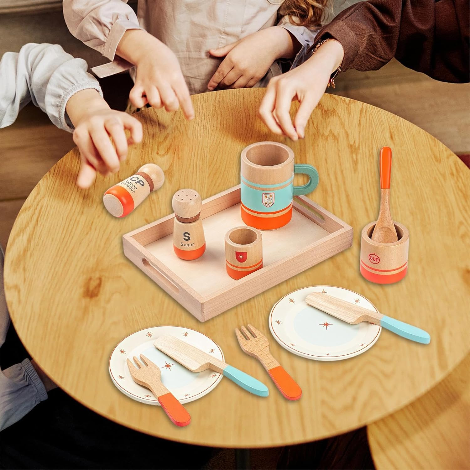 【Struttura in legno】: il set da tè per bambini è realizzato in legno, con bordi lisci e arrotondati e senza detriti sulla superficie, garantendo tranquillità 【Design realistico del set da tè】: il set da gioco per il tè pomeridiano include vari componenti come vassoi, piatti, tazze da tè e stoviglie, che migliorano l'autenticità del tempo di gioco e rendono i bambini più interessati al gioco di ruolo 【Migliora l'interazione genitore-figlio】: il set da gioco Princess Tea Time Toys è un ottimo strumento per promuovere la comunicazione e la cooperazione genitore-figlio, combinando l'istruzione con l'intrattenimento per migliorare la qualità del tempo trascorso 【Immaginazione e abilità sociali】: Partecipando al gioco di finzione, i bambini possono sviluppare le loro abilità sociali e linguistiche esplorando la creatività 【Regalo educativo】: Il giocattolo educativo è perfetto come regalo di compleanno o di festa per bambini. Non solo è visivamente attraente, ma aiuta anche i bambini ad apprendere le abitudini di vita quotidiana e l'etichetta culturale attraverso il gioco.