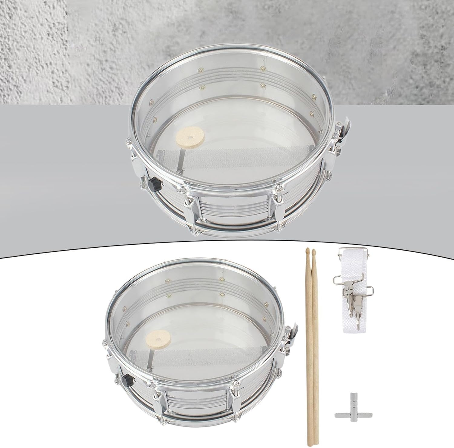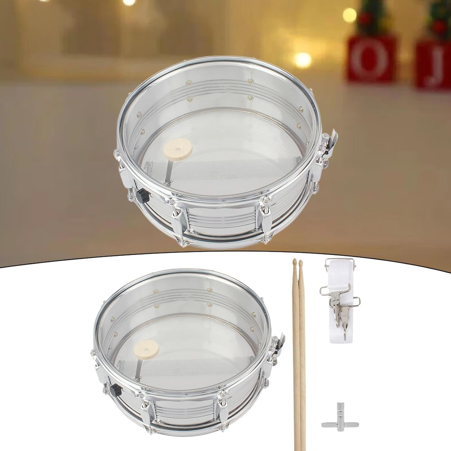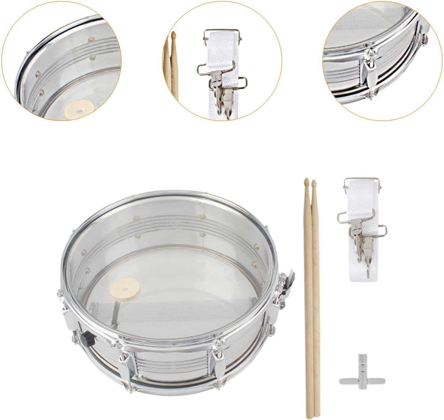 【Materiale】: la testa del rullante è realizzata in materiale metallico, resistente e non facilmente deformabile, il che lo rende una scelta affidabile per un uso a lungo termine 【Design unico】: il kit rullante adotta un design raffinato con una superficie liscia e rotonda e un colore chiaro per attirare l'interesse dei bambini 【Uso】: il set rullante è dotato di teste da 14 pollici, adatte per bande musicali o gruppi di percussioni che aggiungono un suono potente alla loro musica 【Funzione】: strumenti a percussione possono aiutare i bambini a sviluppare l'alfabetizzazione musicale, le capacità di ascolto, ecc. e sono adatti anche per diverse occasioni come giochi genitori-figli e attività familiari 【Regalo】: il tamburo a mano incoraggia i bambini a usare la loro immaginazione e creatività. È il regalo di per i bambini in diversi scenari come compleanni, festività o eventi speciali