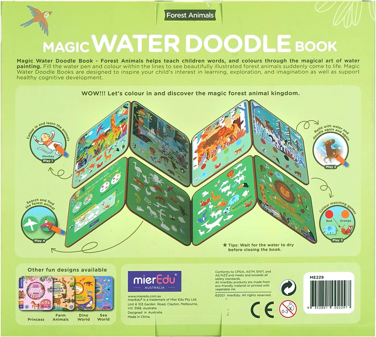 Libro da colorare sugli animali della foresta magica: dipingi semplicemente con l'acqua e appariranno magicamente simpatici animali della foresta come cervi, volpi e gufi. Il magico libro da colorare con acqua è riutilizzabile, si asciuga rapidamente e garantisce ore di divertimento colorando. Gioco acquatico perfetto per i viaggi - Ideale per bambini dai 3 anni in su. Grazie al suo formato pratico è il compagno ideale per viaggi, viaggi in macchina o visite al ristorante: piacere creativo senza disordine. Promuove la creatività e le capacità motorie: il libro da colorare ad acquerello per bambini promuove lo sviluppo della destrezza e stimola l'immaginazione. I motivi degli animali della foresta, accuratamente progettati, invitano alla scoperta e promuovono l'apprendimento giocoso. Sicuro ed ecologico: realizzato con carta certificata FSC, priva di sostanze nocive. Il libro da colorare con acqua magica offre divertimento ecologico, ideale per dipingere ad acqua senza preoccupazioni. Ottimo regalo per gli amanti della natura: la pittura ad acqua delizierà i bambini dai 3 anni in su con magiche immagini di animali del bosco. Un regalo ideale per i piccoli amanti della natura che amano scoprire la fauna selvatica!