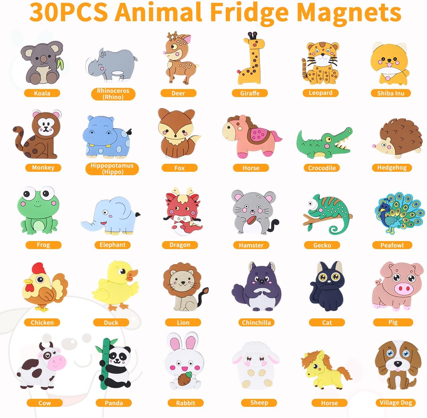 【Set di magneti da frigo per bambini】 Riceverete 30 magneti da frigo con animali, tra cui elefanti, giraffe, scimmie, volpi, leopardi, rinoceronti, pangolini, panda, ippopotami, coccodrilli, pavoni e altri motivi. I motivi sono vivaci e carini e sono perfetti per neonati e bambini piccoli per scoprire ed esplorare il mondo. 【Materiali sicuri】 I magneti da frigo per bambini piccoli sono realizzati in gomma morbida PVC di alta qualità e magneti flessibili, che li rendono sicuri, atossici e non irritanti. La superficie è liscia e arrotondata e ha una lunga durata. 【Uso versatile】I graziosi magneti a forma di animali sono adatti per l'uso su frigoriferi, lavagne bianche in ufficio, armadi nelle aule scolastiche, superfici magnetiche, schede elettromagnetiche, circuiti stampati e altre superfici magnetiche e soddisfano diverse esigenze decorative. 【Educazione della prima infanzia】 I magneti da frigorifero a forma di animali per bambini sono giocattoli didattici adatti a bambini di età compresa tra 1 e 3 anni per conoscere il mondo e sono anche ideali come regali per compleanni, Natale e feste. 【Note】 Se avete problemi con il prodotto, potete contattarci in qualsiasi momento e vi offriremo una soluzione soddisfacente.