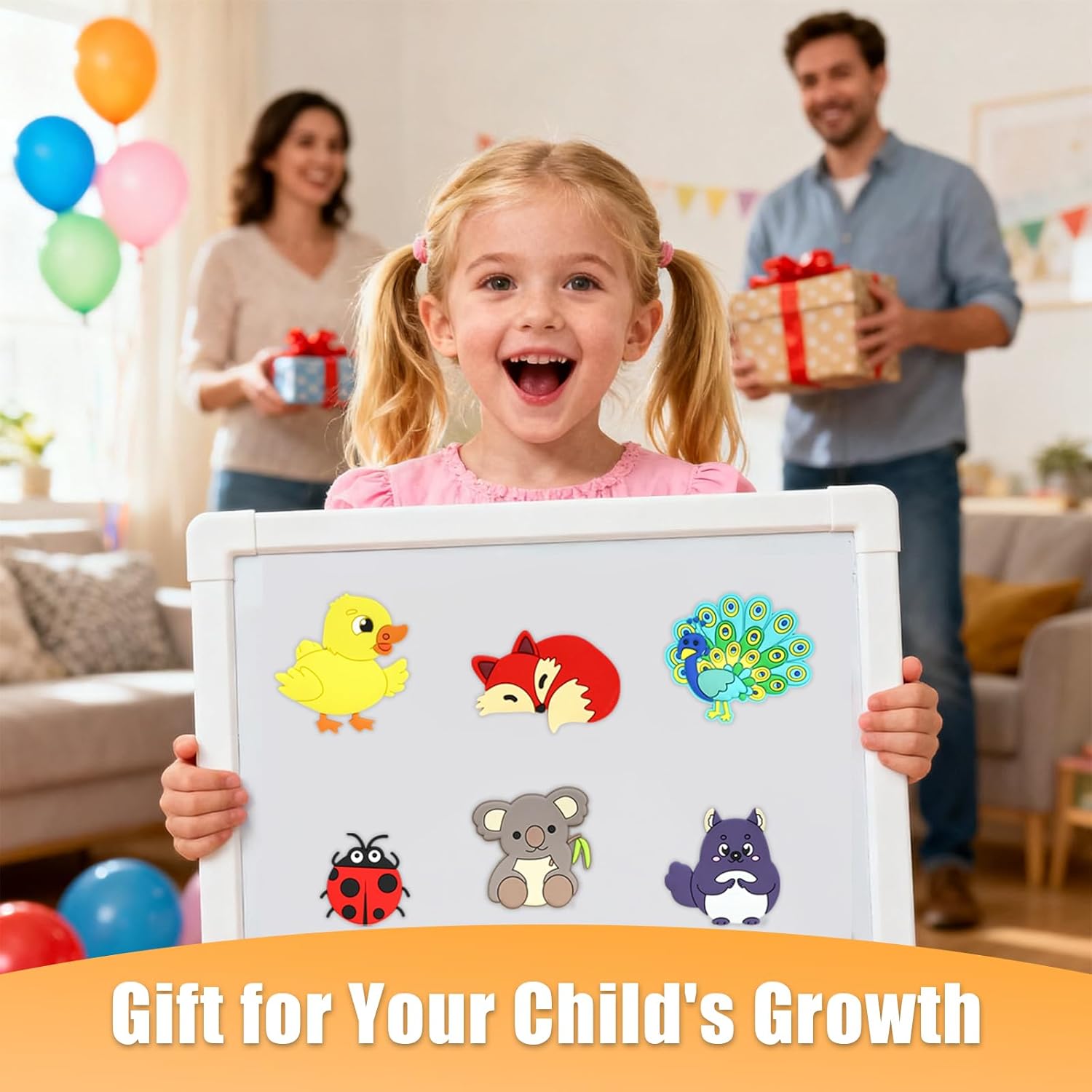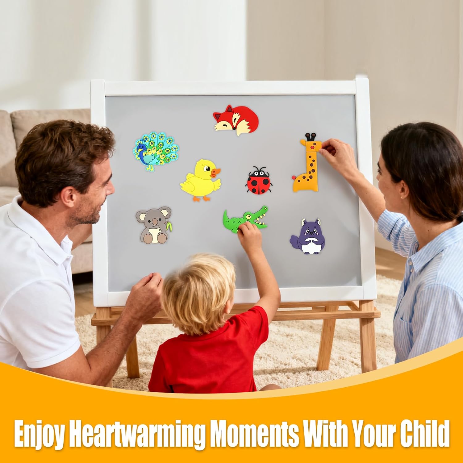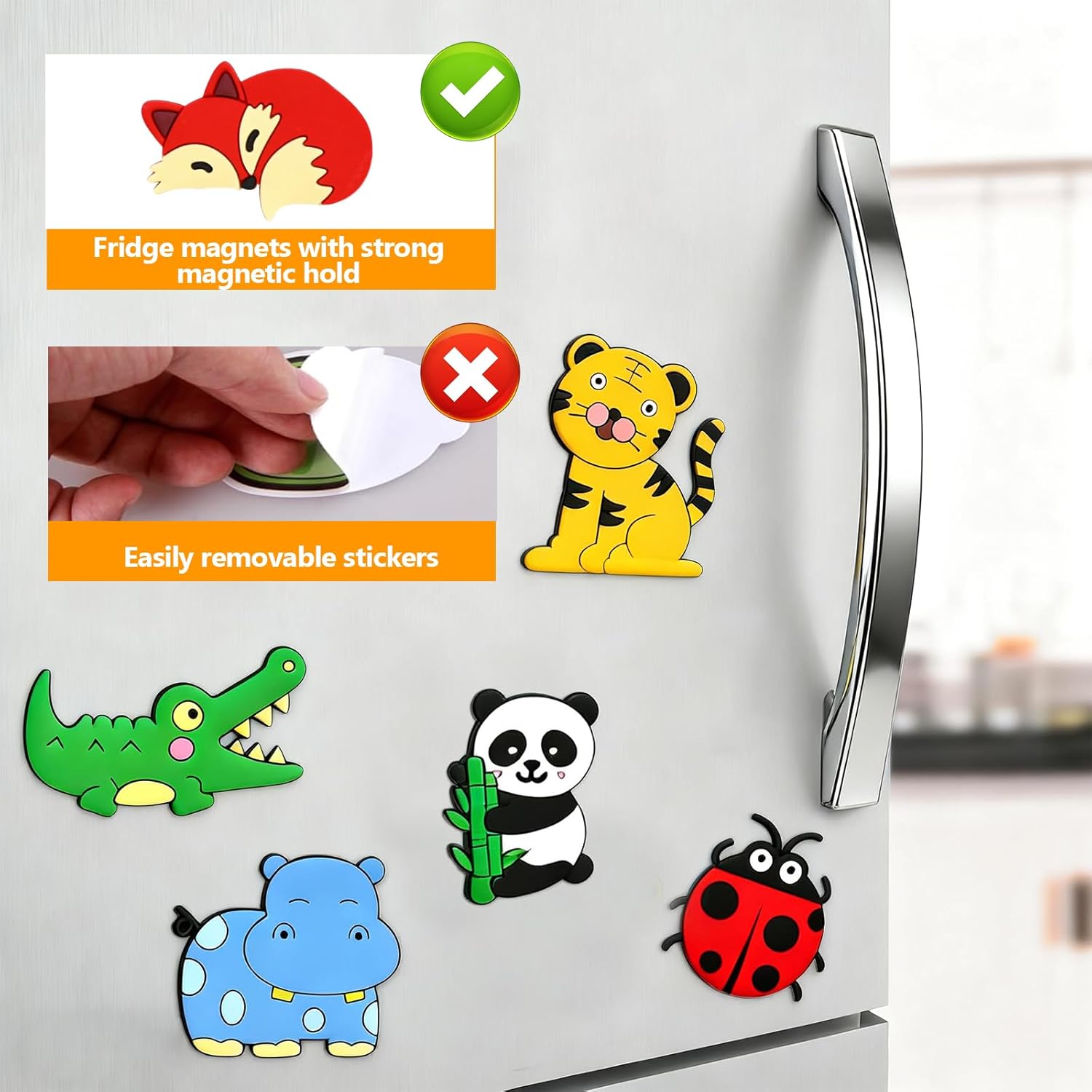 Progettato per le mani piccole, facile da impugnare: il nostro set di bacheca magnetica per bambini da 16 pezzi è stato sviluppato appositamente per le mani dei bambini Gli animali magnetici sono testati per la sicurezza e hanno la dimensione perfetta per neonati e bambini piccoli. È morbido e a prova di ingestione e combina esplorazione giocosa con sicurezza. Magneti da frigorifero durevoli per bambini: questi magneti di sicurezza completamente magnetici sono progettati appositamente per bambini di età compresa tra 1 e 3 anni. Le lavagne magnetiche per la cameretta dei bambini dispongono di una forza di aspirazione super forte che impedisce lo scivolamento e sono comunque facili da spostare poiché i magneti per bambini non contengono parti sciolte. I magneti per bambini sono durevoli e adatti per l'uso su frigoriferi, piastre metalliche e altre superfici magnetiche. Combinano sicurezza con divertenti motivi di animali. Giocattolo magnetico cognitivo rivelatore: questi giocattoli magnetici per bambini a partire dai 2 anni sono strumenti educativi appositamente progettati per insegnanti e genitori. Con le loro simpatiche forme di animali, stimolano l'interesse cognitivo dei bambini, promuovono le abilità linguistiche attraverso giochi di domande e risposte e allenano le abilità motorie, rendendo il processo di apprendimento divertente e pieno di scoperte tattili. Materiali di alta qualità: questi magneti step by step sono realizzati in gomma di alta qualità, morbida e resistente. I magneti per bambini sono stati sviluppati appositamente per i bambini piccoli e possono essere fissati saldamente a diverse superfici magnetiche per consentire un gioco prolungato. Un regalo meraviglioso per i bambini per godersi la loro infanzia: questa lavagna magnetica creativa, appositamente progettata per la cameretta dei bambini, è sia un regalo educativo che un giocattolo sicuro ed ecologico senza schermo. I simpatici animali magnetici possono essere disposti liberamente su superfici come frigoriferi e lavagne bianche e sono quindi il regalo perfetto per i bambini per il compleanno o le vacanze.