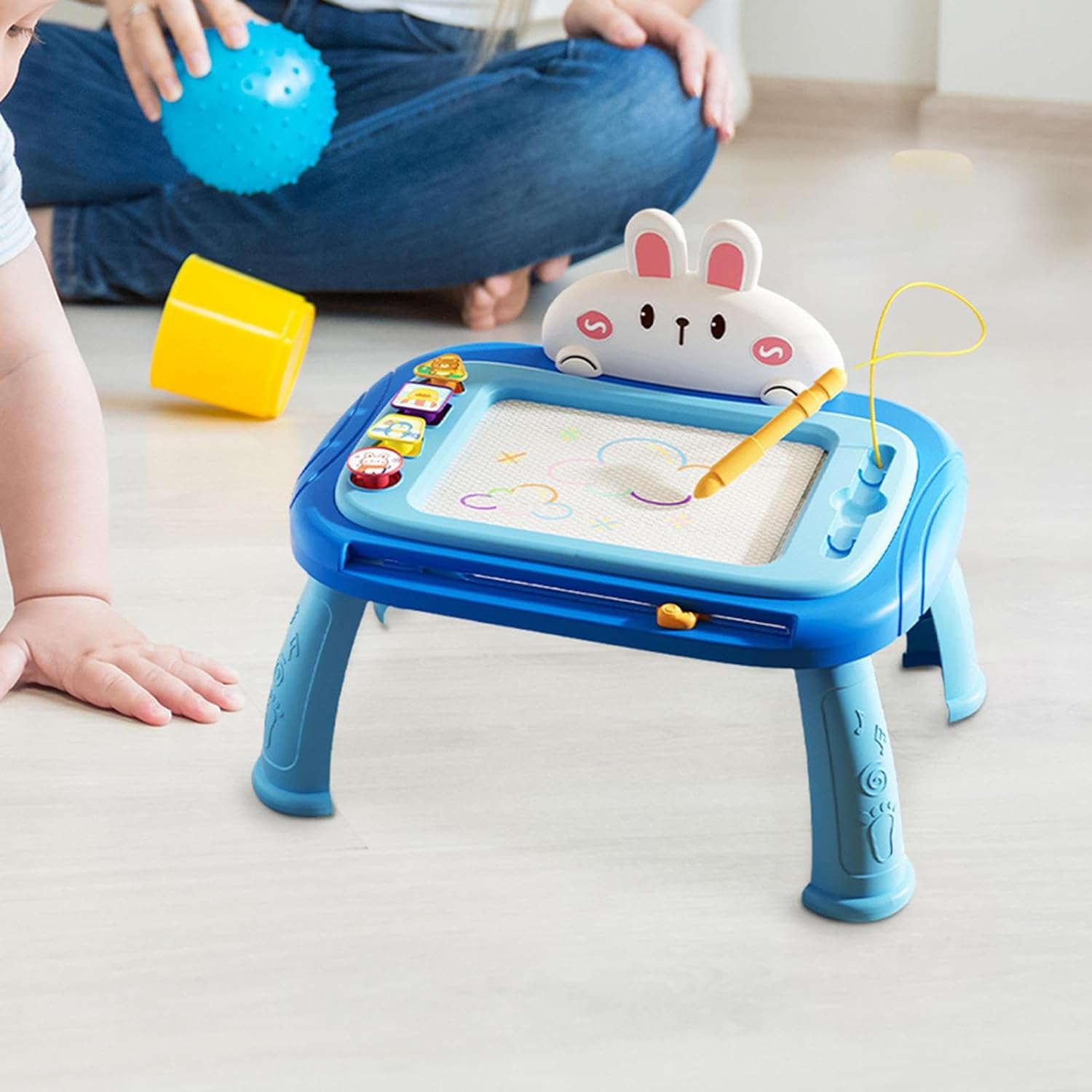 Adorable Rabbit-Themed Magnetic Board: This colorful cartoon rabbit design adds fun to creative play while encouraging children to explore drawing writing and imagination in a kid-friendly engaging format Detachable Table Legs for Versatile Use: Comes with removable bracket legs that convert the board from tabletop to lap mode making it ideal for use at home school outdoors or during travel without compromising comfort Supports Fine Motor Skill Development: Drawing and doodling on the magnetic helps children practice grip strength coordination and control which are essential for early writing and hand development - Creative Playtime: The magnetic and easy-slide eraser eliminate the need for paper ink or markers providing a clean creative experience that parents will appreciate and kids will love Portable and Lightweight for Travel: Compact yet sturdy this drawing board is easy to carry for road trips plane rides or family outings giving kids a fun and educational way to stay entertained on the go