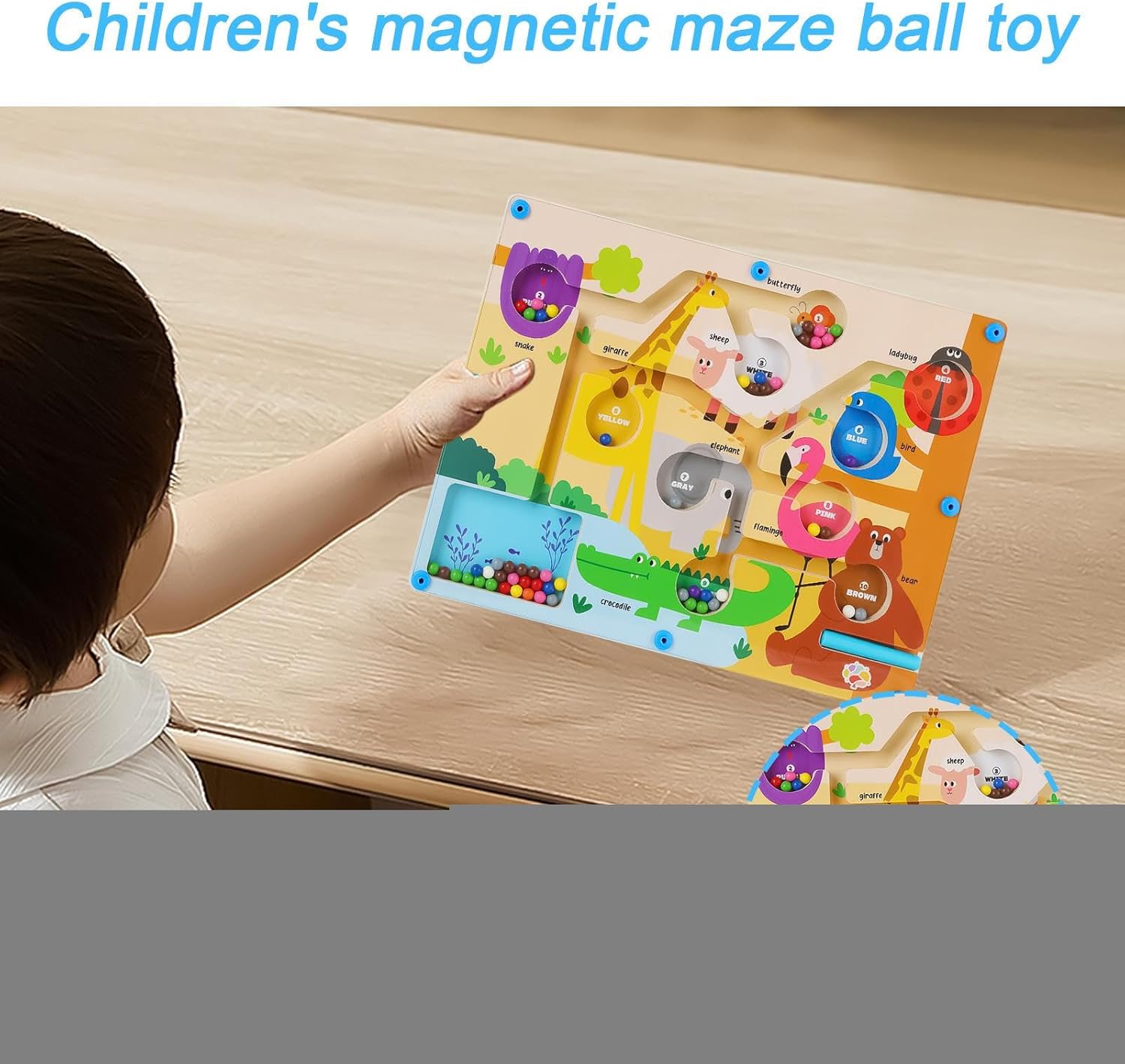 Engaging design for early learners: features colorful paths and magnet pieces that guide children through maze challenges while boosting logical thinking and pattern recognition for young developing minds Supports motor coordination growth: encourages children to use precise hand movements which help enhance dexterity focus and finger strength making it ideal for preschoolers or in early growth stages -free and self-contained gameplay: enclosed magnetic wand and fixed components allow safe interactive play without loose parts making this a perfect quiet time or travel companion for kids Multisensory educational experience: combines tactile magnetic guidance with vibrant visual cues to stimulate attention span recognition memory and spatial awareness in a hands-on learning format Encourages collaborative play: designed for -on- or group interaction where children can work together to solve paths share strategies and build social skills while completing matching activities