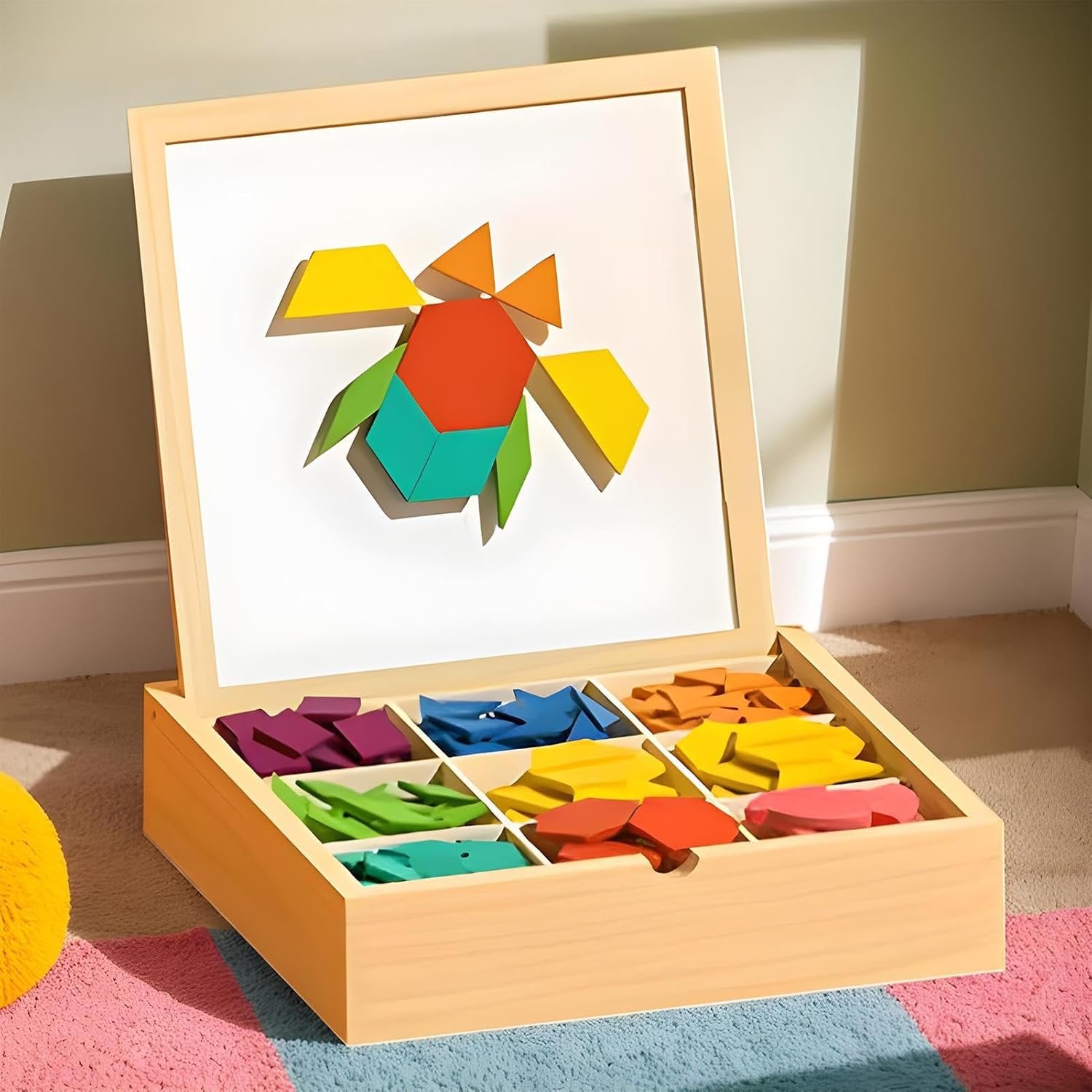Strumento Cognitivo: Favorisce la coordinazione cerebrale e l'identificazione dei colori con puzzle dinamici che supportano lo sviluppo delle capacità motorie fini, integrabili agevolmente nelle routine didattiche quotidiane per un approccio educativo completo Strumento di Esplorazione Cognitiva: Con 220 componenti magnetici e carte scenografiche diversificate, promuove la consapevolezza spaziale e sostiene l'apprendimento cognitivo attraverso l'assemblaggio interattivo e la progettazione creativa di forme geometriche Sviluppo Divertente: Moduli tangram con 1000+ configurazioni alimentano interesse continuo e senso di realizzazione tramite gioco magnetico coinvolgente per bimbi 3+ Ergonomia Sicura: Forme anatomiche con bordi levigati e componenti anti distacco assicurano una presa comoda per mani piccole, mantenendo stabilità durante la costruzione e proteggendo da rischi durante l'apprendimento tattile Giocattolo Divertente e Istruttivo: magnetici progettati per migliorare le capacità spaziali e la coordinazione occhio-mano. Confezionati in scatola regalo festiva, aiutano i bambini a esplorare concetti matematici di base attraverso attività ludiche intuitive e coinvolgenti.