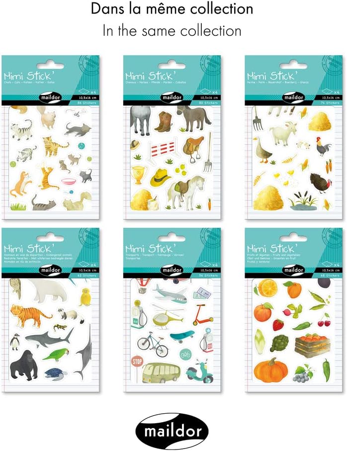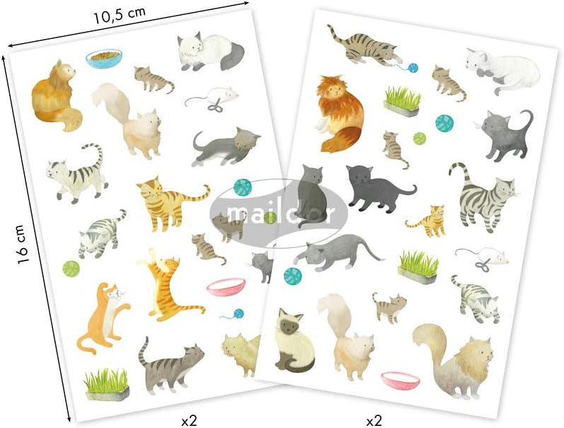 Un pacchetto di 86 adesivi di Maildor. I Mini Stick sono ideali per i bambini dai 5 anni in su. 4 fogli in formato DIN A6, 10,5x 14,8 cm Imparare giocando... Questi adesivi permettono ai bambini di riconoscere facilmente oggetti e animali, di ampliare il loro vocabolario e di sviluppare la loro immaginazione. Un ottimo strumento educativo Adesivi realistici con cui i bambini imparano divertendosi Tema: Gatti