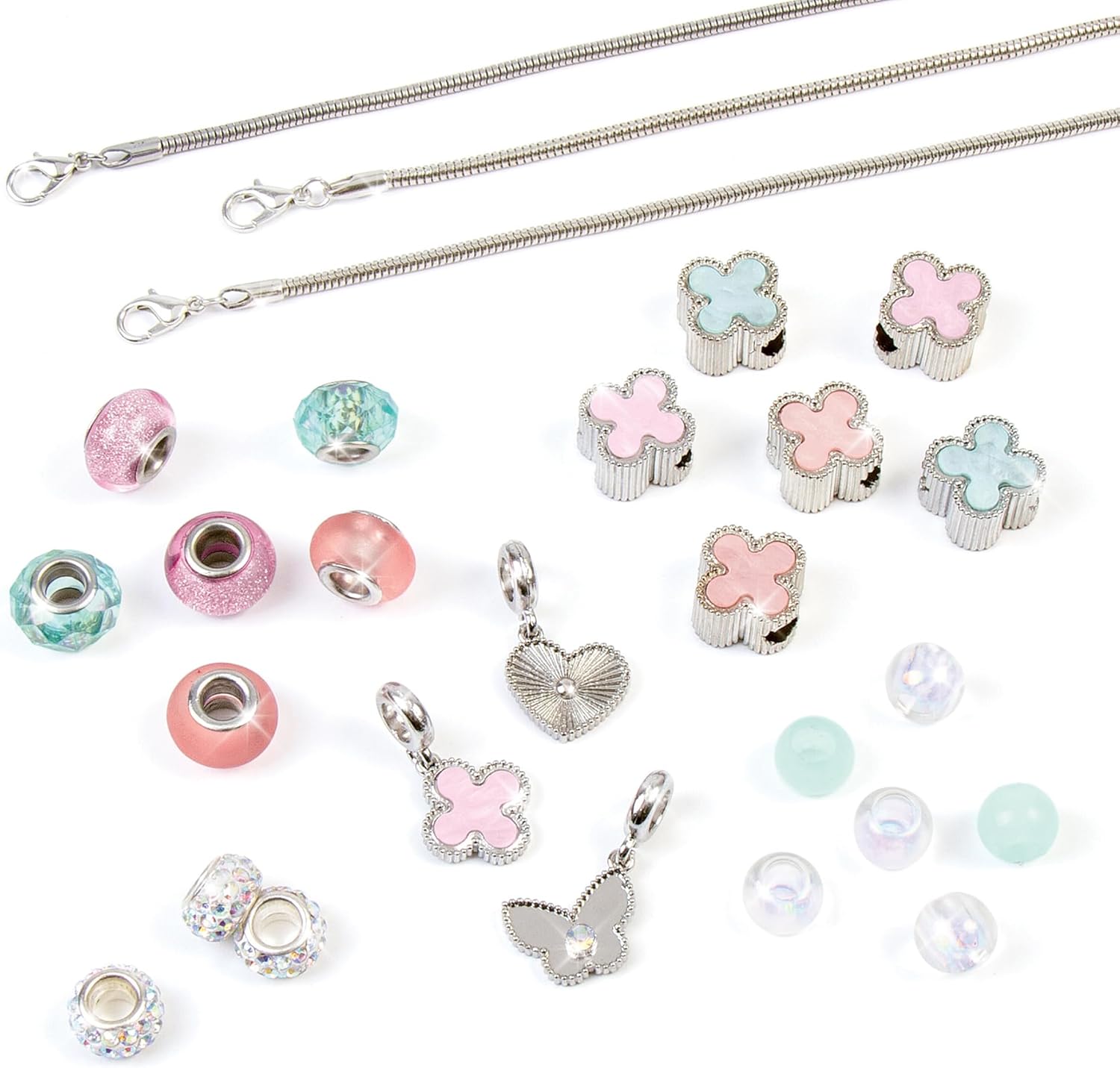 KIT GIOIELLI COMPLETO DA 28 PEZZI – Include perline colorate, ciondoli a forma di quadrifoglio e accessori per creare splendidi braccialetti personalizzati. CREA FINO A 3 BRACCIALI UNICI – Con perline e charms inclusi, i bambini possono realizzare gioielli da indossare o regalare. STIMOLA LA CREATIVITÀ – Un’attività manuale che sviluppa fantasia, coordinazione e abilità artistiche nei più piccoli. Perfetto per regali: crea gioielli unici e fatti a mano da regalare. MATERIALI SICURI E DI QUALITÀ – Progettato per essere facile e divertente da usare, con pezzi resistenti e adatti ai bambini. REGALO PERFETTO PER BAMBINI 8+ – Un set creativo ideale per compleanni, feste o come gioco educativo per piccoli appassionati di moda e fai-da-te. Semplici istruzioni: semplici passi per realizzare gioielli.