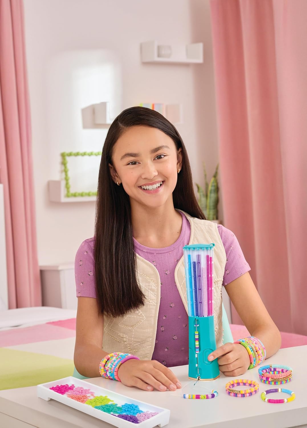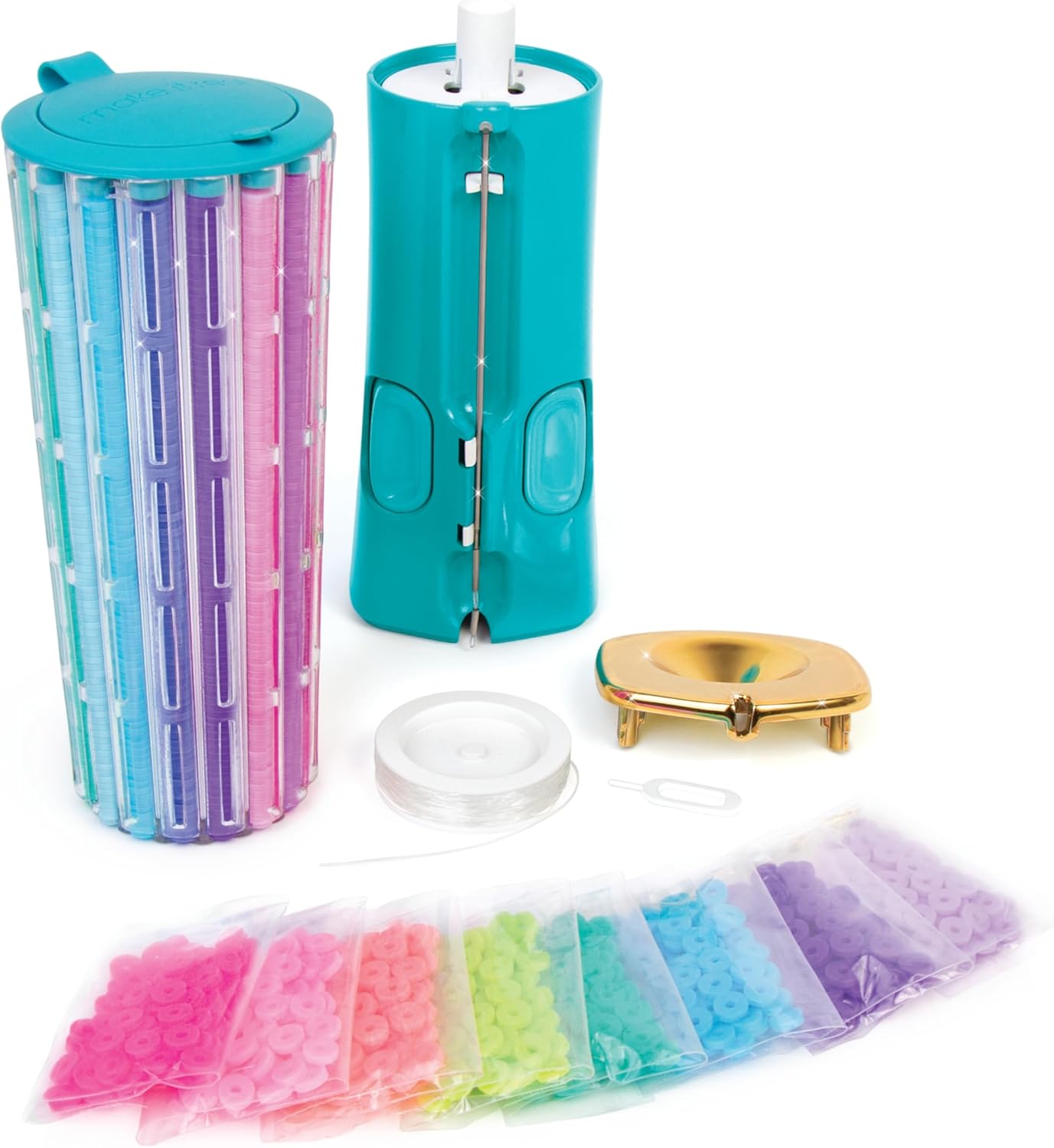 CREA GIOIELLI IN MODO FACILE E VELOCE: una macchina che permette di infilare le perline Heishi scegliendo il colore. Basta caricarla e ruotare per decidere quale sarà la prossima perline nel tuo gioiello TUTTI I PEZZI INCLUSI. Questo kit di braccialetti ha tutto il necessario per creare gioielli. Il set include oltre 2000 perline heishi, cordino oltre 6metri, macchina infila perline heishi QUALITA’ E ECOCOMPATIBILITA’: Il mondo Make It Real porta bambini e adulti in un emozionante viaggio alla scoperta di creatività e moda. La produzione secondo linee guida ecocompatibili svolge un ruolo altrettanto importante quanto la purezza dei materiali utilizzati. Ogni singolo prodotto soddisfa i più alti standard di qualità ed è il risultato di una tradizione artigianale appassionata. UNA SPLENDIDA IDEA REGALO. I giochi per lo sviluppo dei bambini di Make It Real sono l’idea regalo perfetta poiché permettono loro di sviluppare le competenze di apprendimento grazie a cui avranno successo da grandi mentre si divertono giocando. SCOPRI E APPASSIONATI ALLA CREATIVITA: Creare i propri gioielli con l'aiuto del kit fai da te stimola la creatività, le abilità motorie e le capacità visive e cognitive. Con le istruzioni incluse, impara facilmente un arte che ti accompagnerà poi nel futuro. MARCHIO MAKE IT REAL: La porta di accesso alla creatività, il mondo delle perline! Il gioco e la sperimentazione hanno un ruolo chiave nello sviluppo e nell'affinamento abilita fisiche, sociali ed emotive che aiuteranno le ragazze di oggi ad avere successo come future leader e creatrici di domani: questo lo scopo dei nostri kit e giochi! DAGLI 8 ANNI