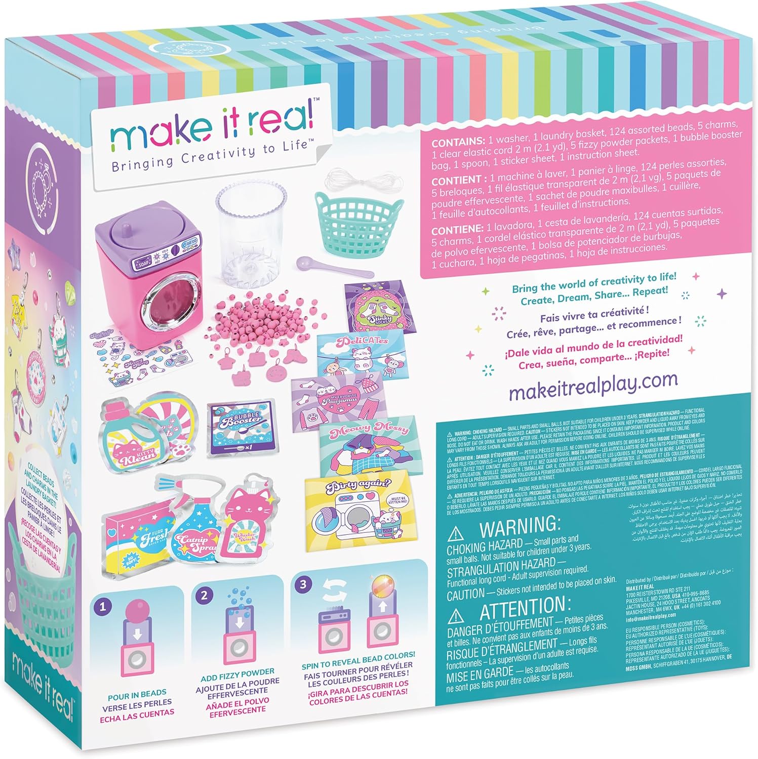 KIT CREATIVO COMPLETO DA 141 PEZZI – Include perline “sporche”, polvere scintillante, booster e una mini lavatrice giocattolo per un’esperienza dinamica e interattiva. EFFETTO "DIRTY TO COLORED" IN SECONDI – Trasforma le perline da opache a luminose con un semplice passaggio, per risultati veloci e divertenti. CIRCUITO LAVATRICE DIVERTENTE – Il meccanismo di lavaggio aggiunge un elemento giocoso mentre pulisci le perline nel kit “Wash ’N Bead”. CREA 5 BRACCIALETTI FASHION – Include perline assortite e ciondoli a tema gattino, ideali per giovani fashioniste e amanti dei gatti. FACILE DA USARE: versare le perline, aggiungere polvere frizzante, ruotare per rivelare i colori delle perline e dei charm. Crea poi i tuoi 5 bracciali, tutto il necessario incluso IDEALE PER BAMBINI 8+ – Stimola creatività, coordinazione e curiosità scientifica con un gioco manuale e interattivo, perfetto anche come regalo. REGALO ORIGINALISSIMO E DIVERTENTE – Una proposta unica e innovativa per feste, compleanni o pomeriggi creativi tra amici.